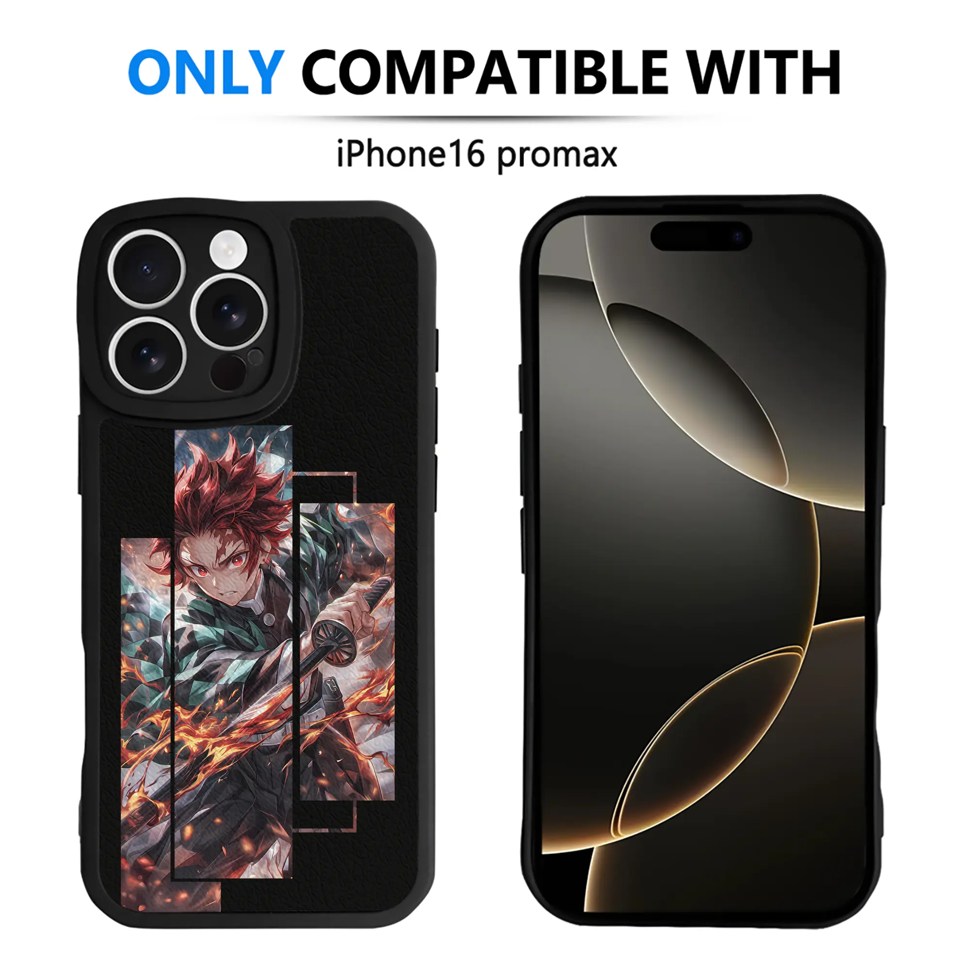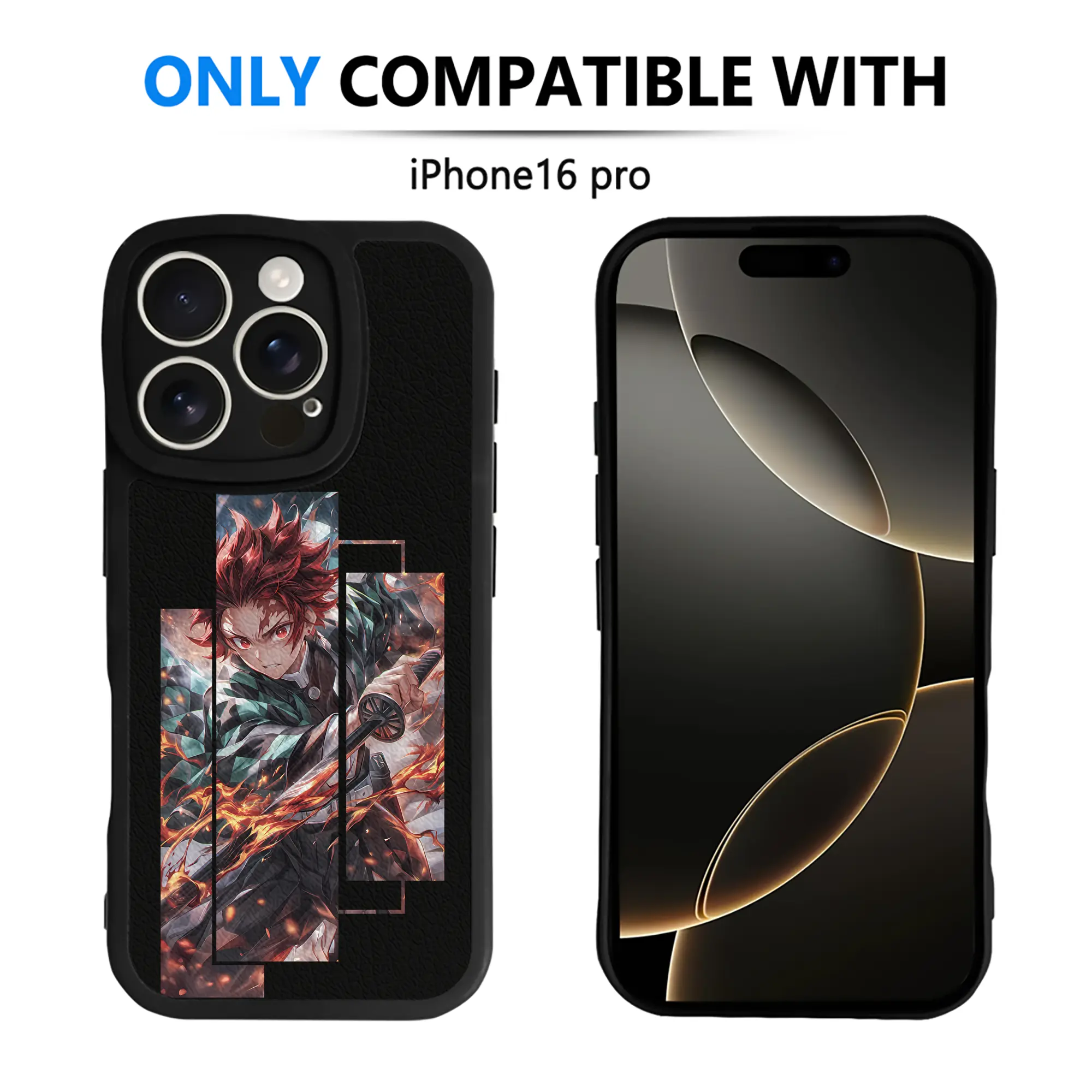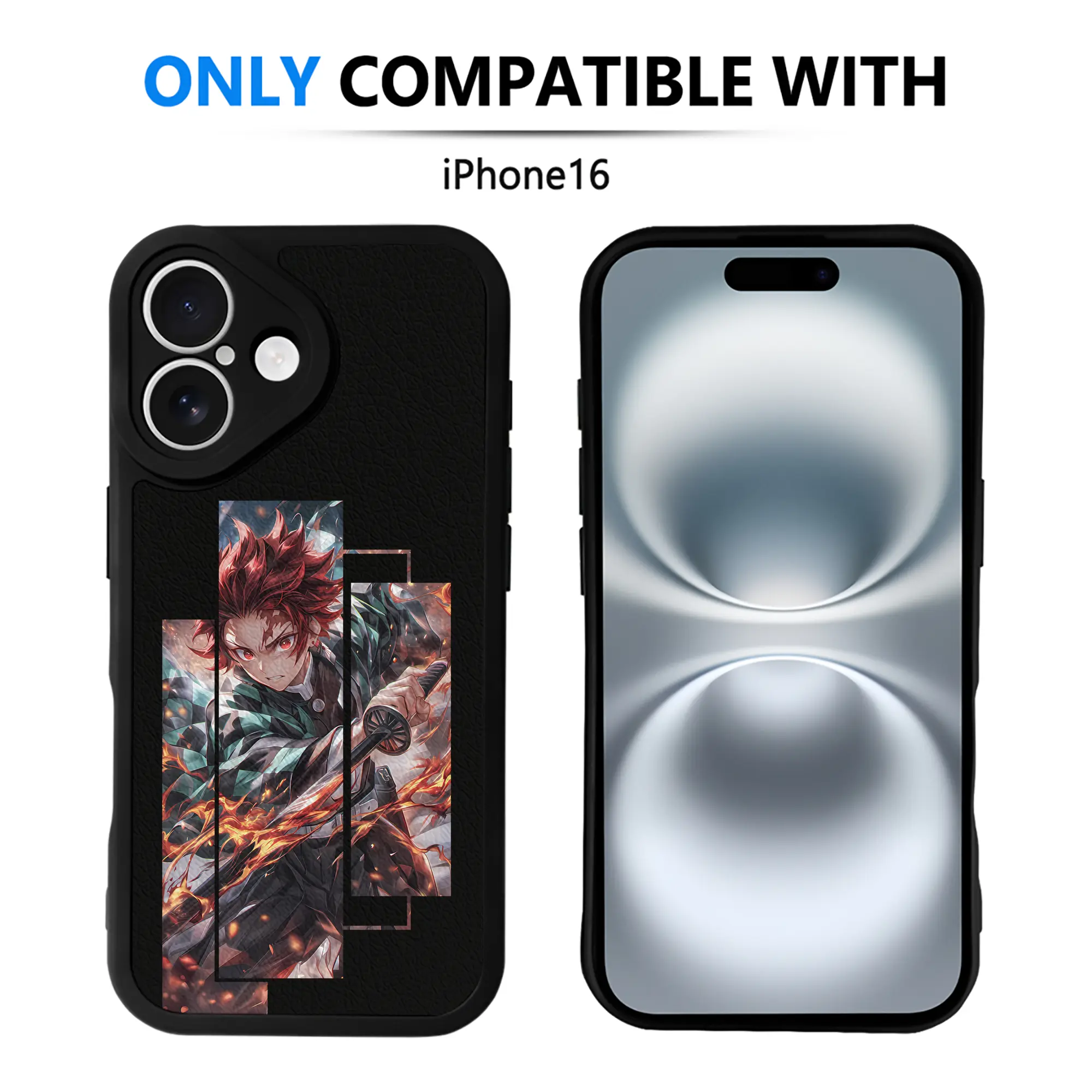 鬼滅の刃 グッズ,竈門 炭治郎 - IPhone 16シリーズ対応 ・ シリコンスマホケース ・ レザー調 ・ 高精度フィット ・ 耐衝撃 ・ ワイヤレス充電対応 ・ 精密カット