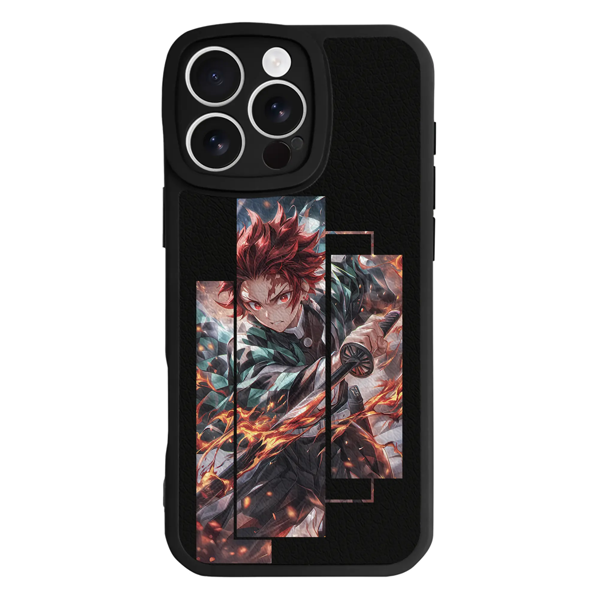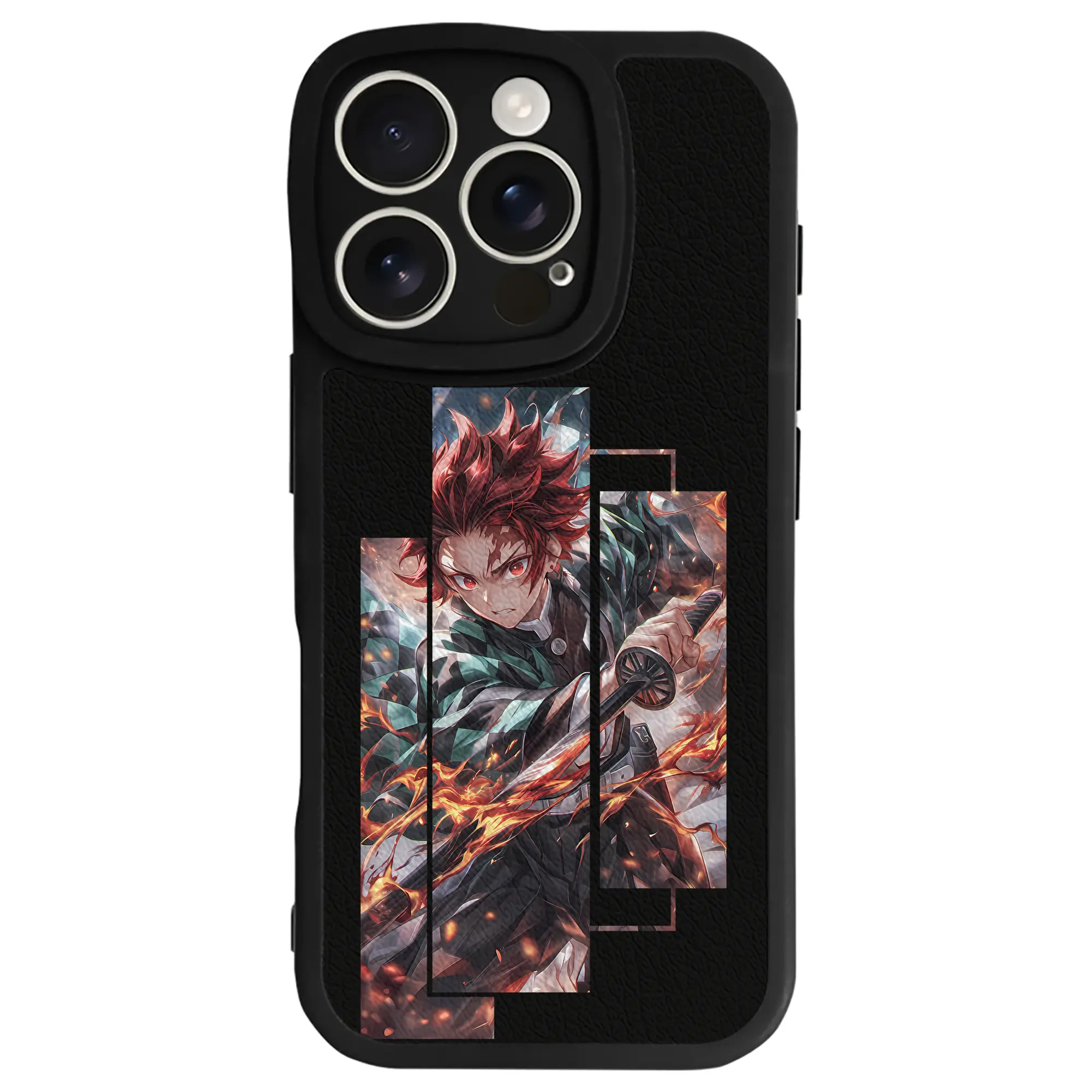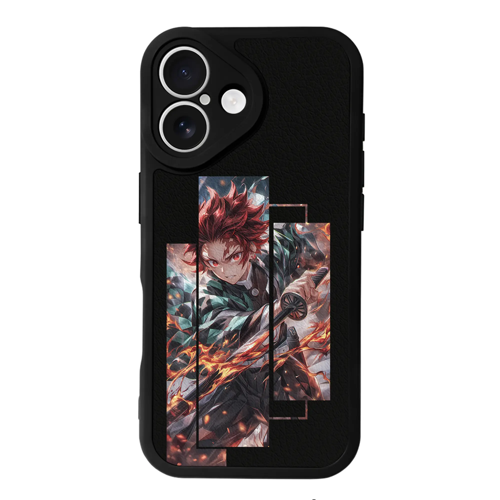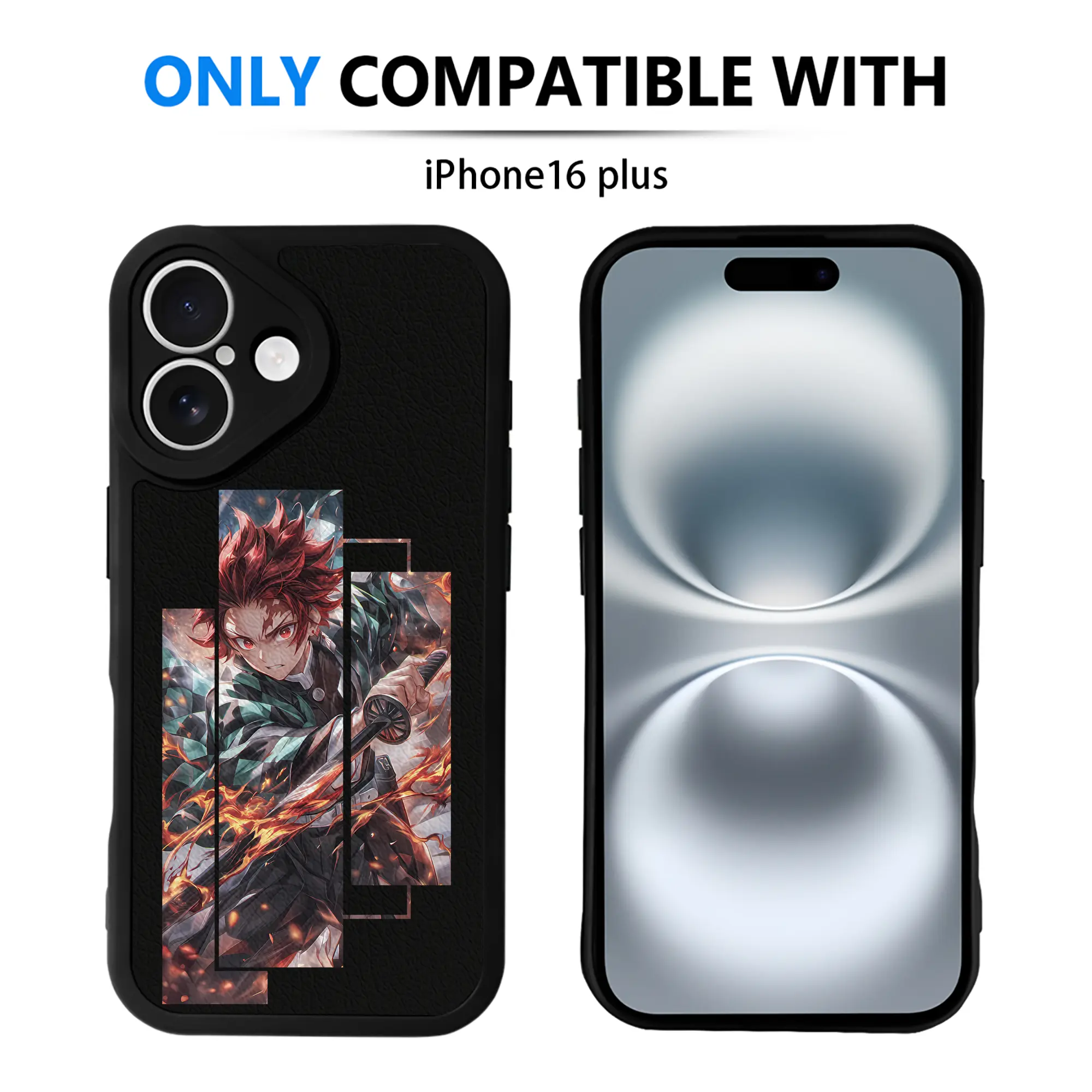 鬼滅の刃 グッズ,竈門 炭治郎 - IPhone 16シリーズ対応 ・ シリコンスマホケース ・ レザー調 ・ 高精度フィット ・ 耐衝撃 ・ ワイヤレス充電対応 ・ 精密カット