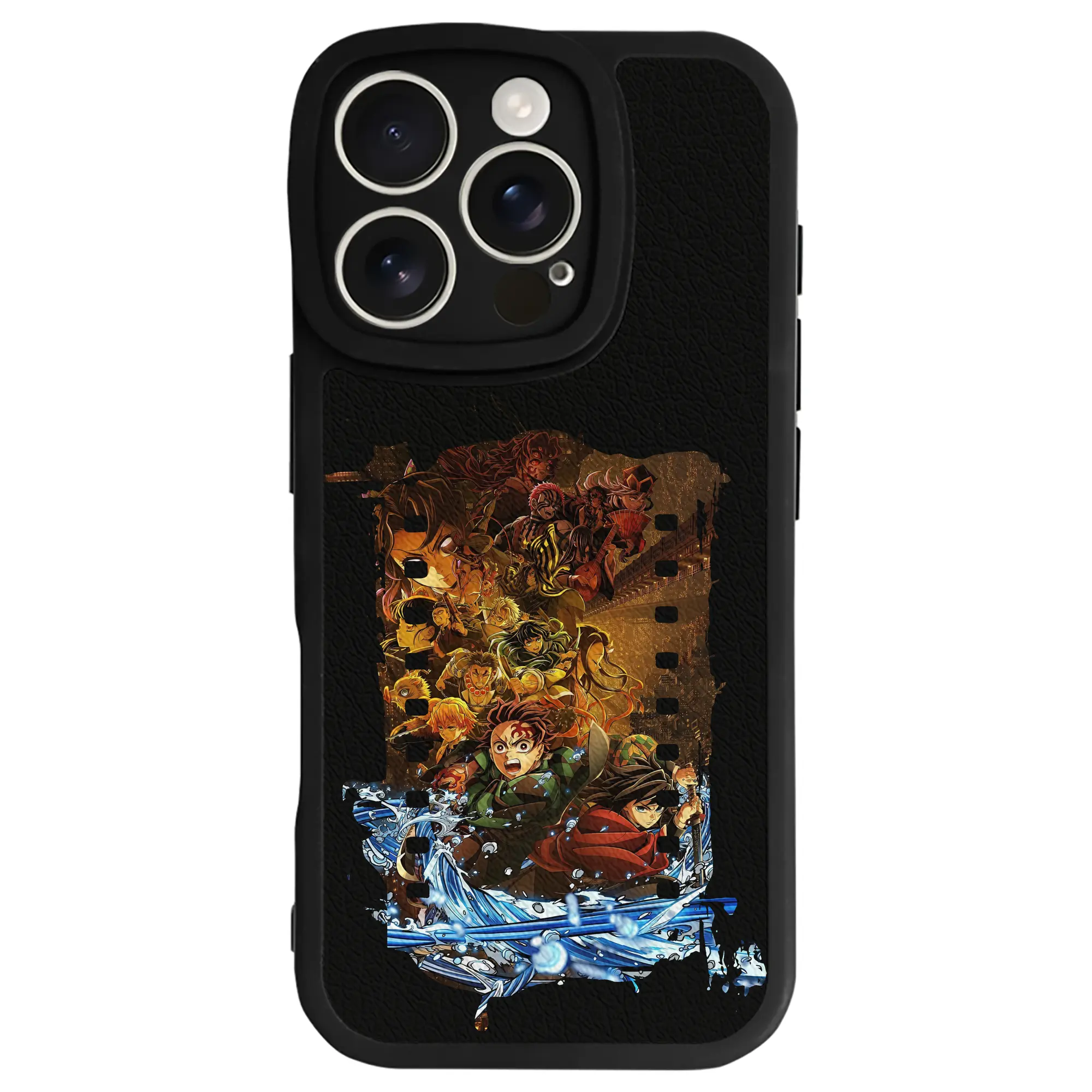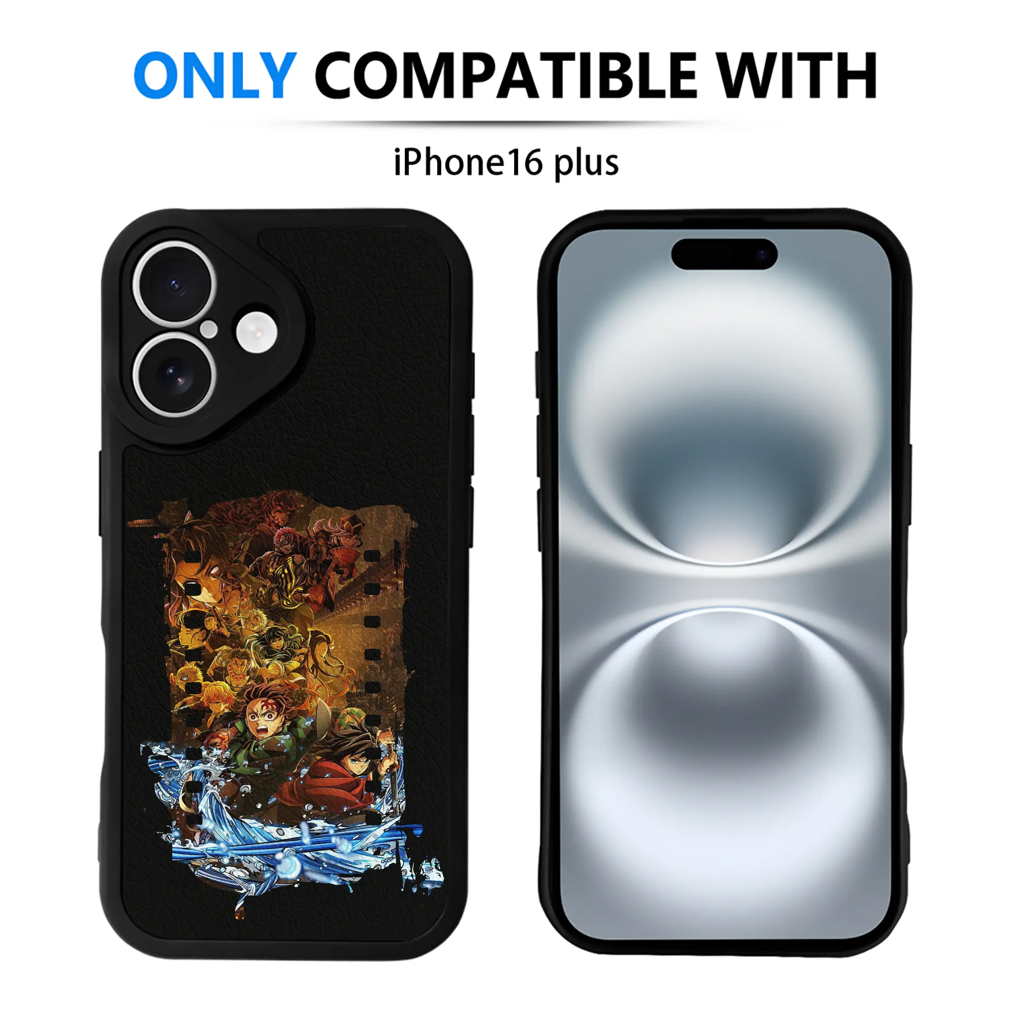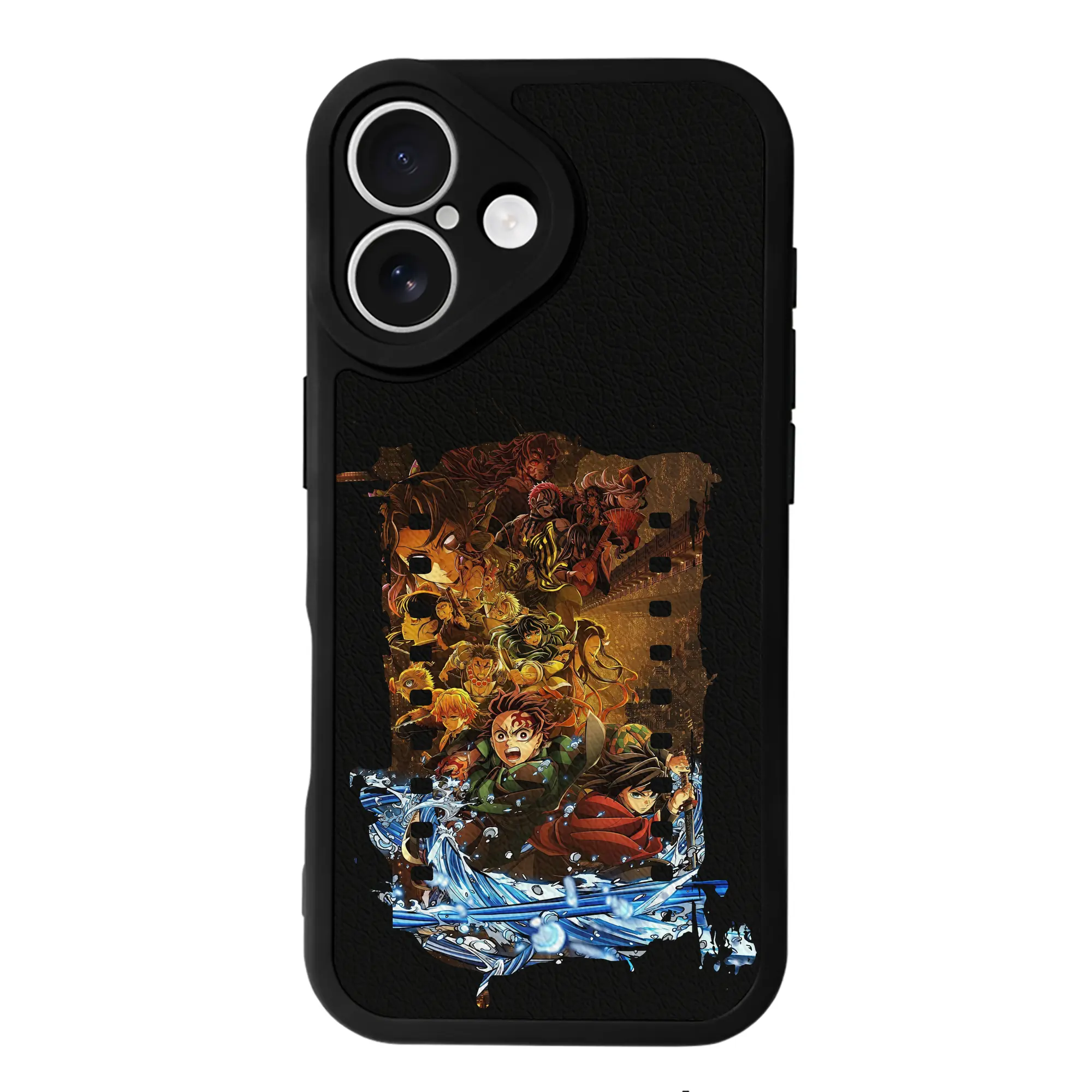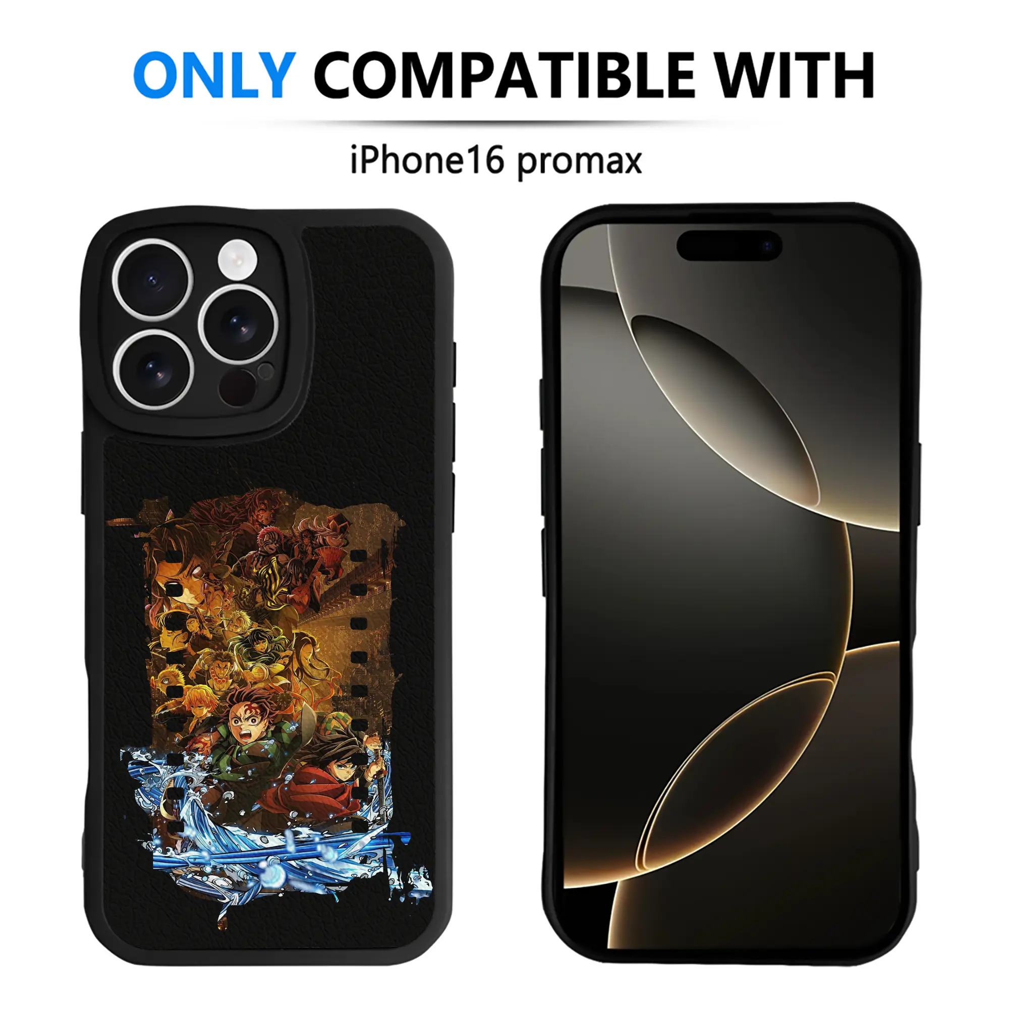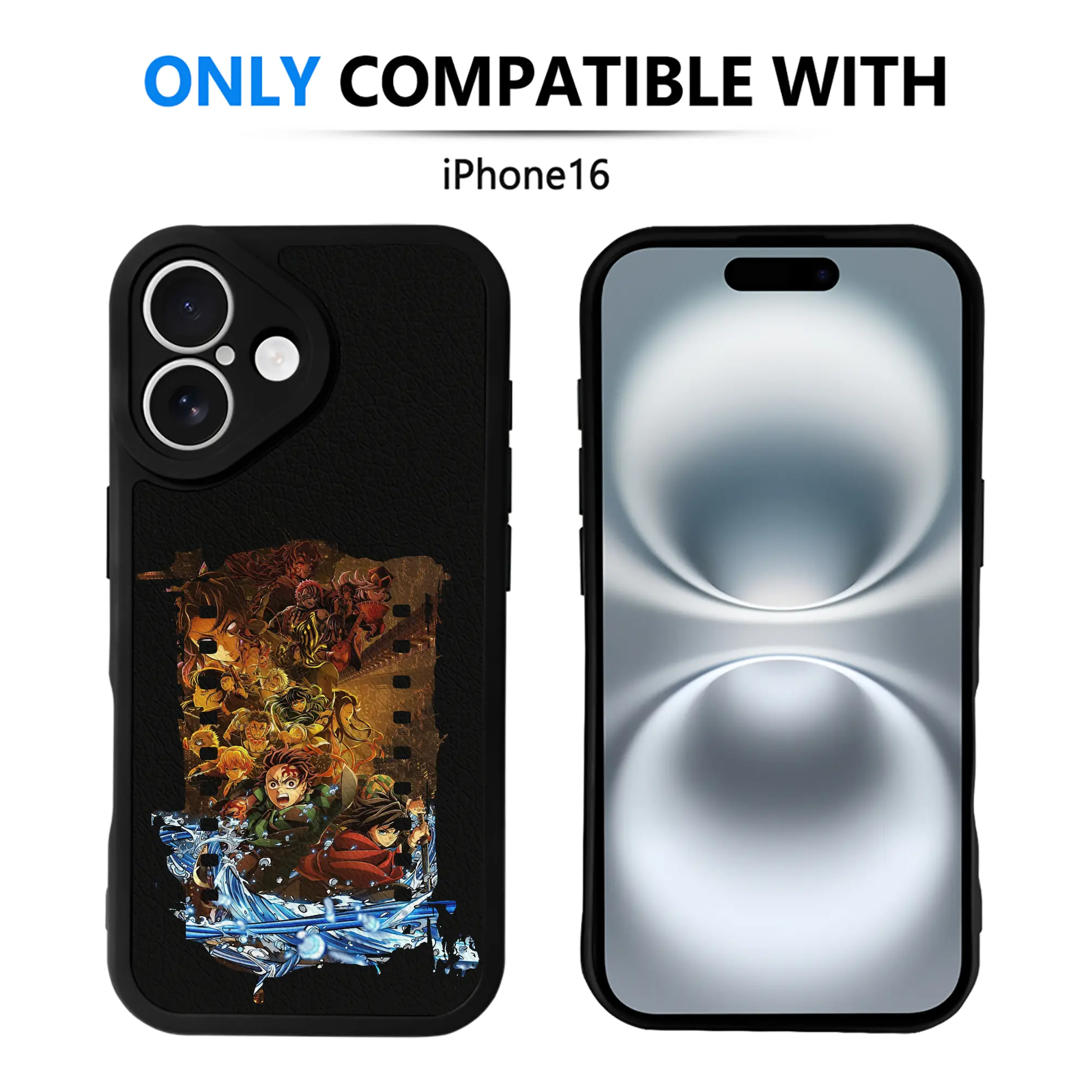 鬼滅の刃 グッズ,竈門 炭治郎 - IPhone 16シリーズ対応 ・ シリコンスマホケース ・ レザー調 ・ 高精度フィット ・ 耐衝撃 ・ ワイヤレス充電対応 ・ 精密カット