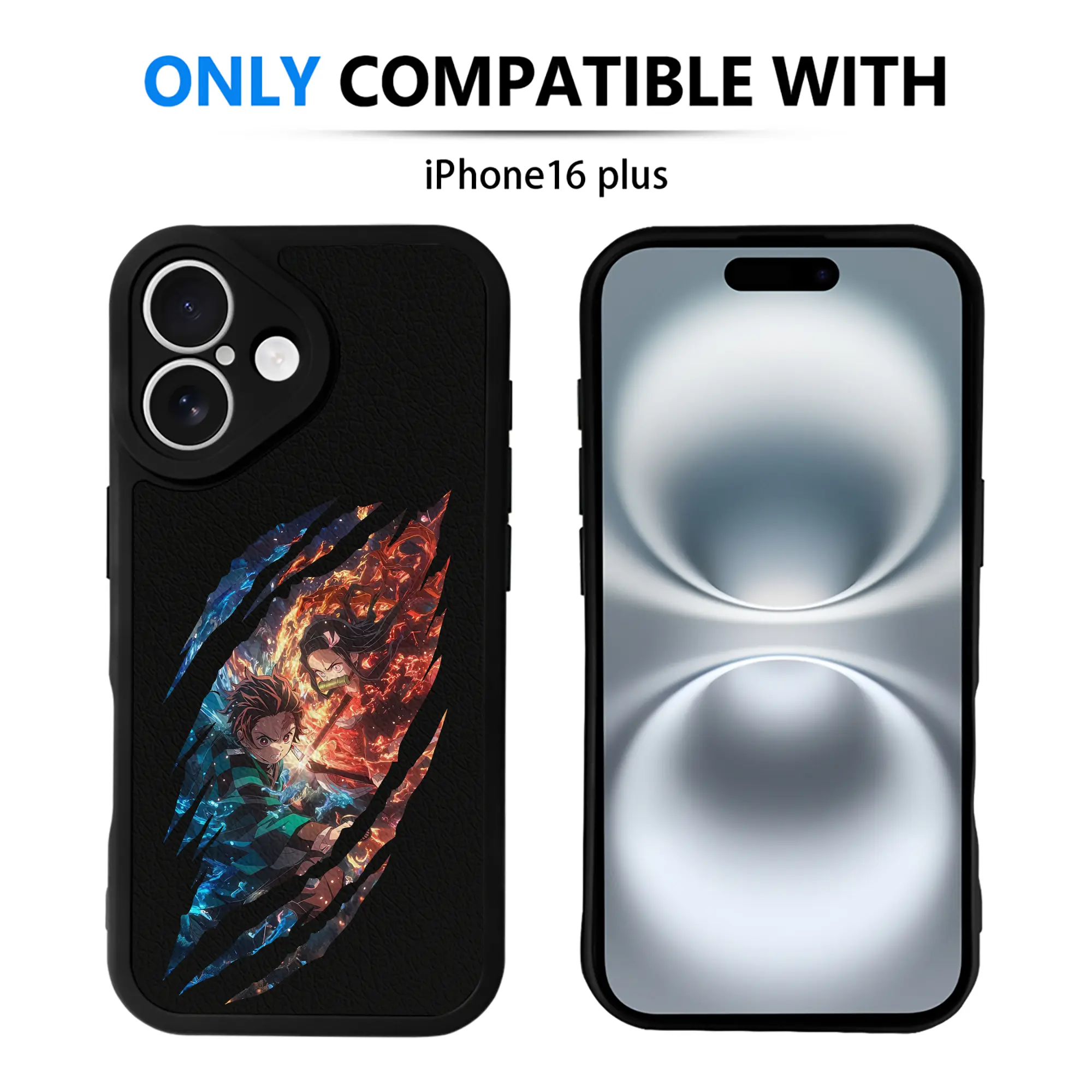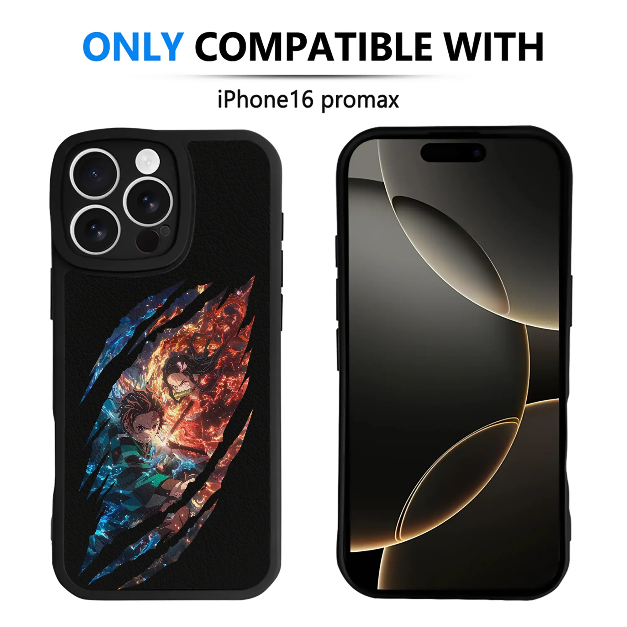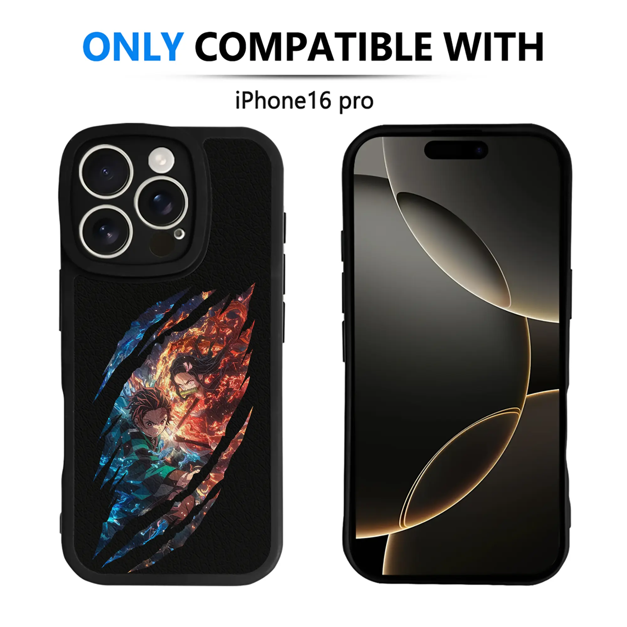 鬼滅の刃 グッズ,竈門 炭治郎 - IPhone 16シリーズ対応 ・ シリコンスマホケース ・ レザー調 ・ 高精度フィット ・ 耐衝撃 ・ ワイヤレス充電対応 ・ 精密カット