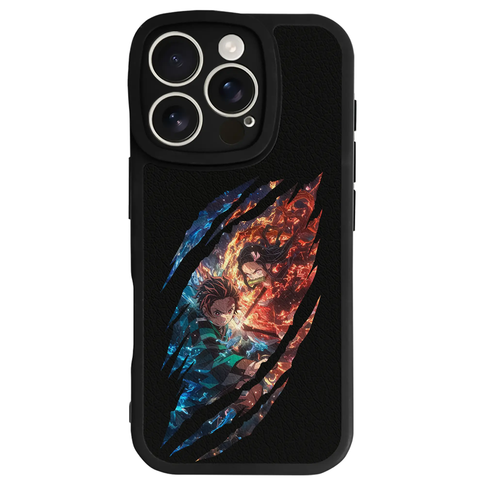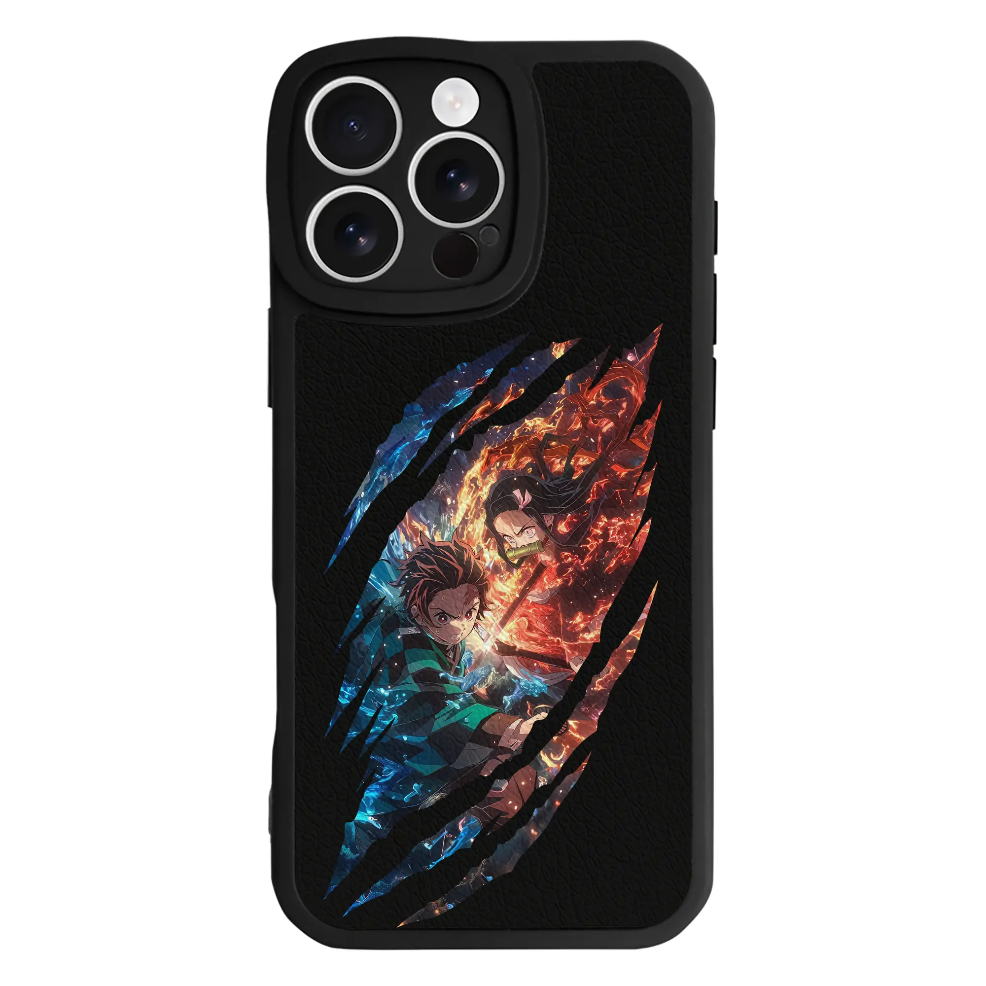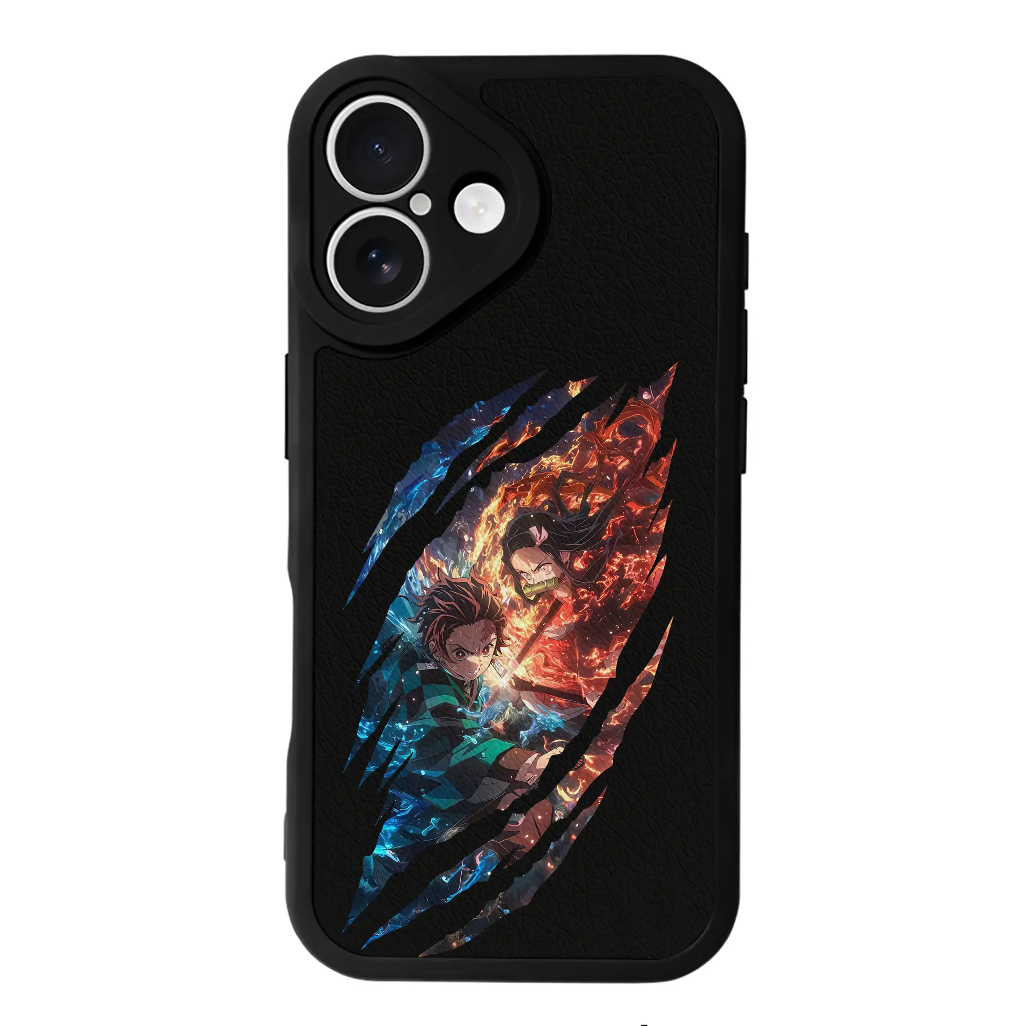 鬼滅の刃 グッズ,竈門 炭治郎 - IPhone 16シリーズ対応 ・ シリコンスマホケース ・ レザー調 ・ 高精度フィット ・ 耐衝撃 ・ ワイヤレス充電対応 ・ 精密カット