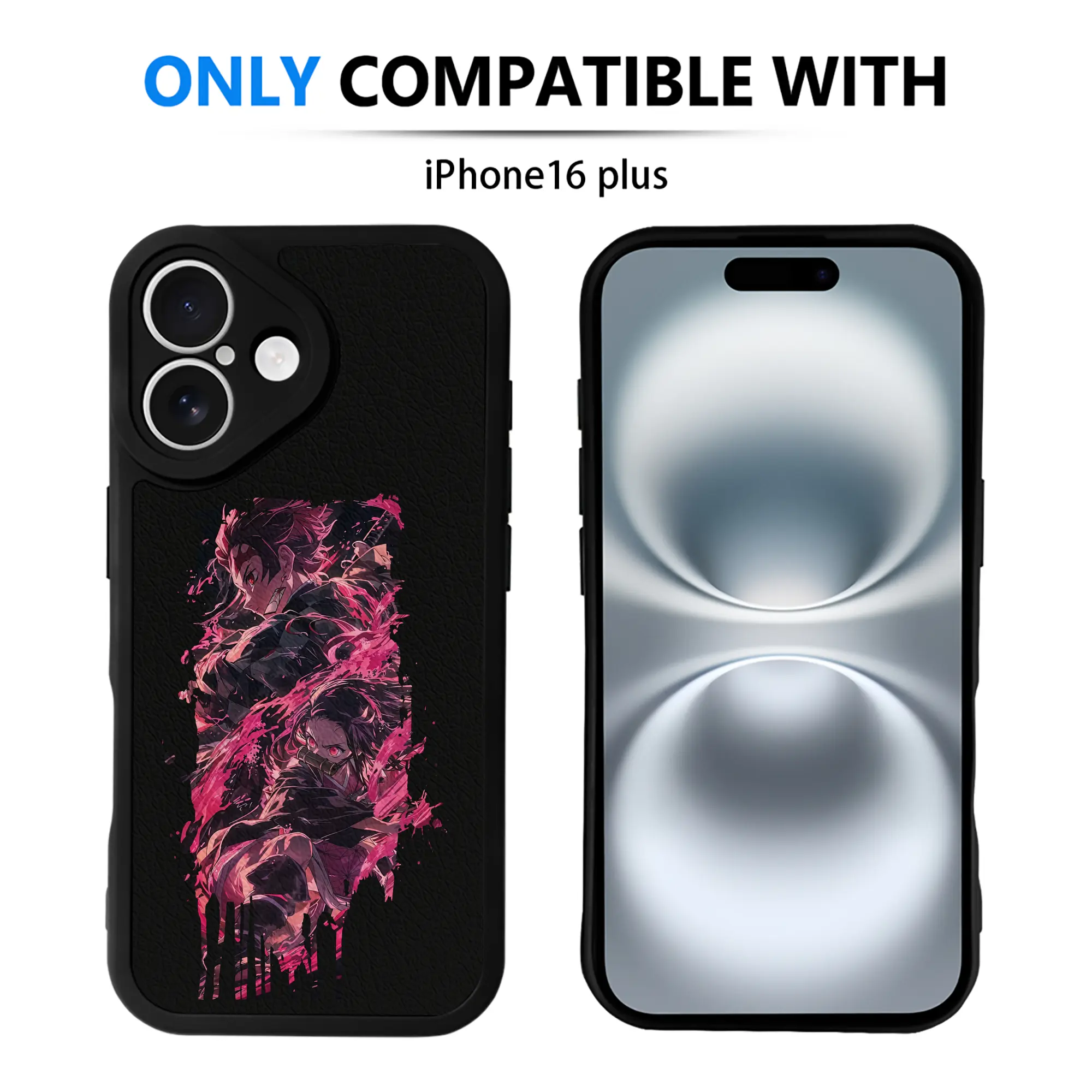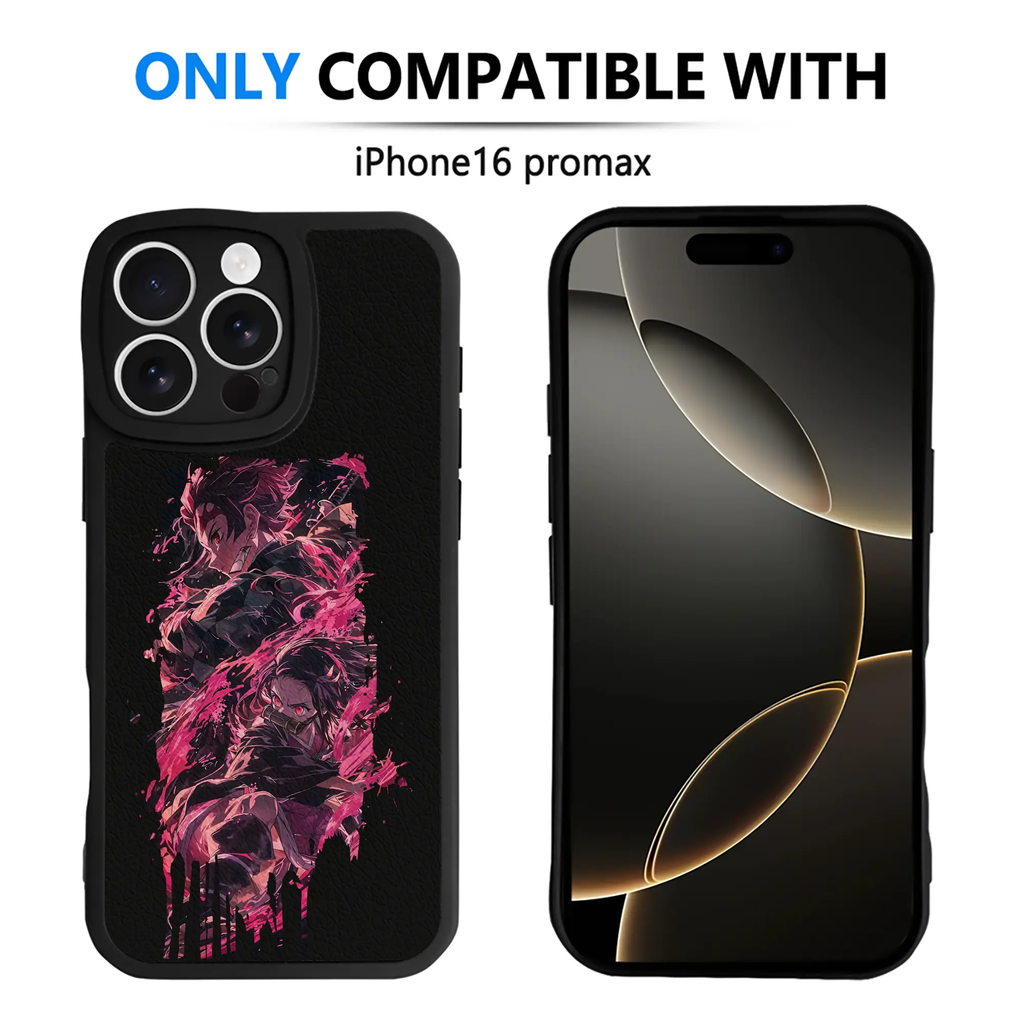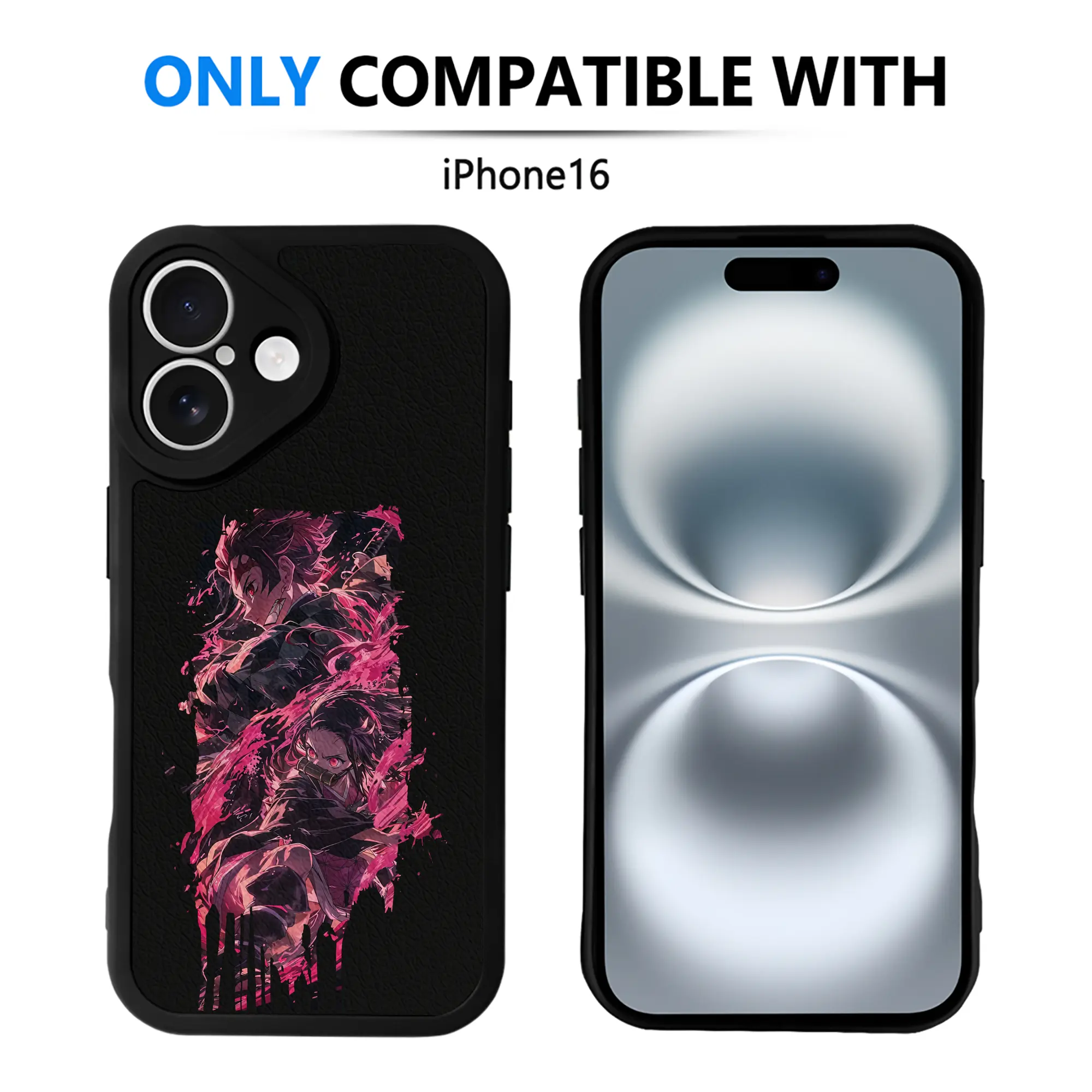 鬼滅の刃 グッズ,竈門 炭治郎 - IPhone 16シリーズ対応 ・ シリコンスマホケース ・ レザー調 ・ 高精度フィット ・ 耐衝撃 ・ ワイヤレス充電対応 ・ 精密カット