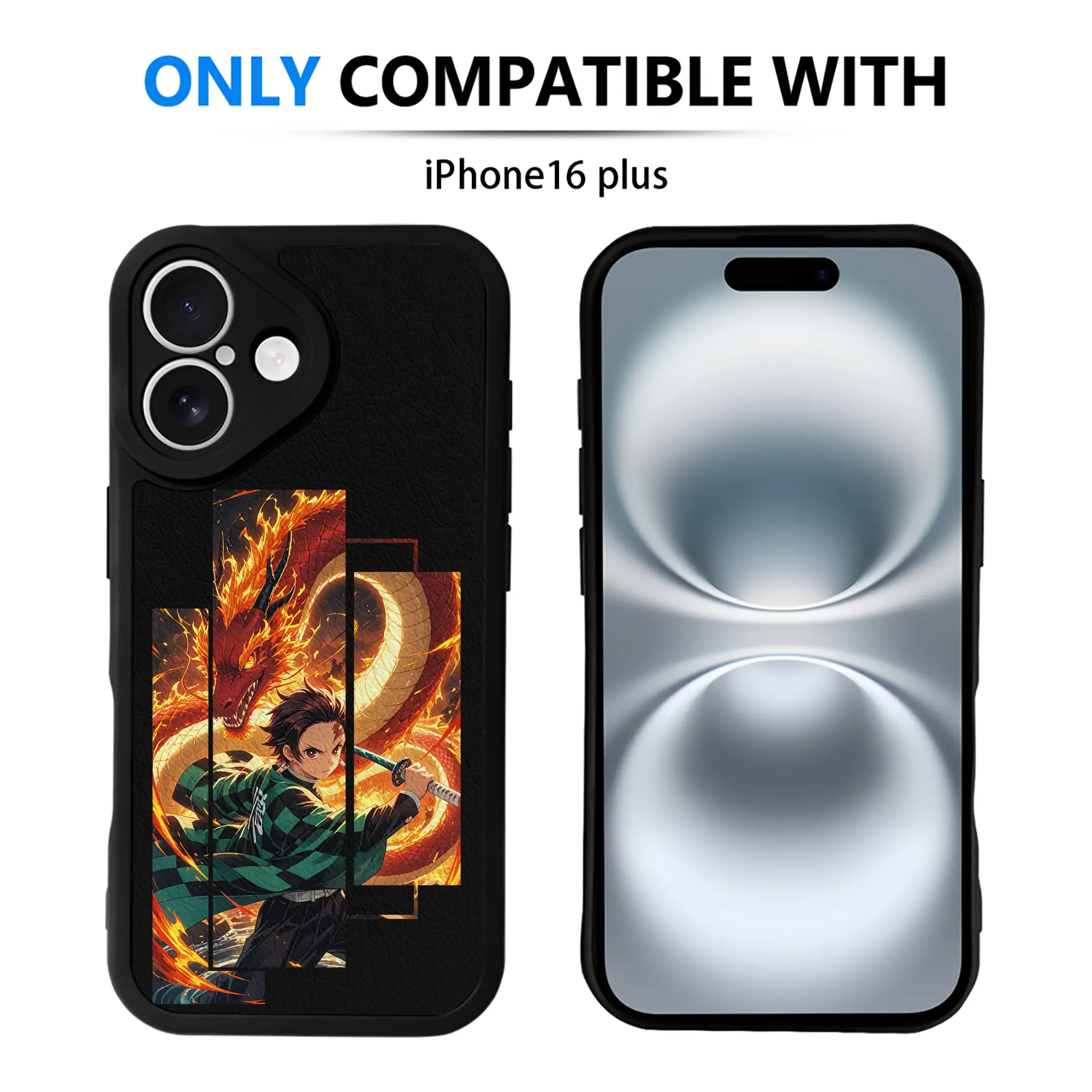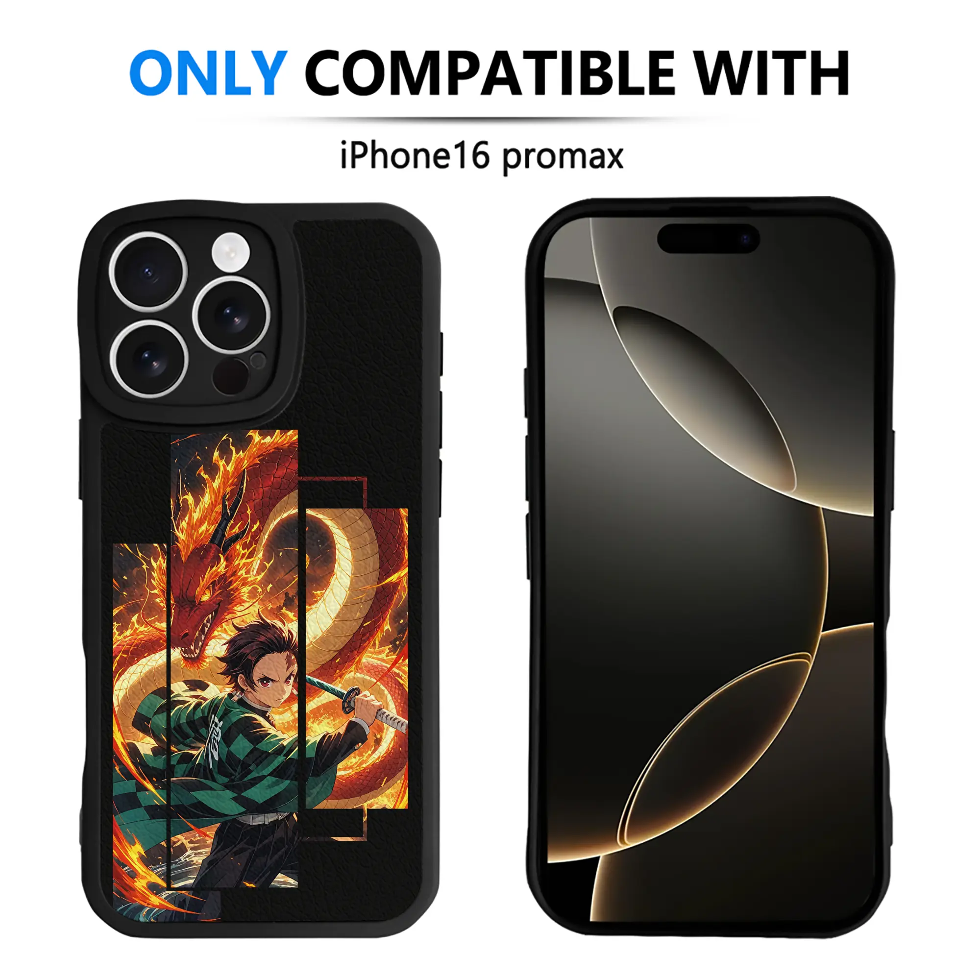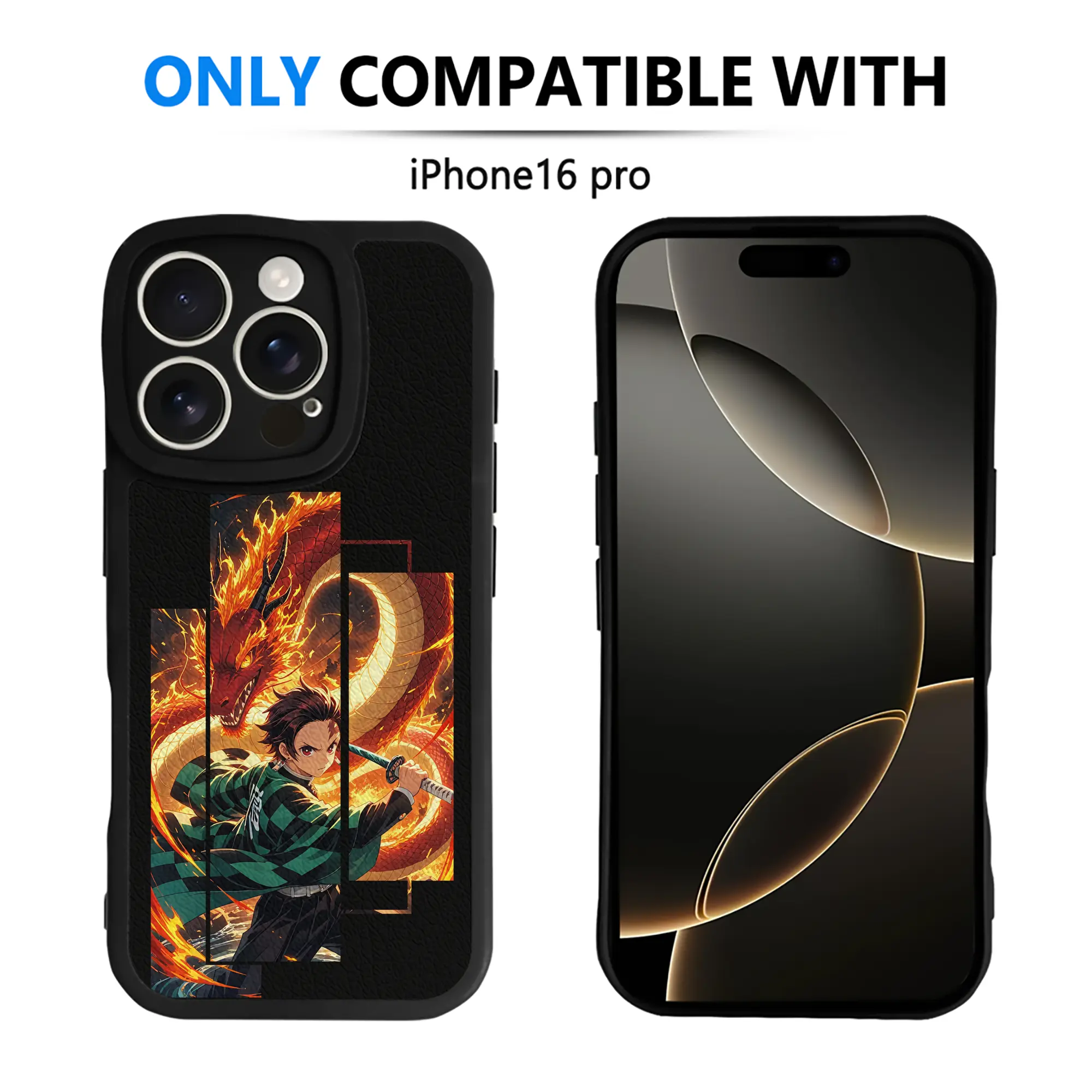 鬼滅の刃 グッズ,竈門 炭治郎 - IPhone 16シリーズ対応 ・ シリコンスマホケース ・ レザー調 ・ 高精度フィット ・ 耐衝撃 ・ ワイヤレス充電対応 ・ 精密カット