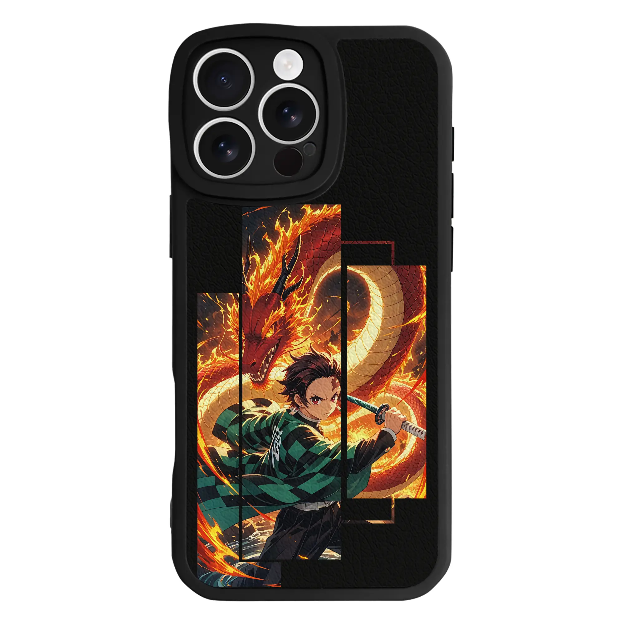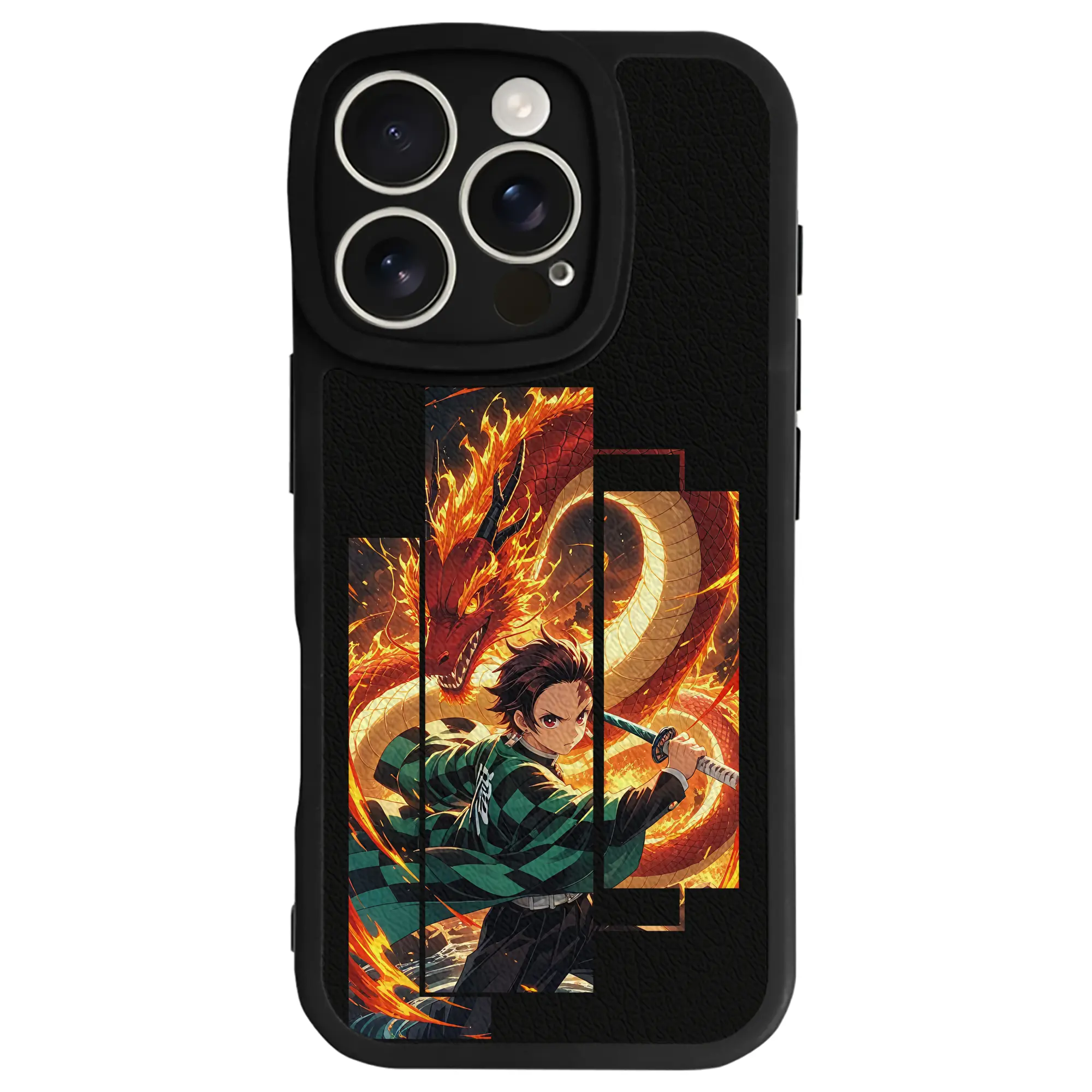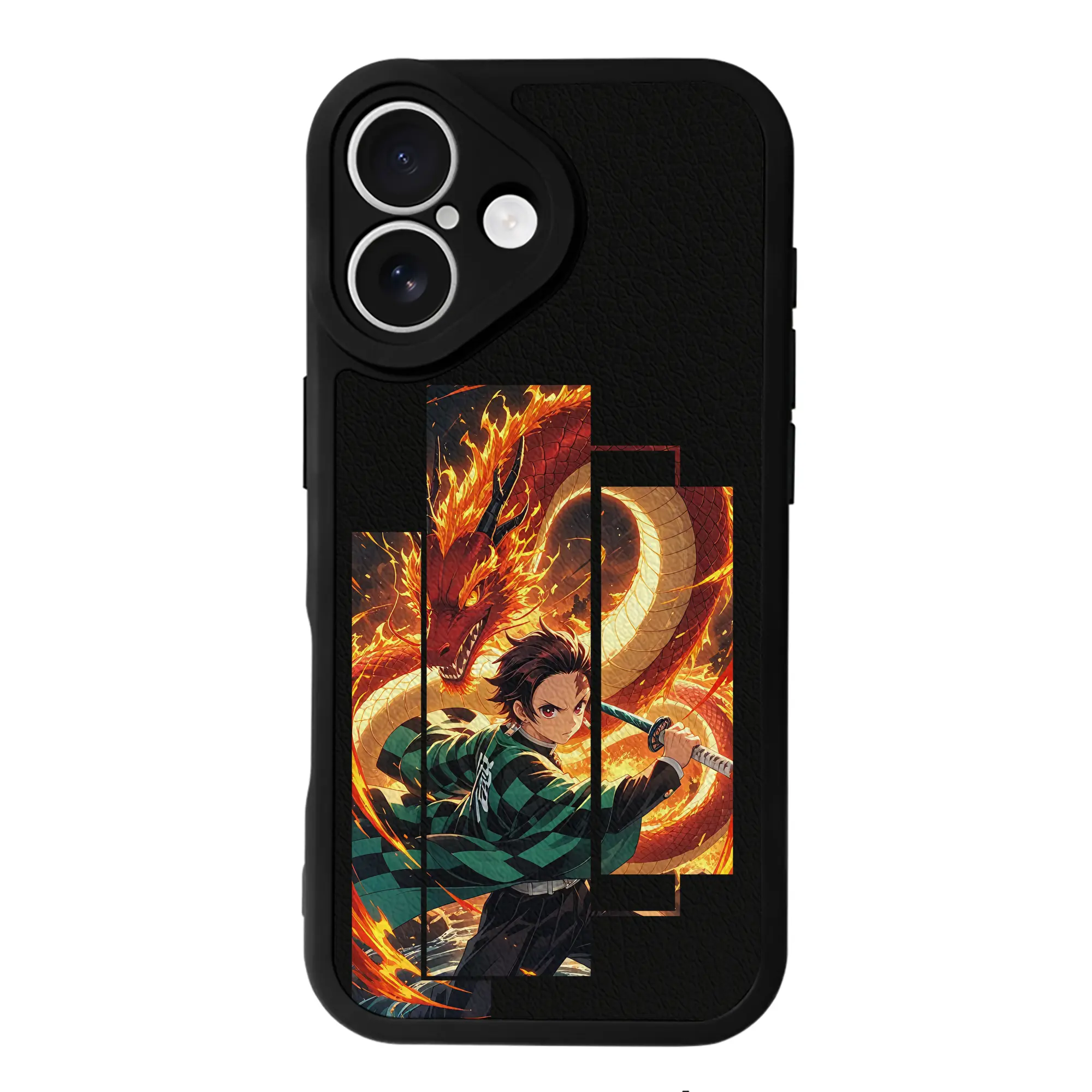 鬼滅の刃 グッズ,竈門 炭治郎 - IPhone 16シリーズ対応 ・ シリコンスマホケース ・ レザー調 ・ 高精度フィット ・ 耐衝撃 ・ ワイヤレス充電対応 ・ 精密カット