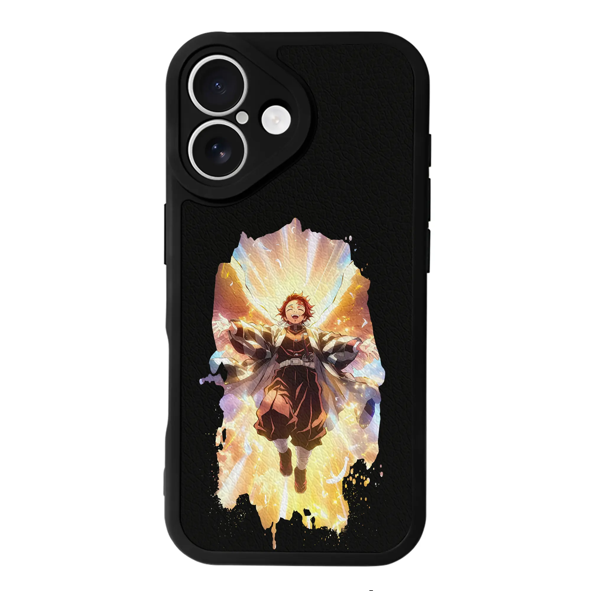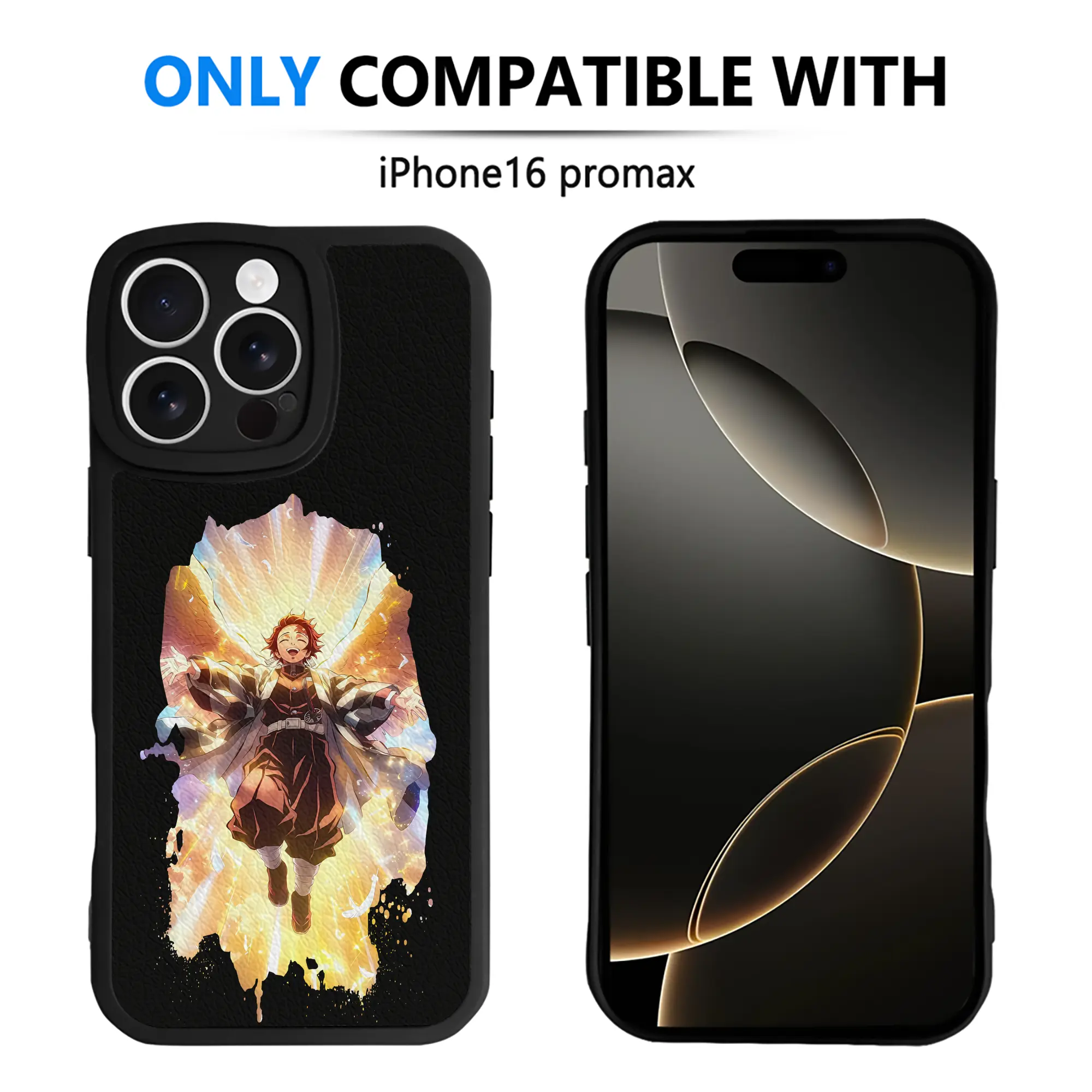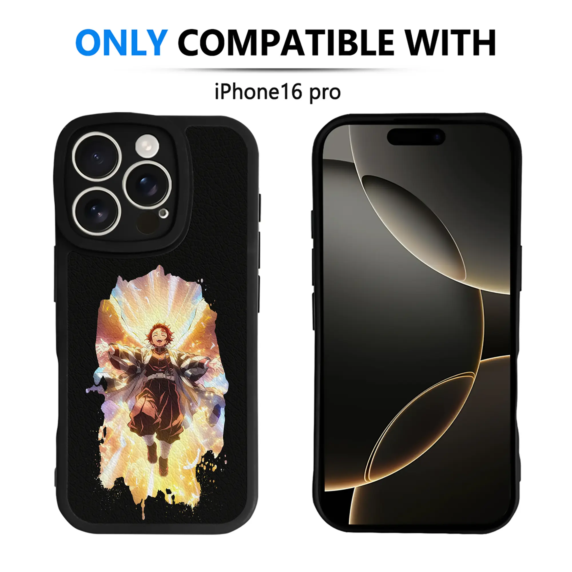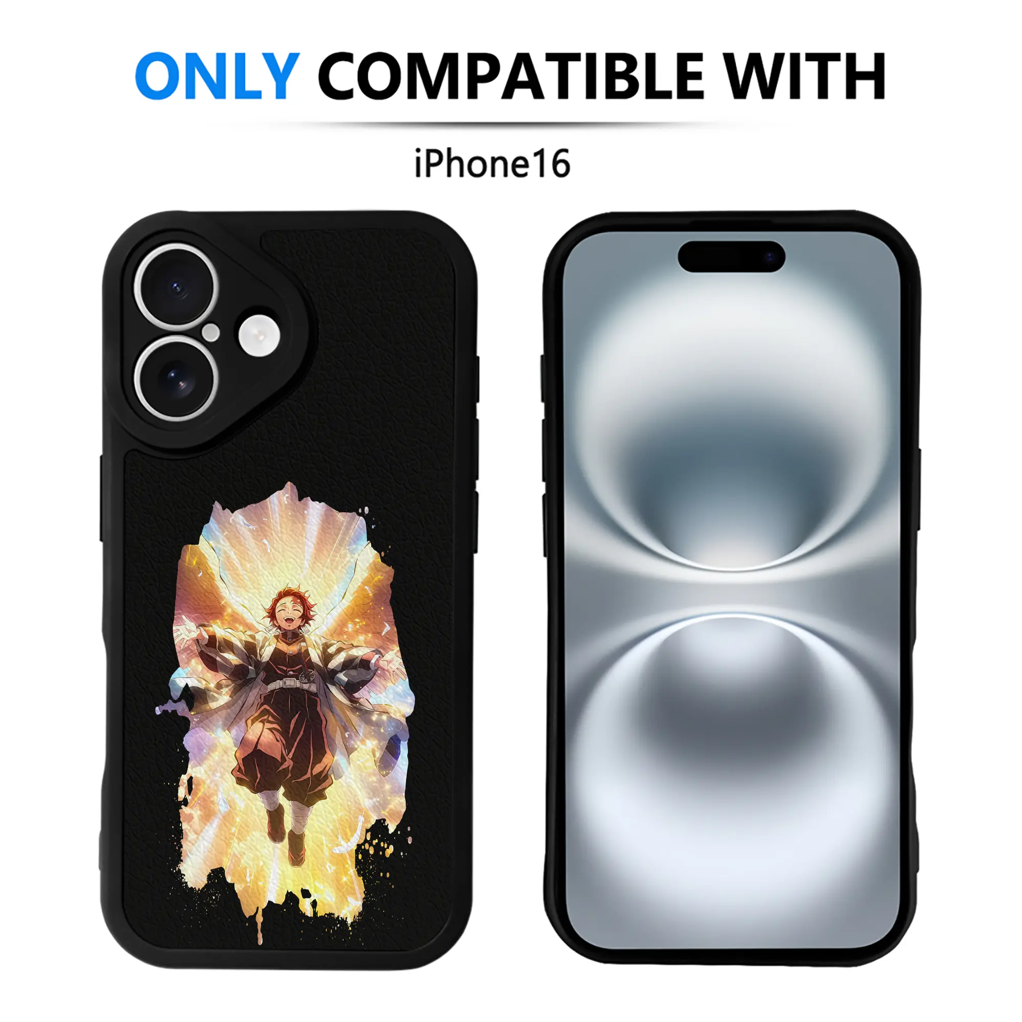 鬼滅の刃 グッズ,竈門 炭治郎 - IPhone 16シリーズ対応 ・ シリコンスマホケース ・ レザー調 ・ 高精度フィット ・ 耐衝撃 ・ ワイヤレス充電対応 ・ 精密カット