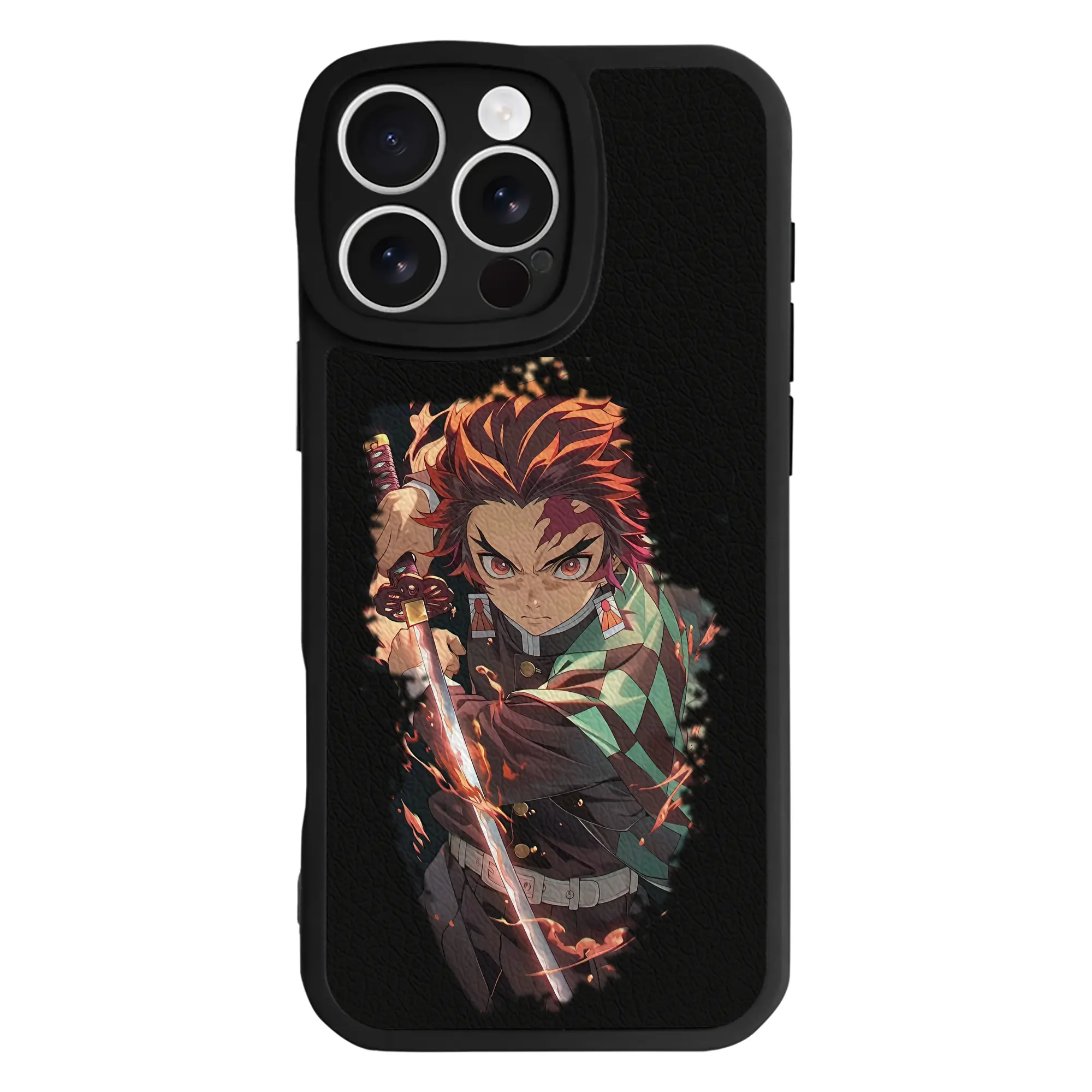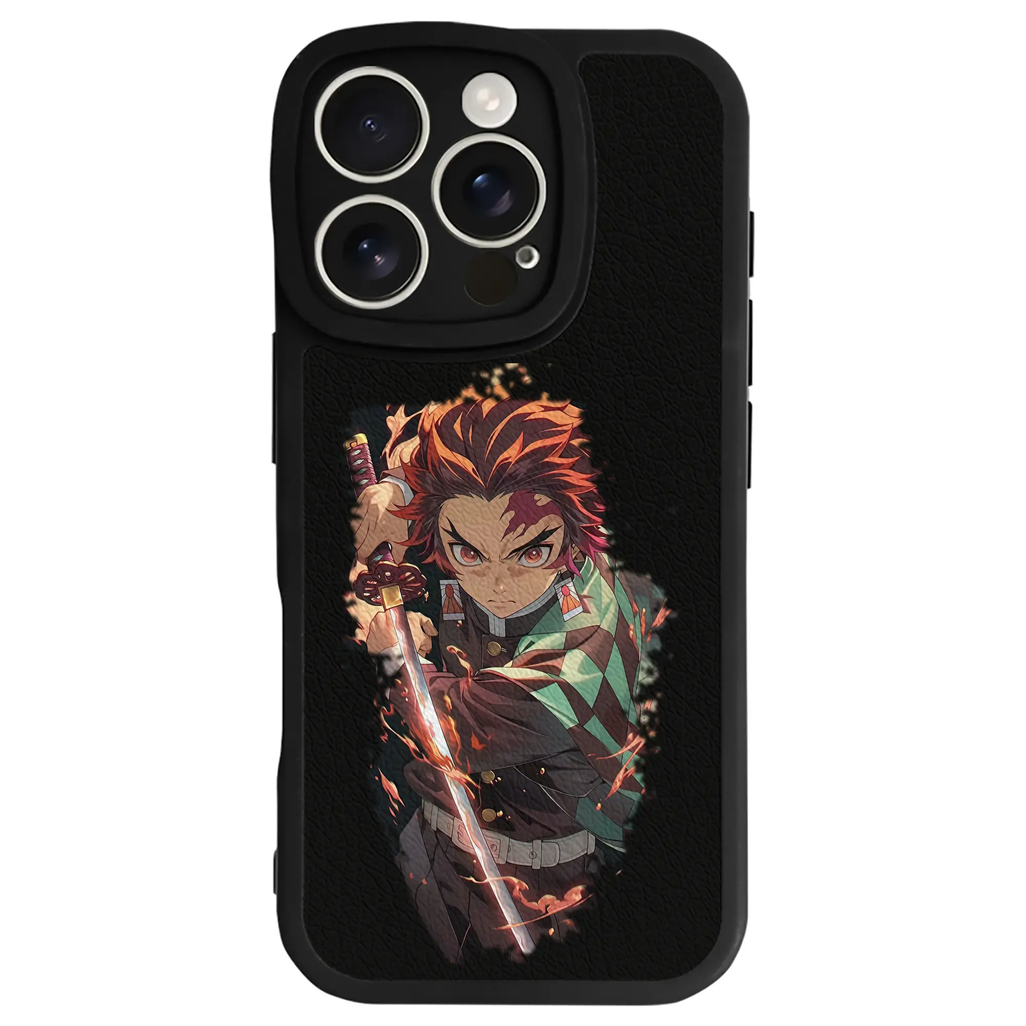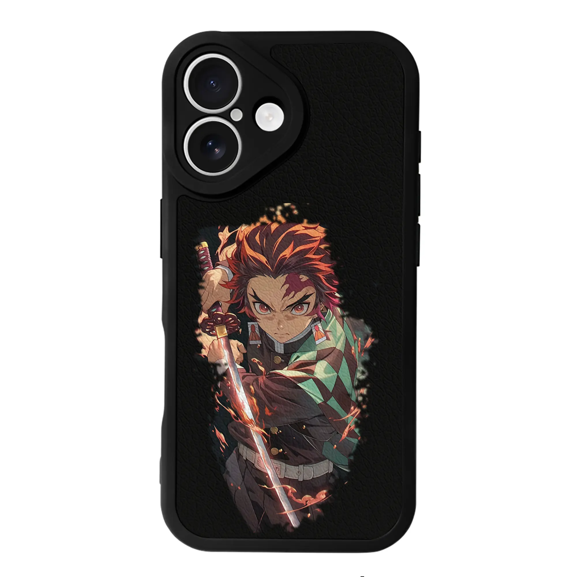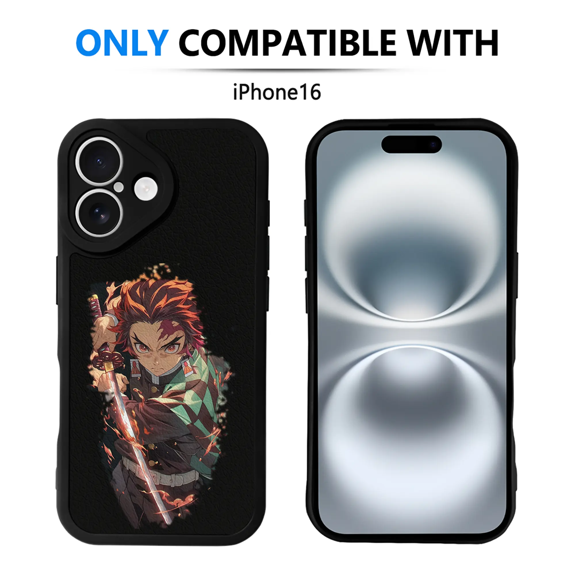 鬼滅の刃 グッズ,竈門 炭治郎 - IPhone 16シリーズ対応 ・ シリコンスマホケース ・ レザー調 ・ 高精度フィット ・ 耐衝撃 ・ ワイヤレス充電対応 ・ 精密カット