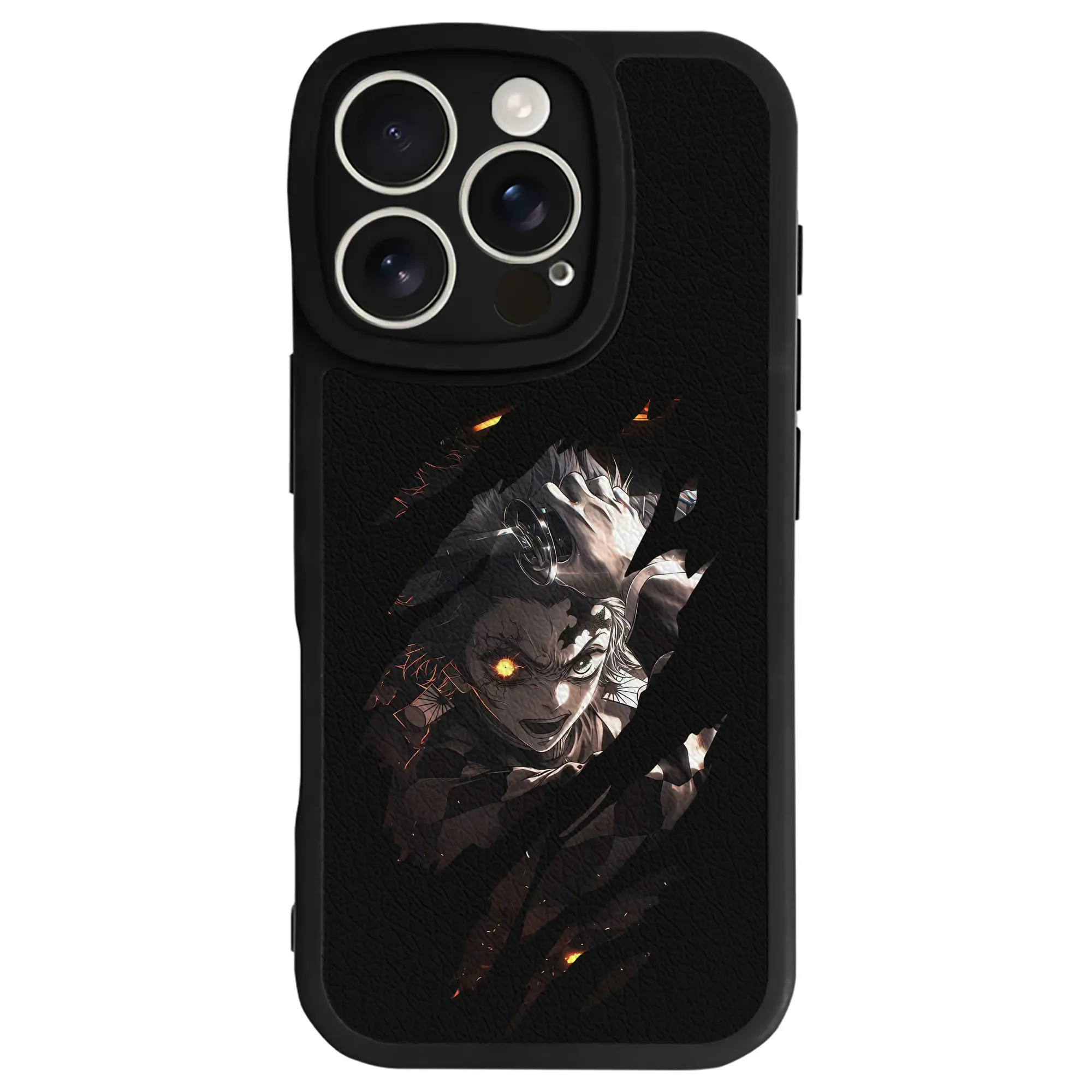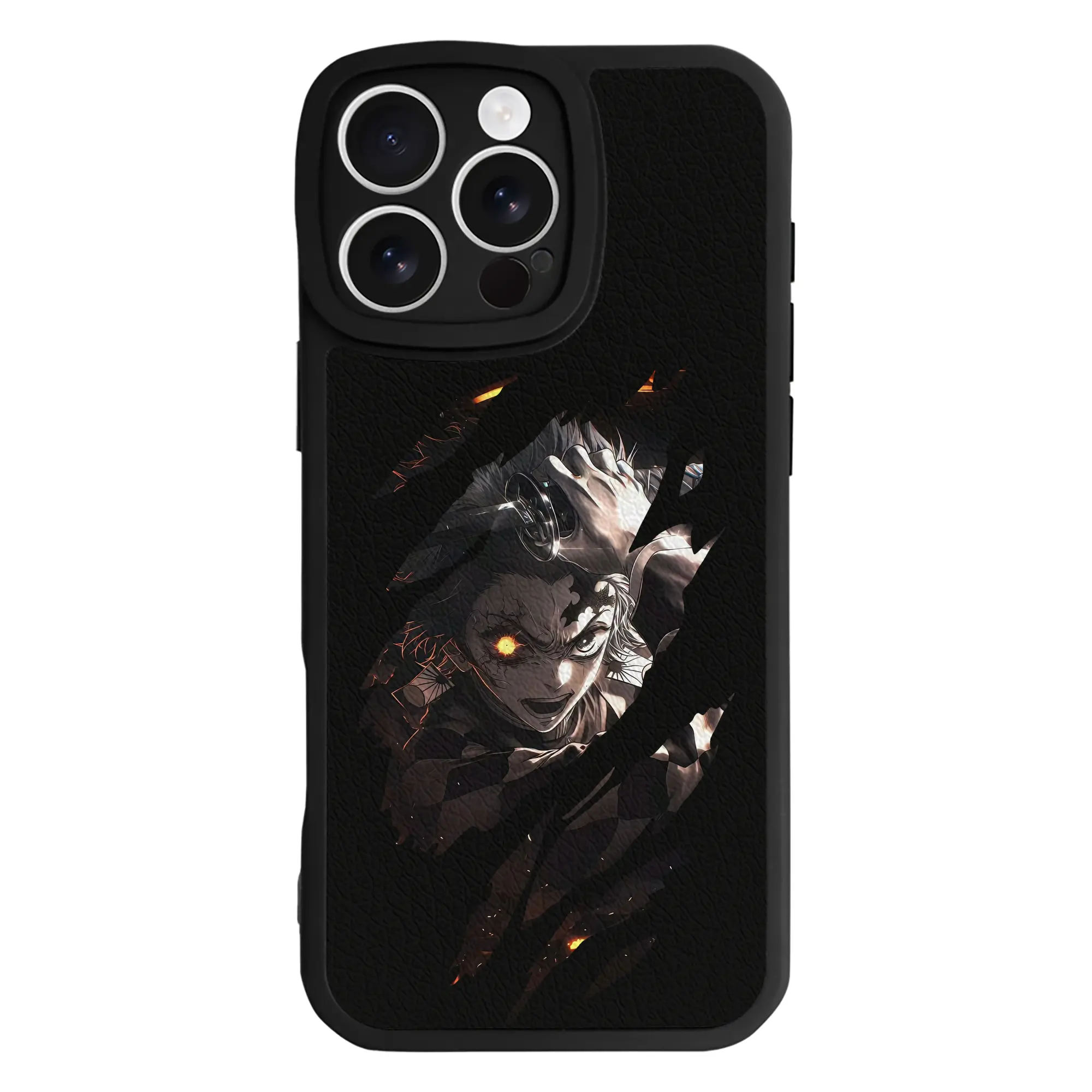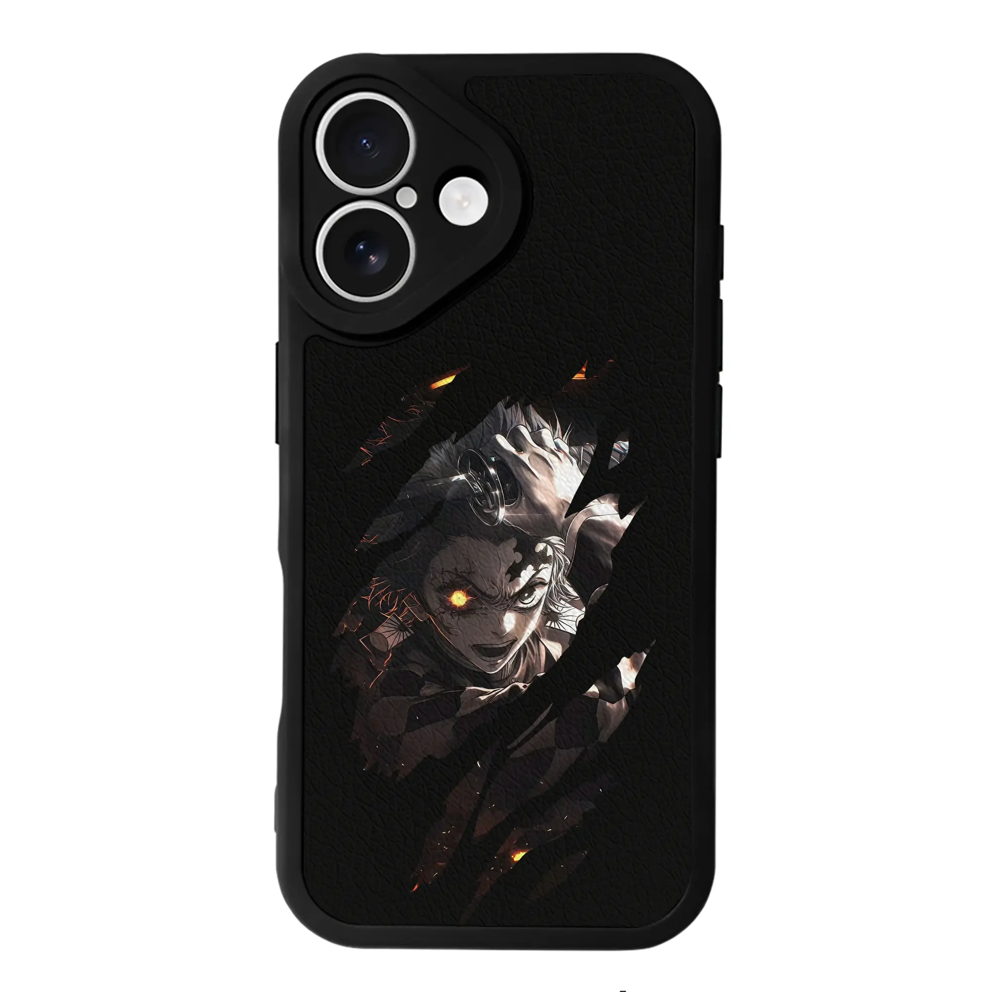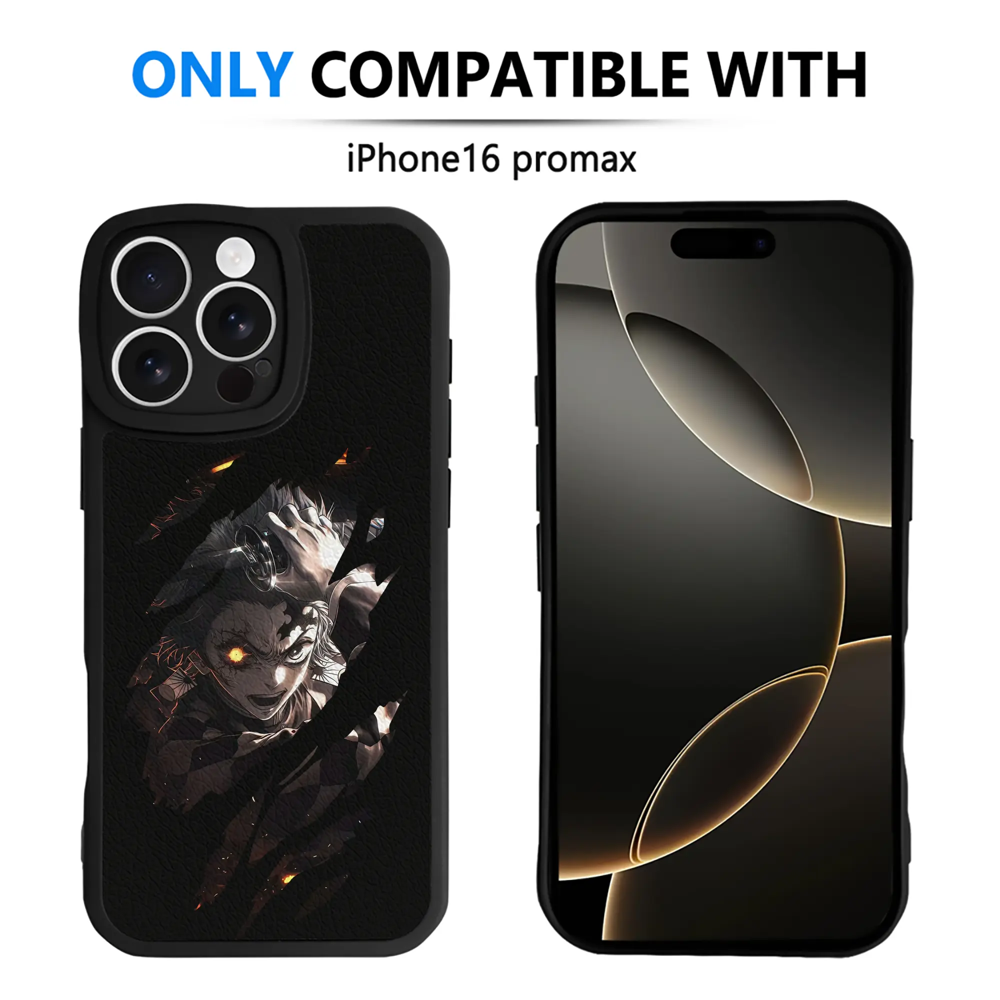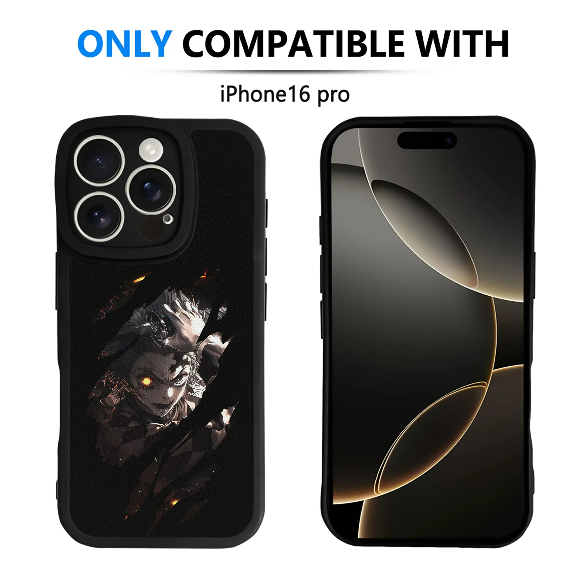 鬼滅の刃 グッズ,竈門 炭治郎 - IPhone 16シリーズ対応 ・ シリコンスマホケース ・ レザー調 ・ 高精度フィット ・ 耐衝撃 ・ ワイヤレス充電対応 ・ 精密カット