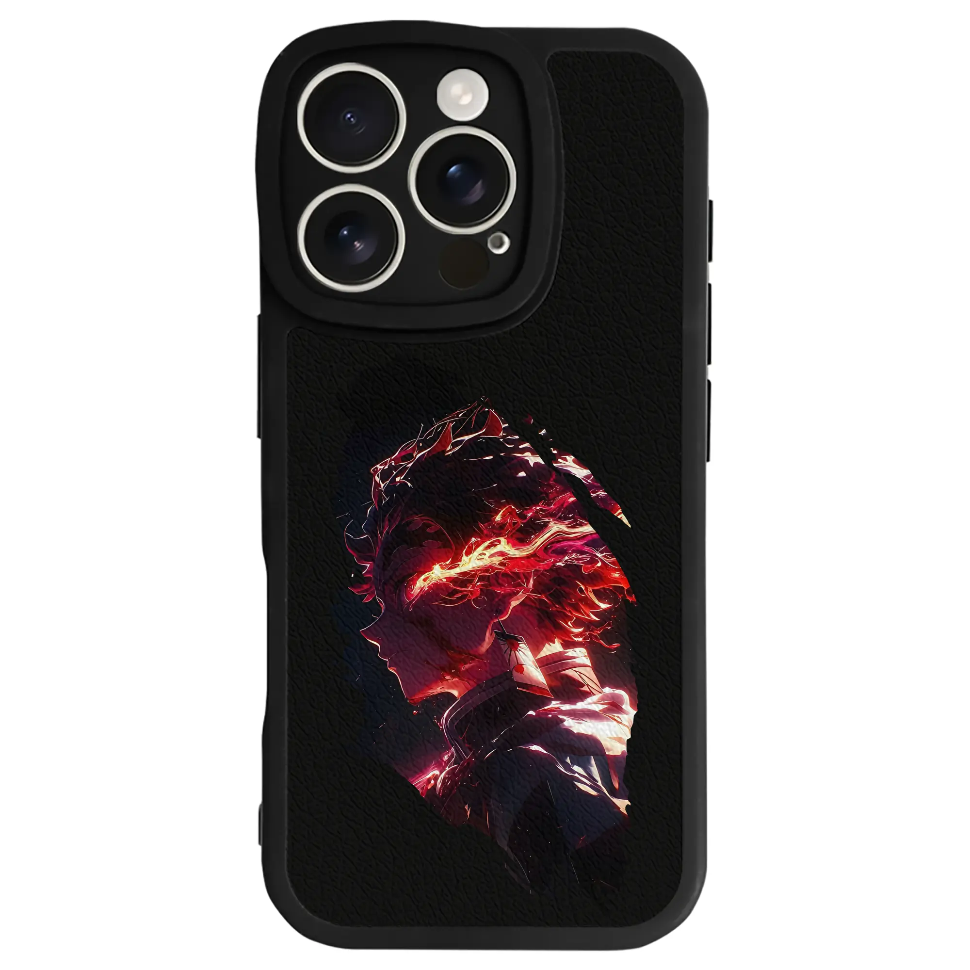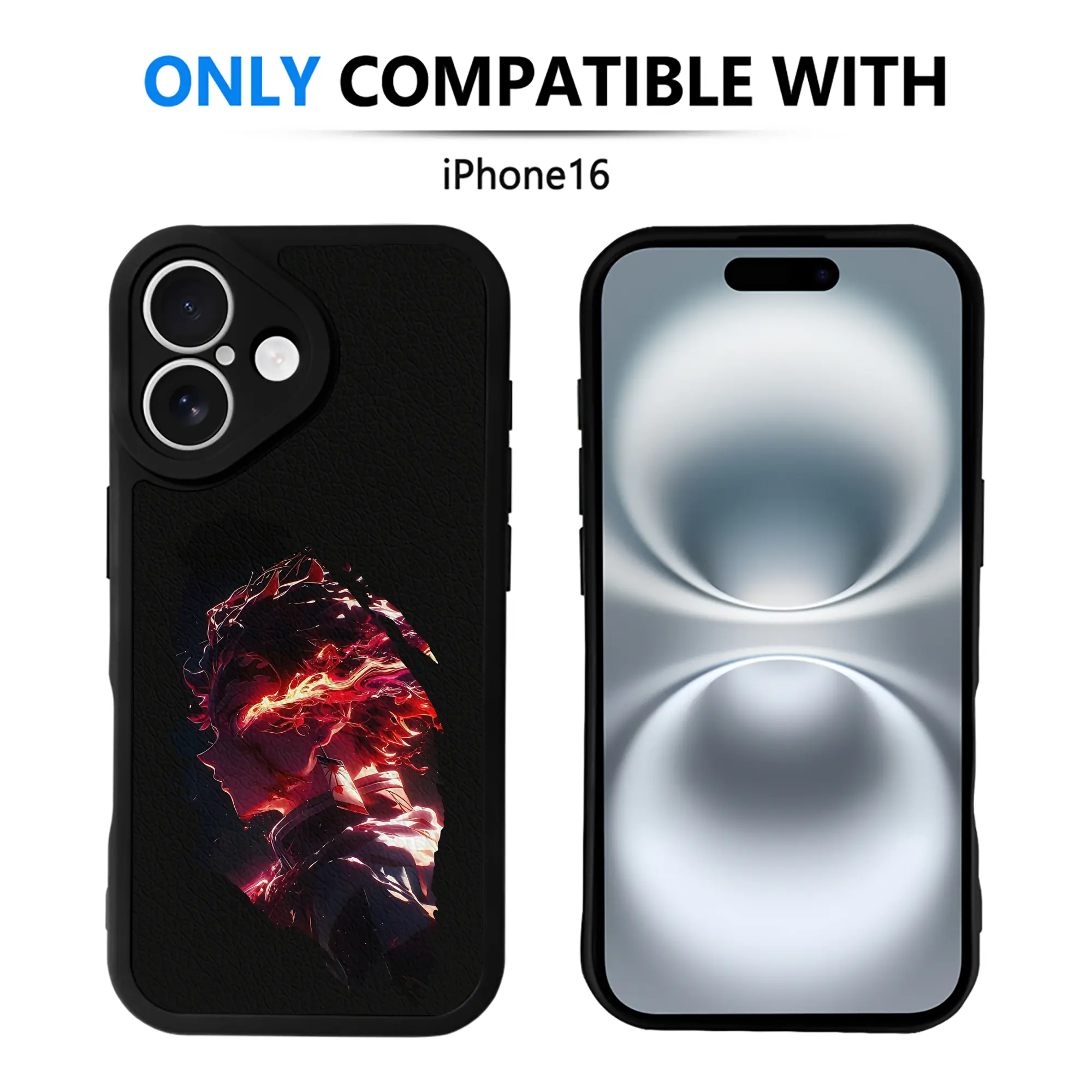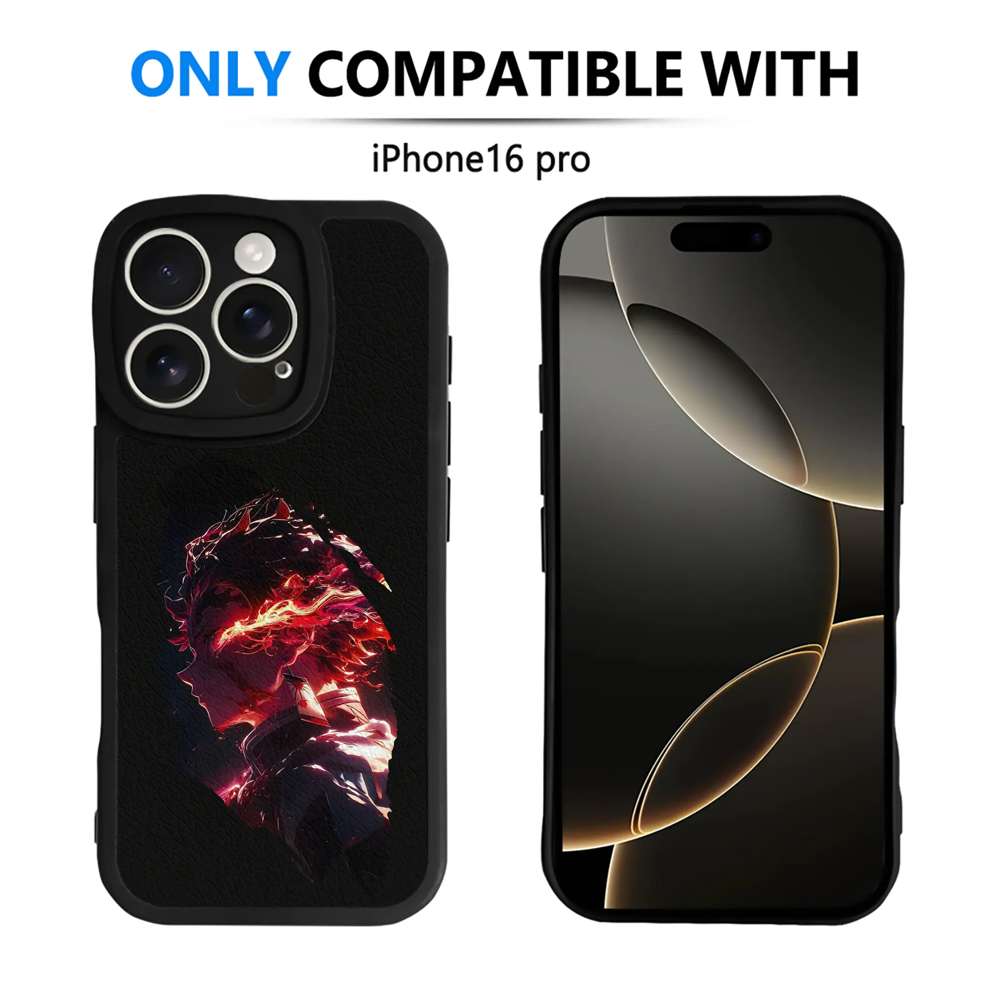 鬼滅の刃 グッズ,竈門 炭治郎 - IPhone 16シリーズ対応 ・ シリコンスマホケース ・ レザー調 ・ 高精度フィット ・ 耐衝撃 ・ ワイヤレス充電対応 ・ 精密カット