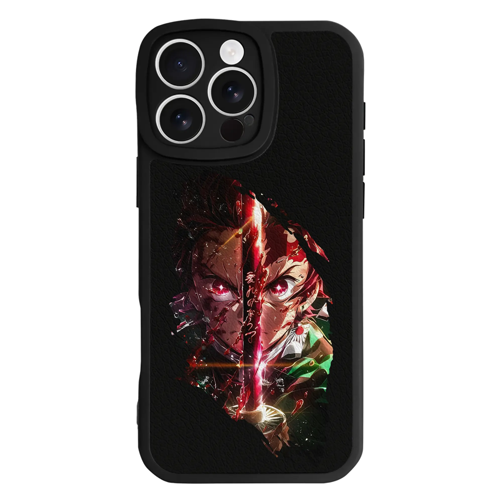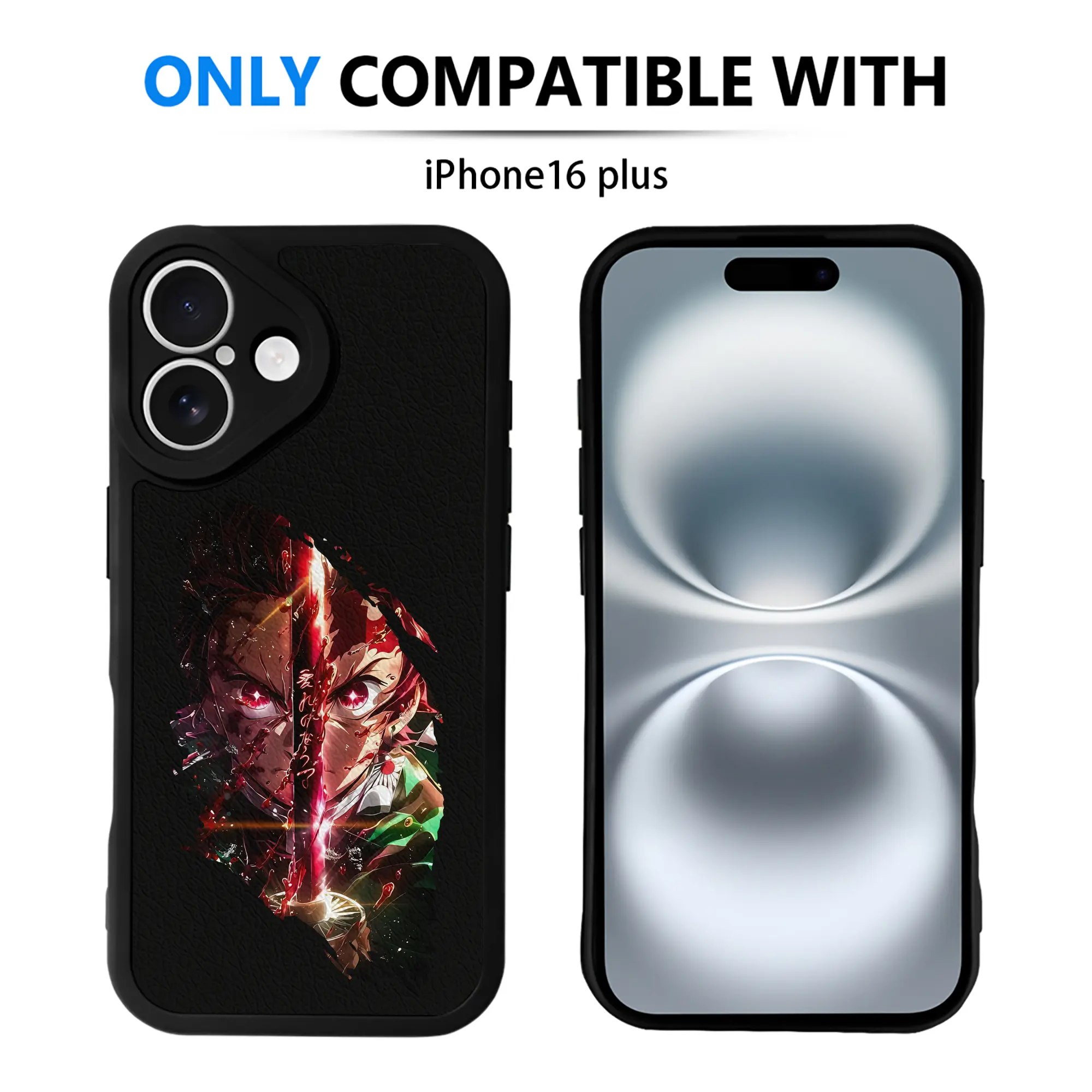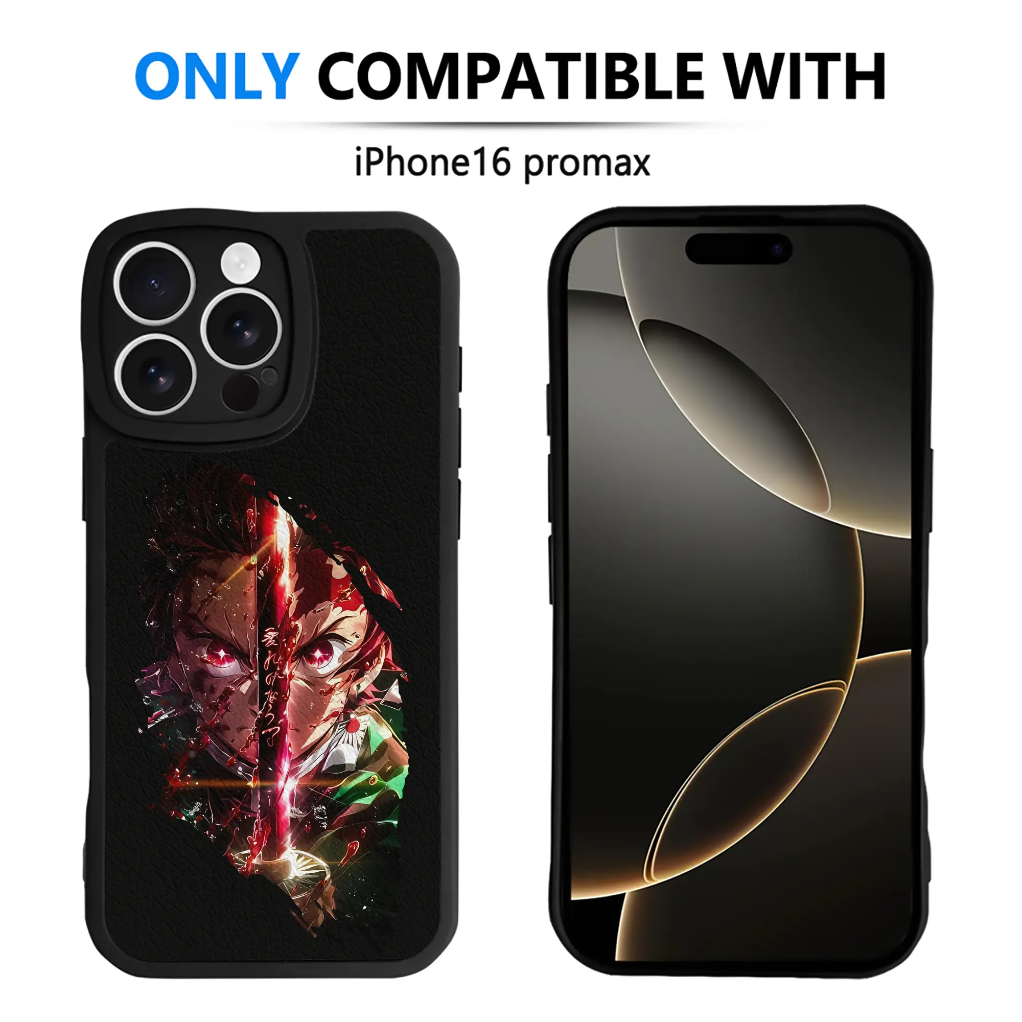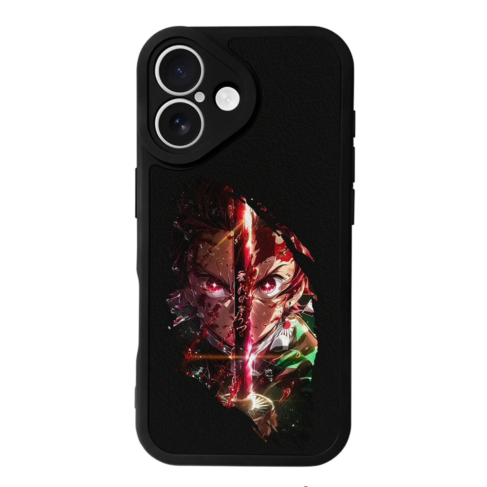 鬼滅の刃 グッズ,竈門 炭治郎 - IPhone 16シリーズ対応 ・ シリコンスマホケース ・ レザー調 ・ 高精度フィット ・ 耐衝撃 ・ ワイヤレス充電対応 ・ 精密カット