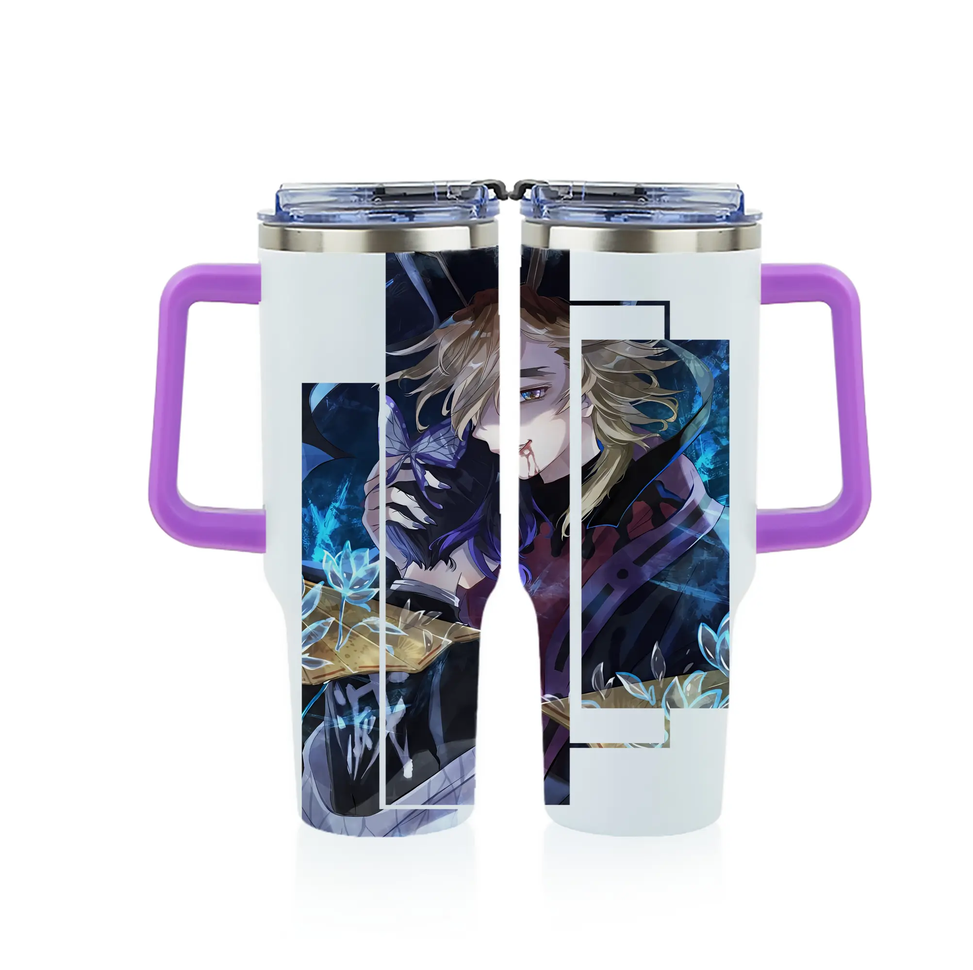 鬼滅の刃 グッズ,童磨 - 1200mL フルプリント車用タンブラー ・ 304ステンレス 内側 ・ 201ステンレス 外側 ・ 保温 保冷 ・ 通勤 ドライブ アウトドア用