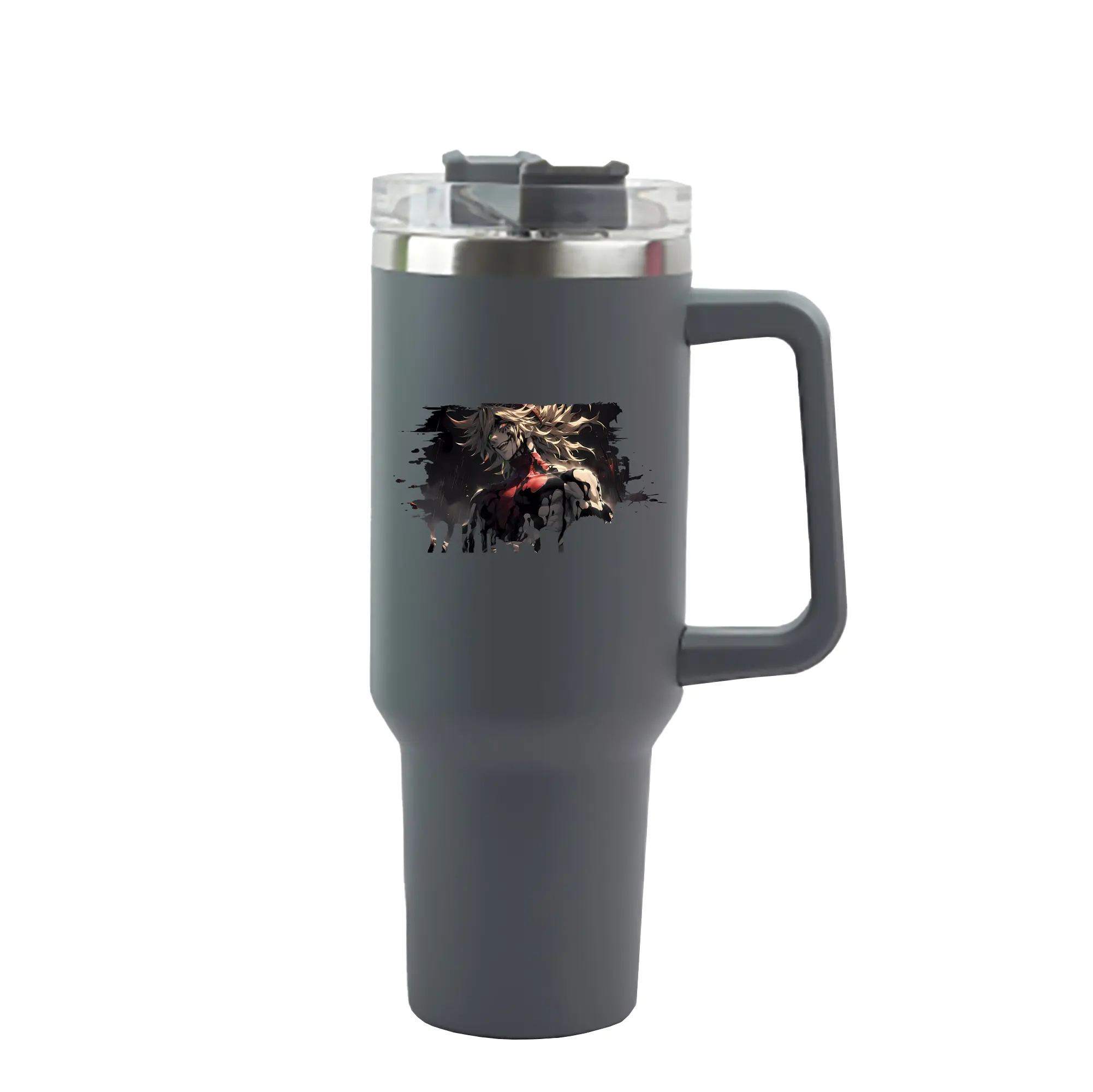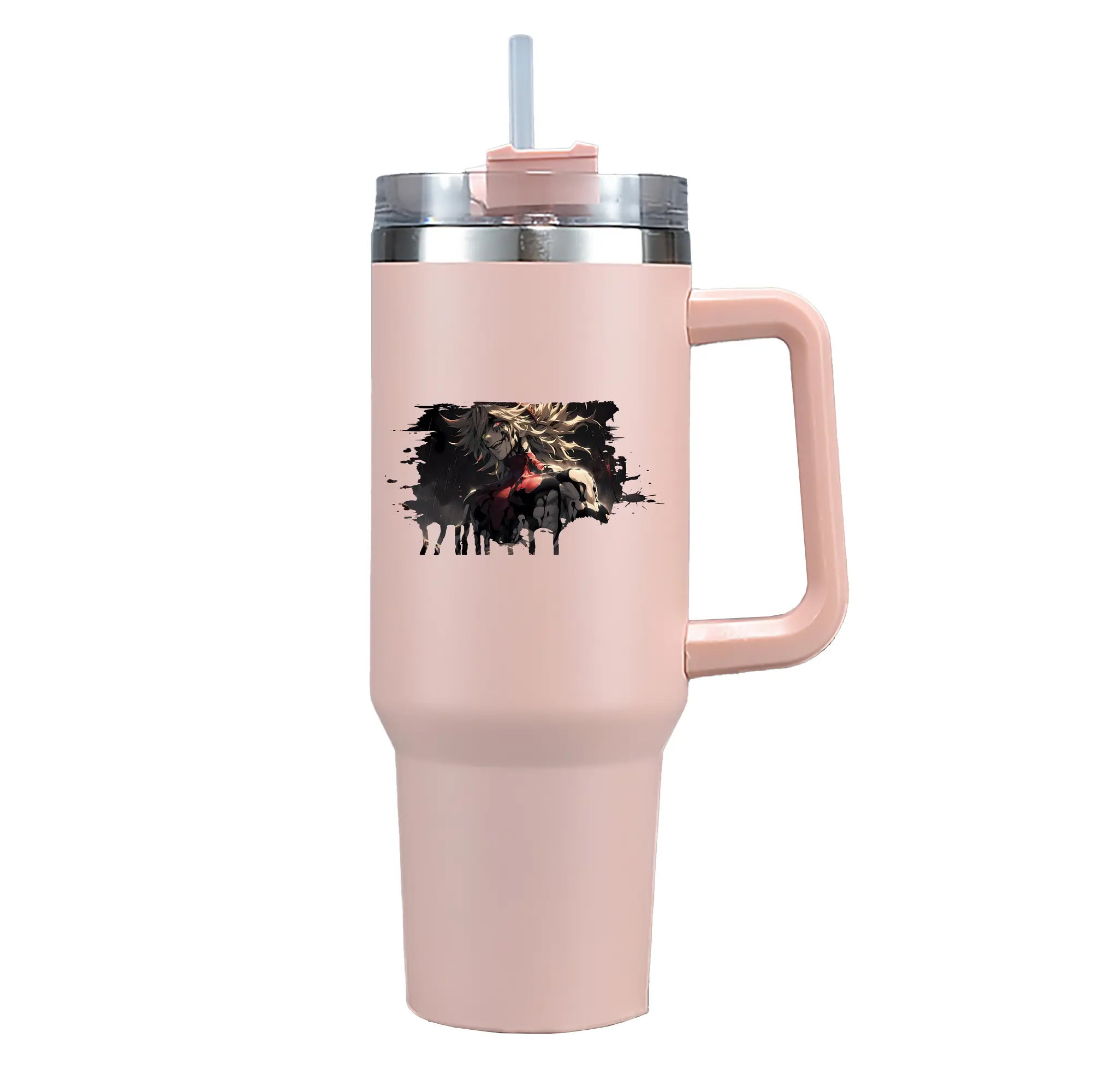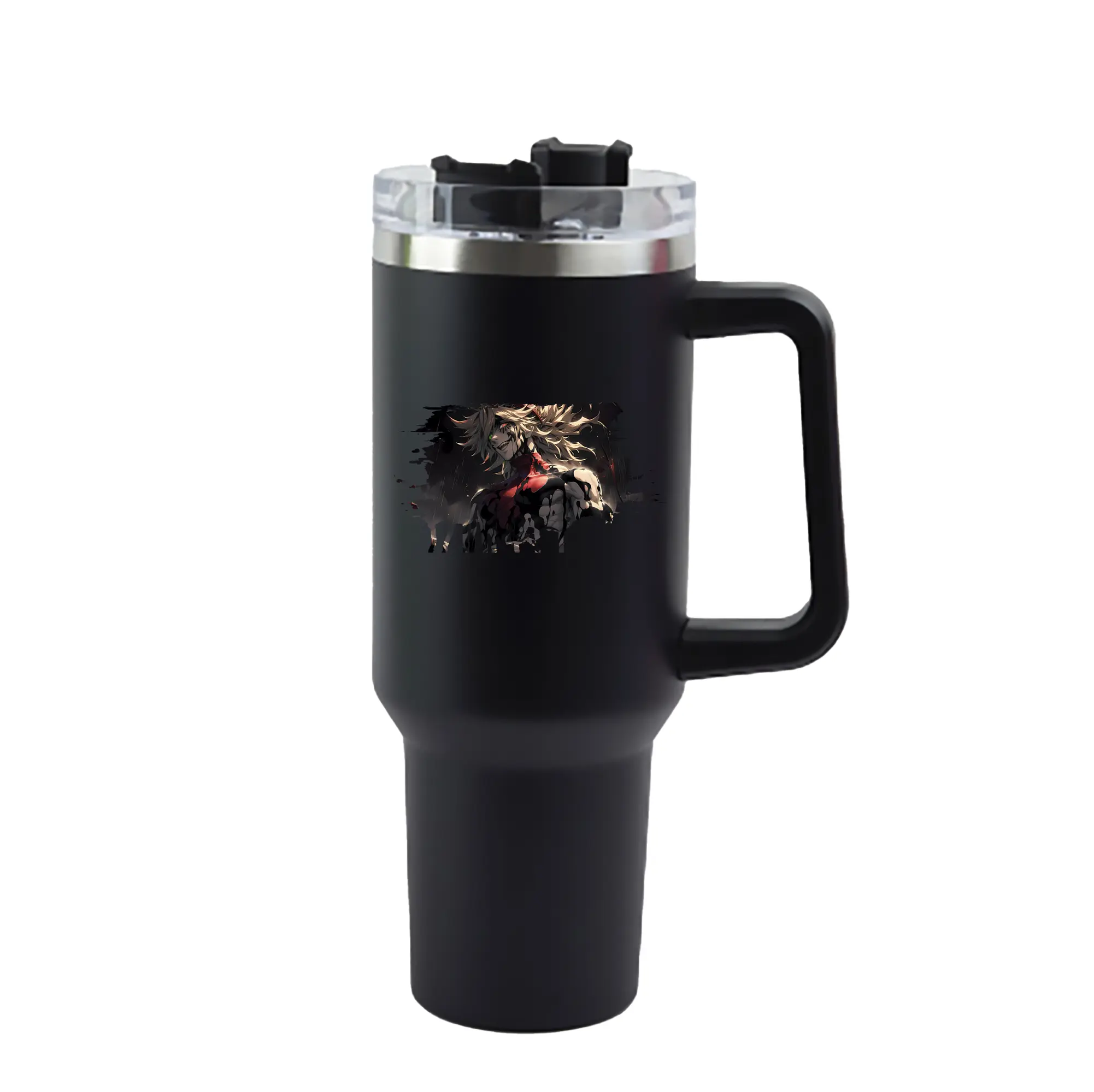 鬼滅の刃 グッズ,童磨 - 1200mL 車用タンブラー ・ クリスタルステッカー ・ 304ステンレス 内側 ・ 201ステンレス 外側 ・ 保温 保冷 ・ ハンドル&ストロー付き ・ 通勤 ドライブ アウトドア用