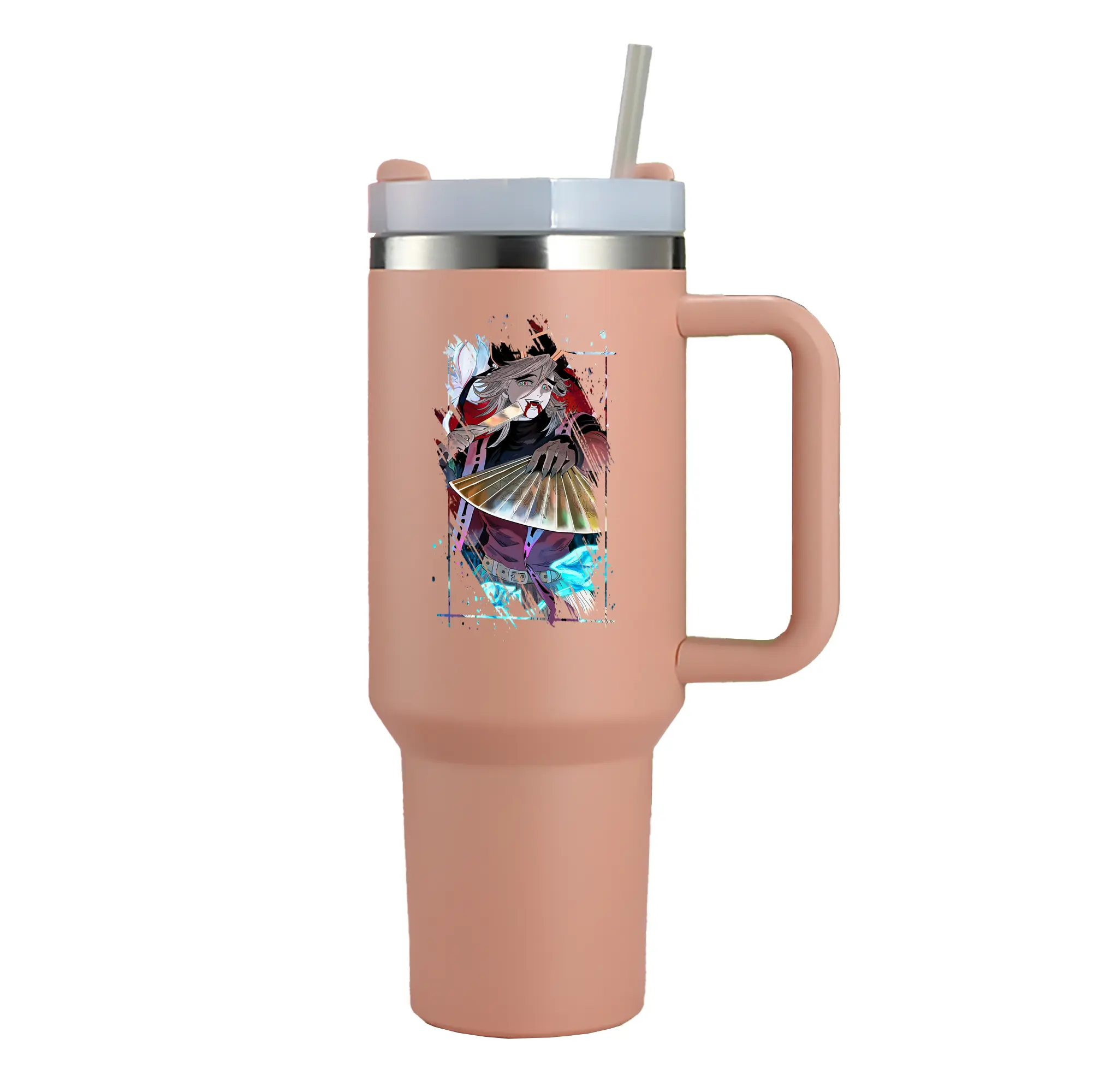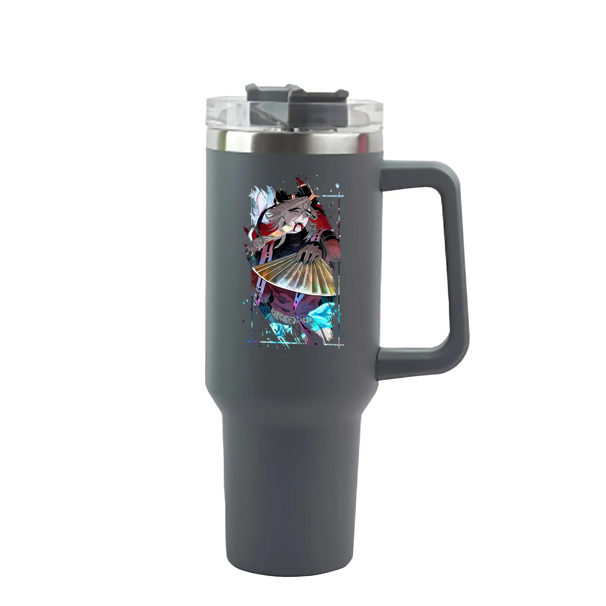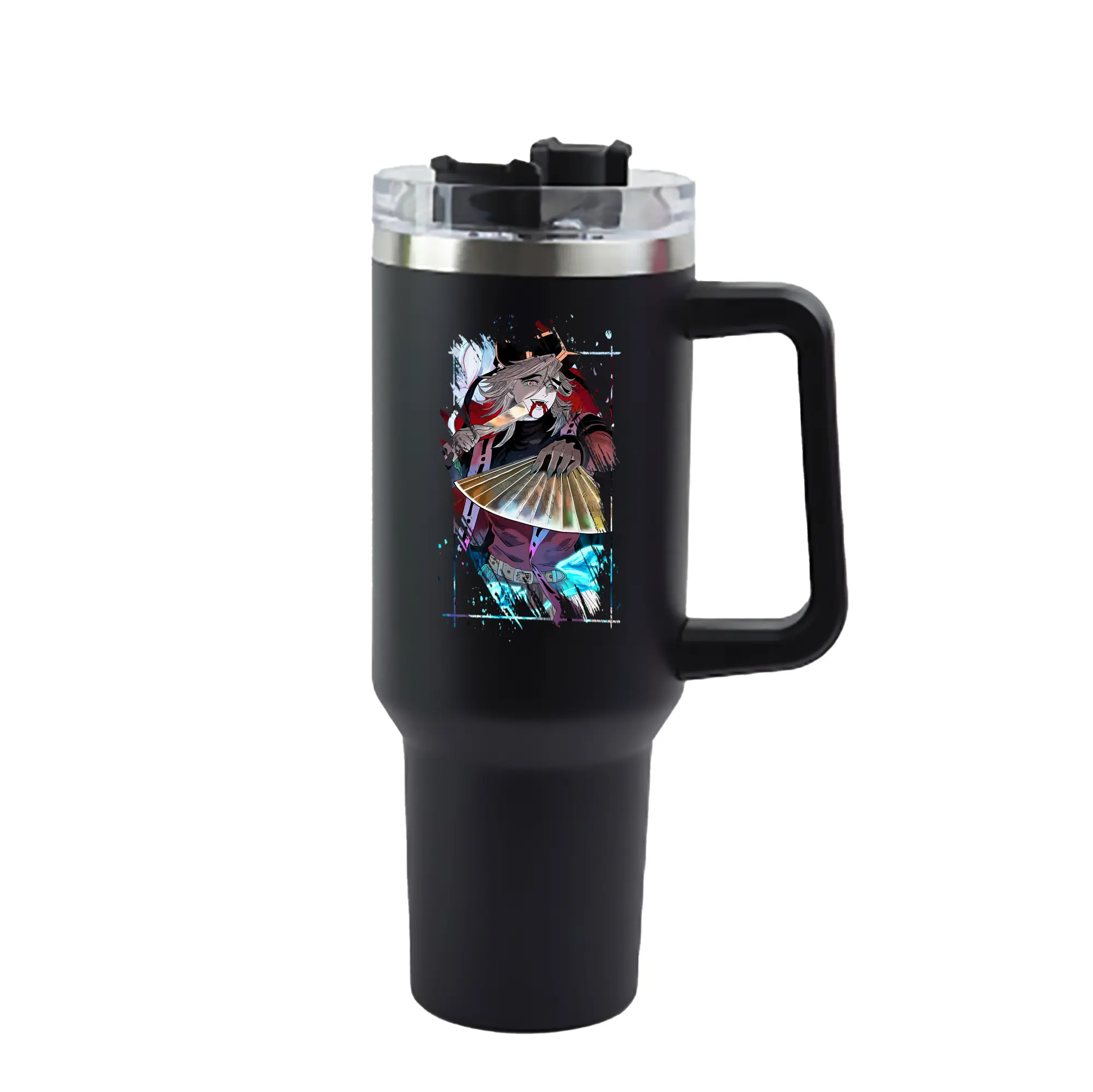 鬼滅の刃 グッズ,童磨 - 1200mL 車用タンブラー ・ クリスタルステッカー ・ 304ステンレス 内側 ・ 201ステンレス 外側 ・ 保温 保冷 ・ ハンドル&ストロー付き ・ 通勤 ドライブ アウトドア用