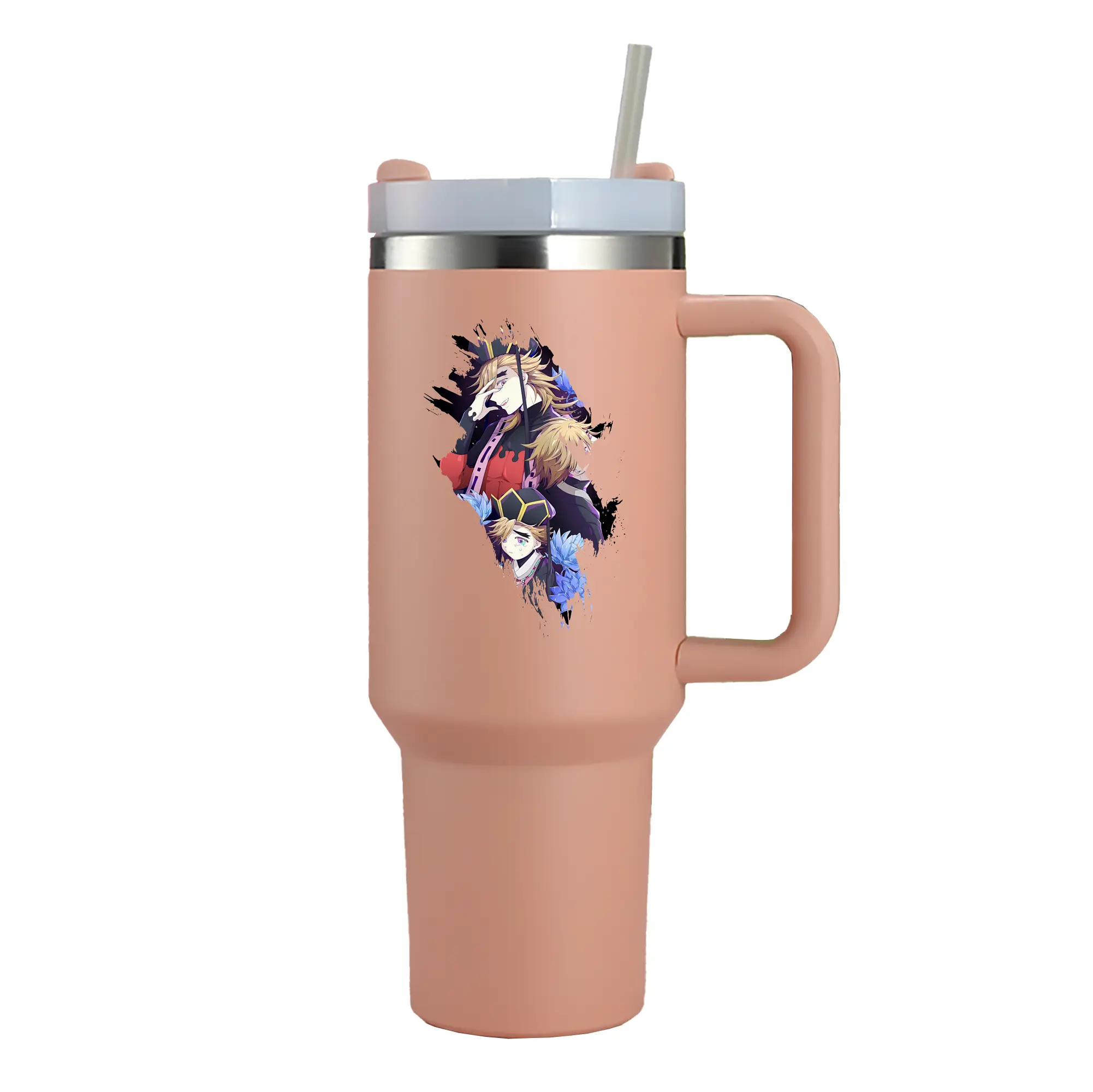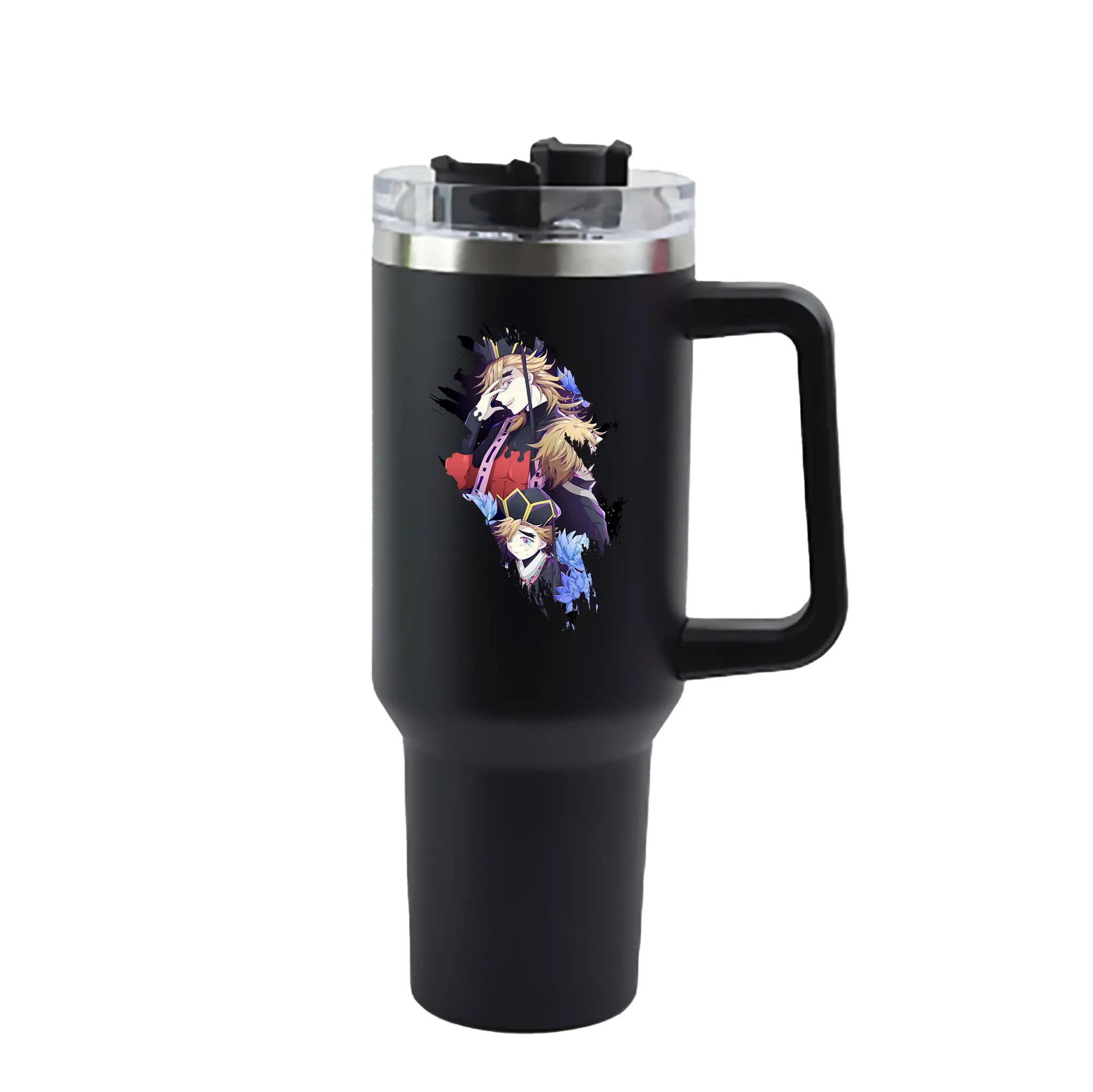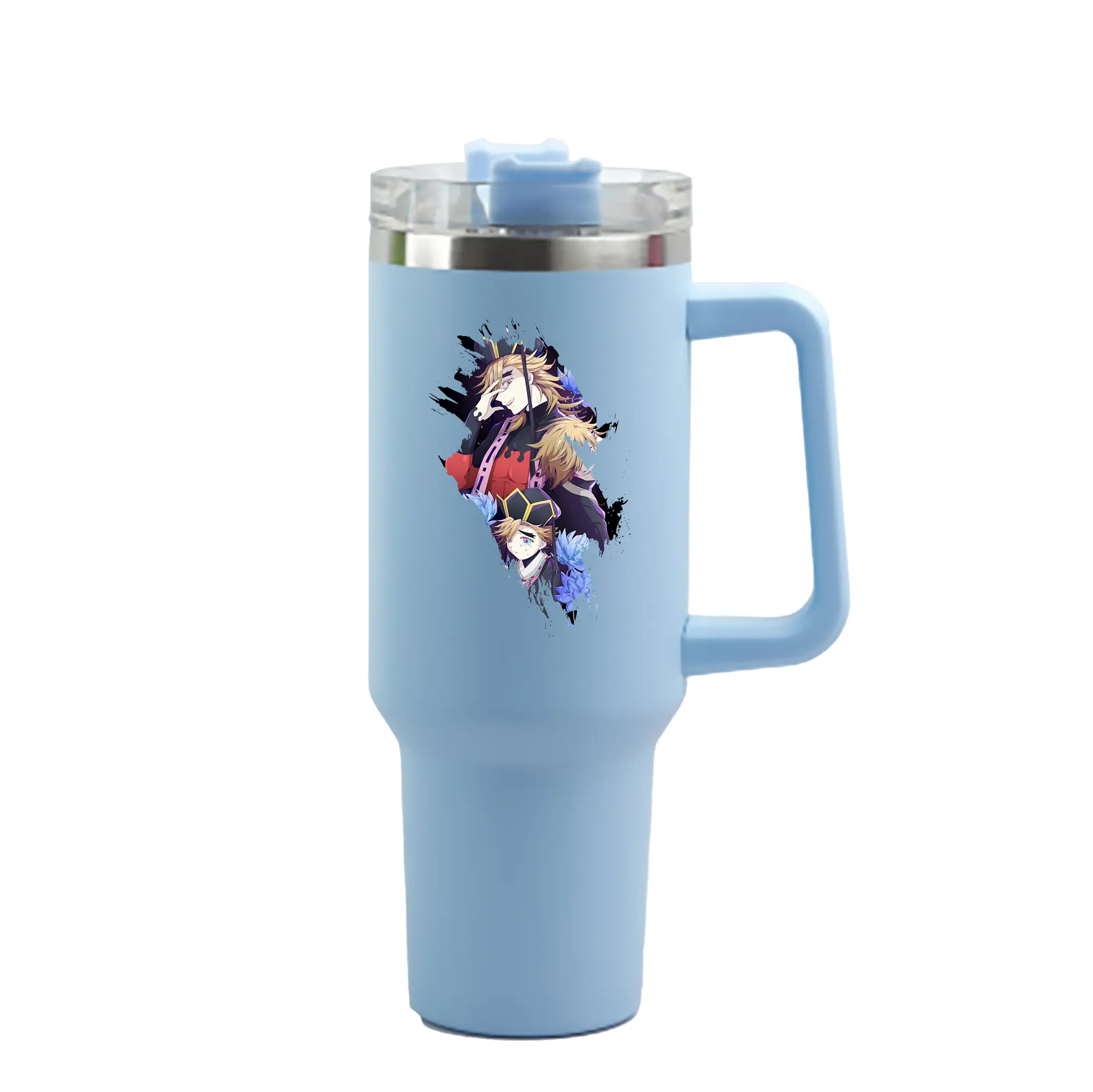 鬼滅の刃 グッズ,童磨 - 1200mL 車用タンブラー ・ クリスタルステッカー ・ 304ステンレス 内側 ・ 201ステンレス 外側 ・ 保温 保冷 ・ ハンドル&ストロー付き ・ 通勤 ドライブ アウトドア用