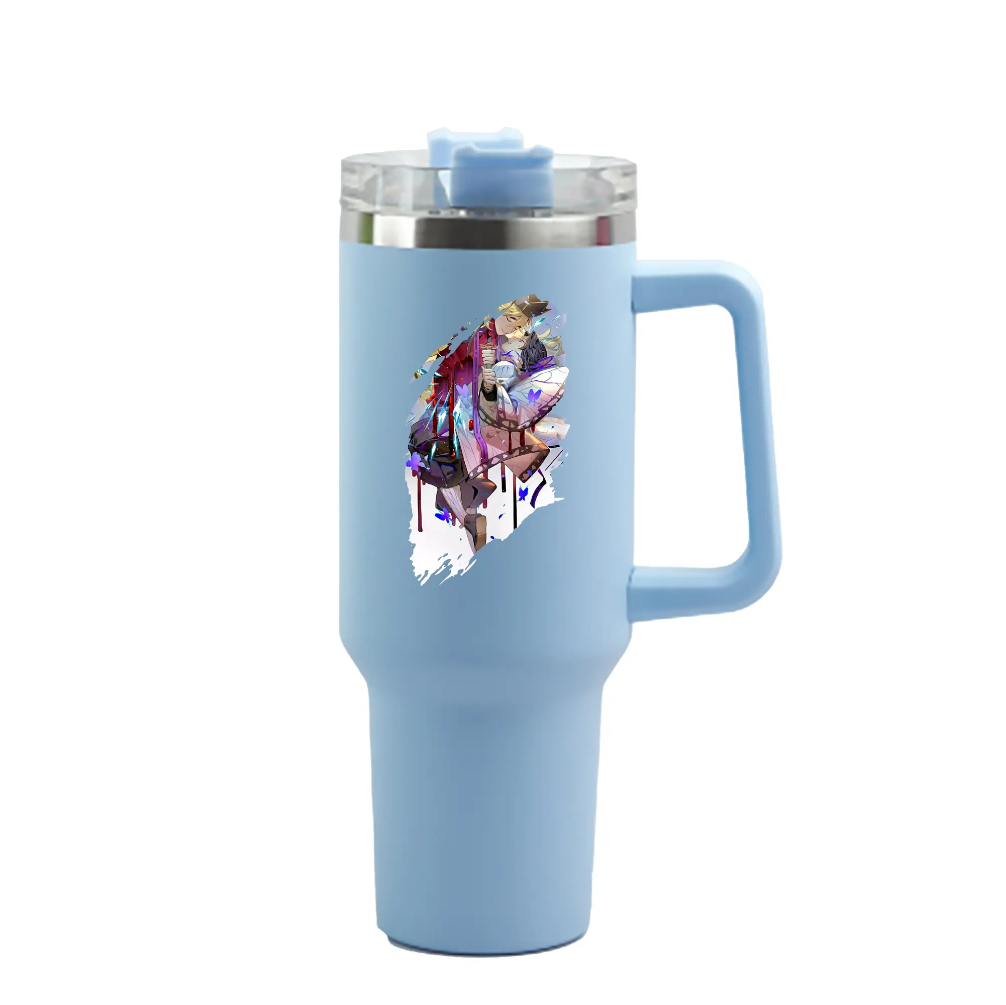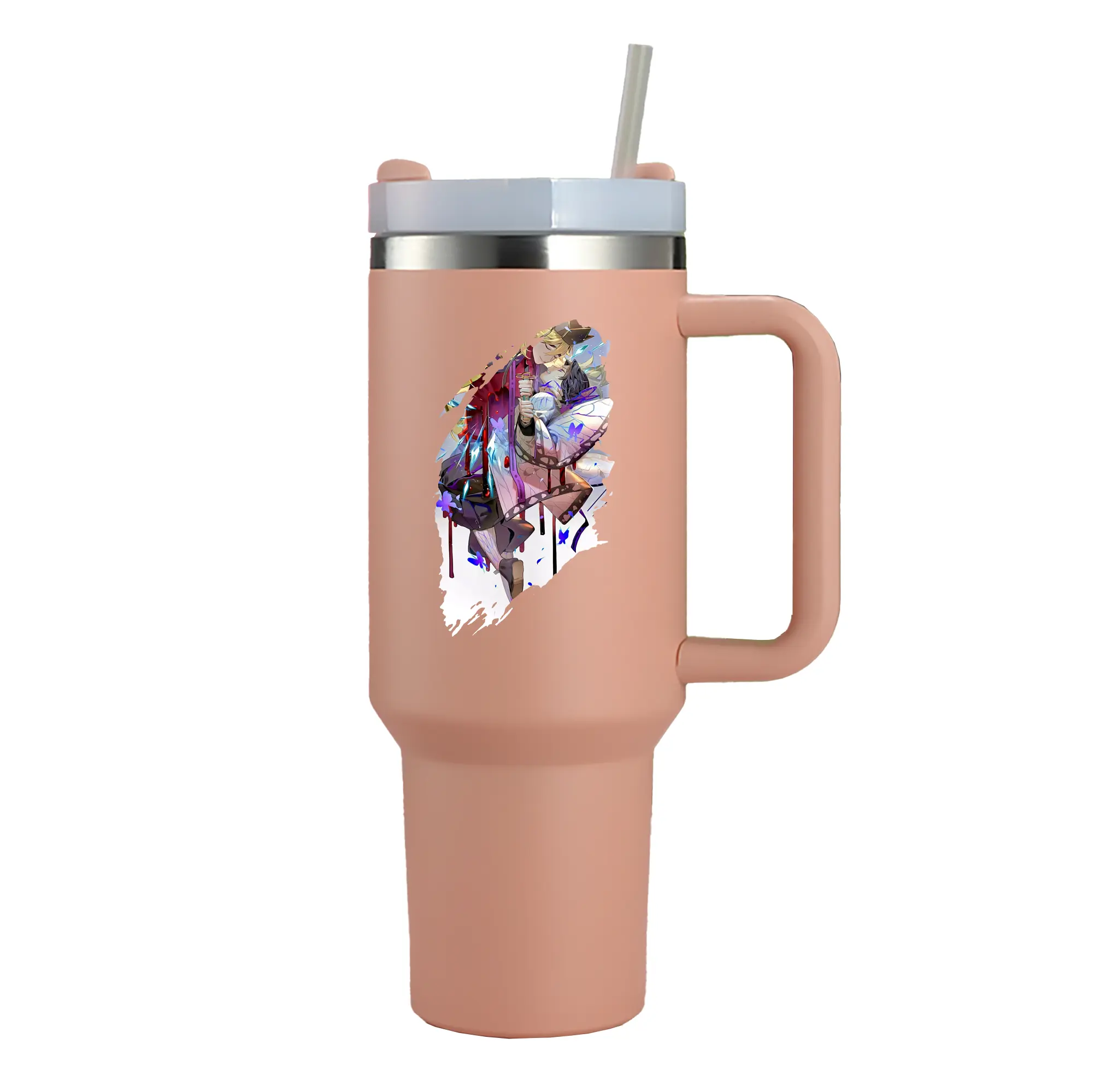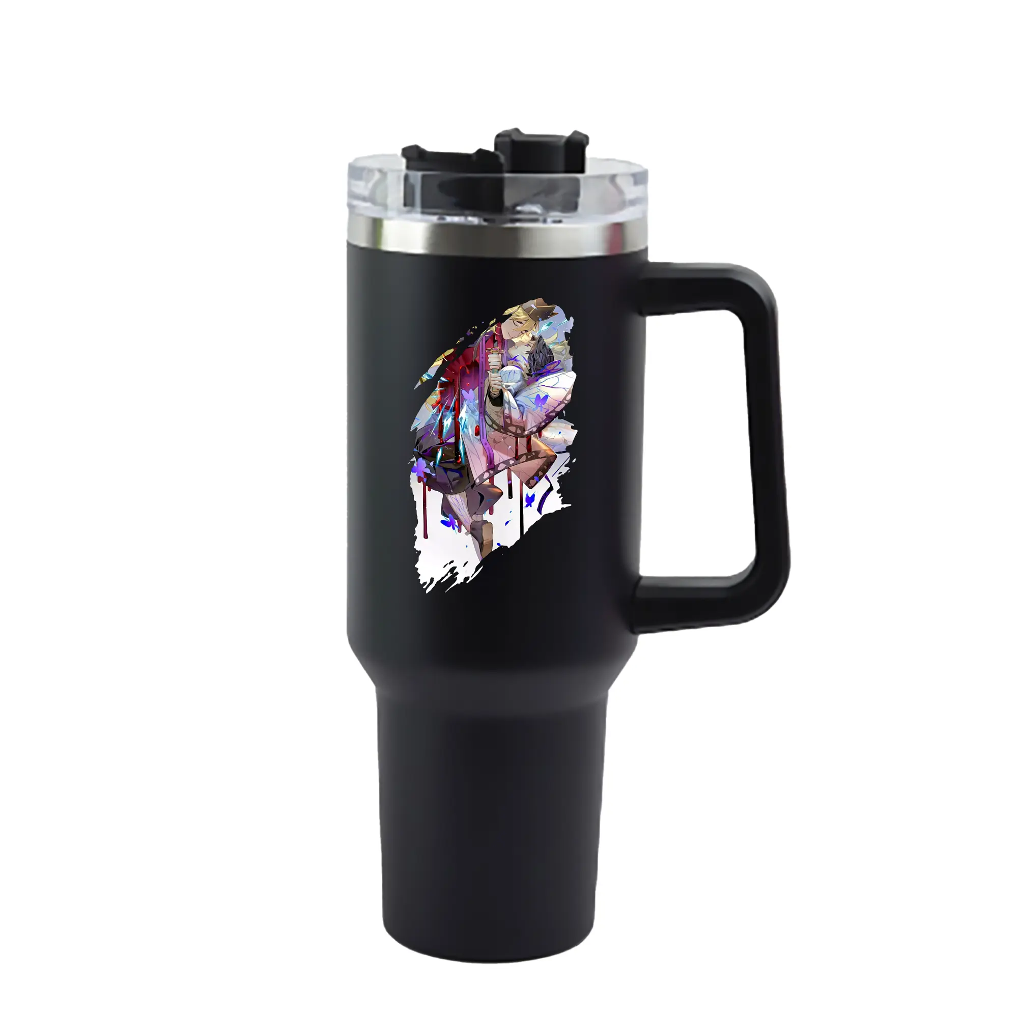 1200mL(40オンス)の大容量ハンドル付きカータンブラー。キラキラと輝くクリスタルステッカーデザインが、毎日の使用に華やかさをプラスします。食品グレード304ステンレスの内側と頑丈な201ステンレスの外側を採用し、耐久性・耐腐食性・安全性を兼ね備えています。