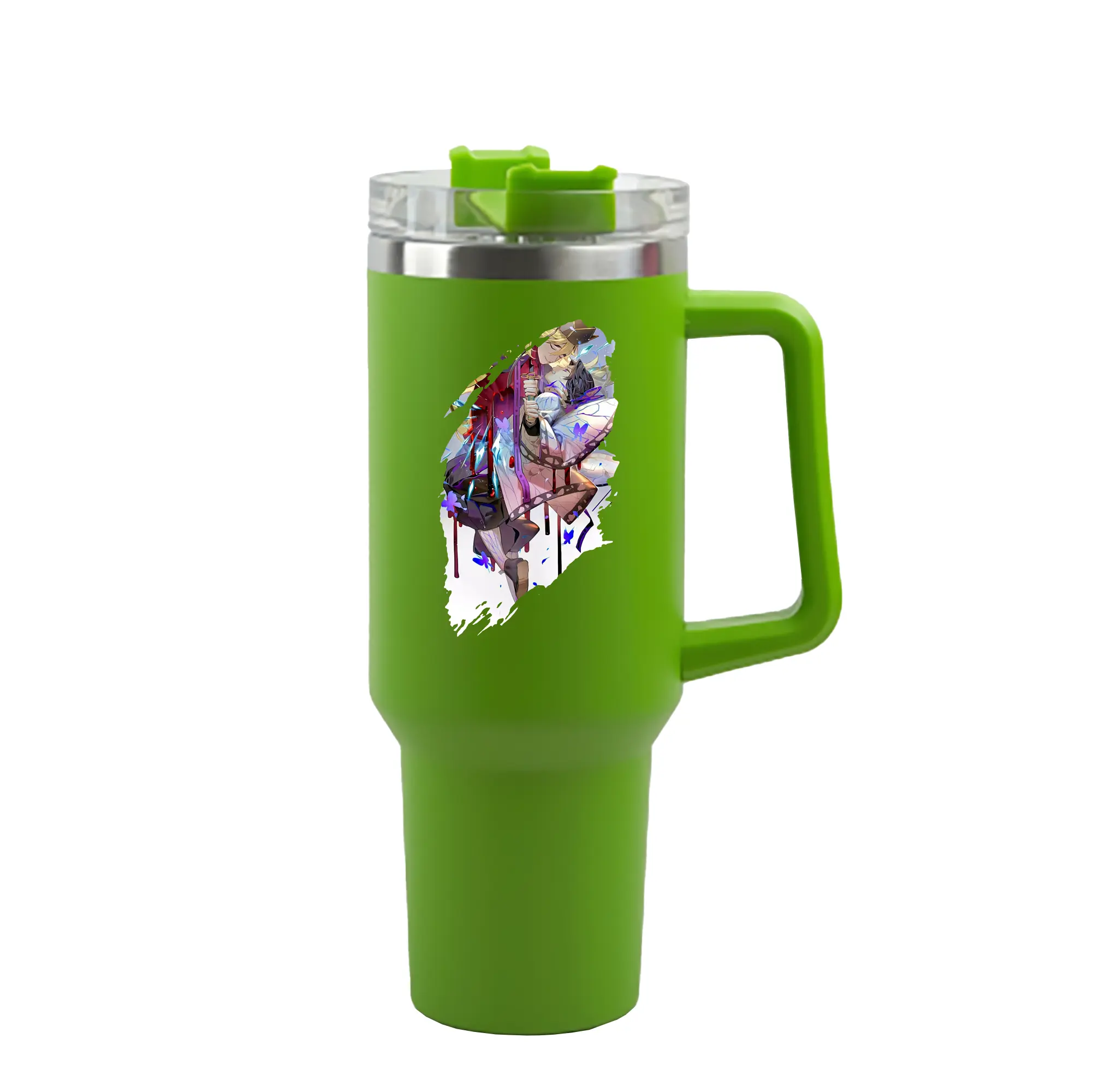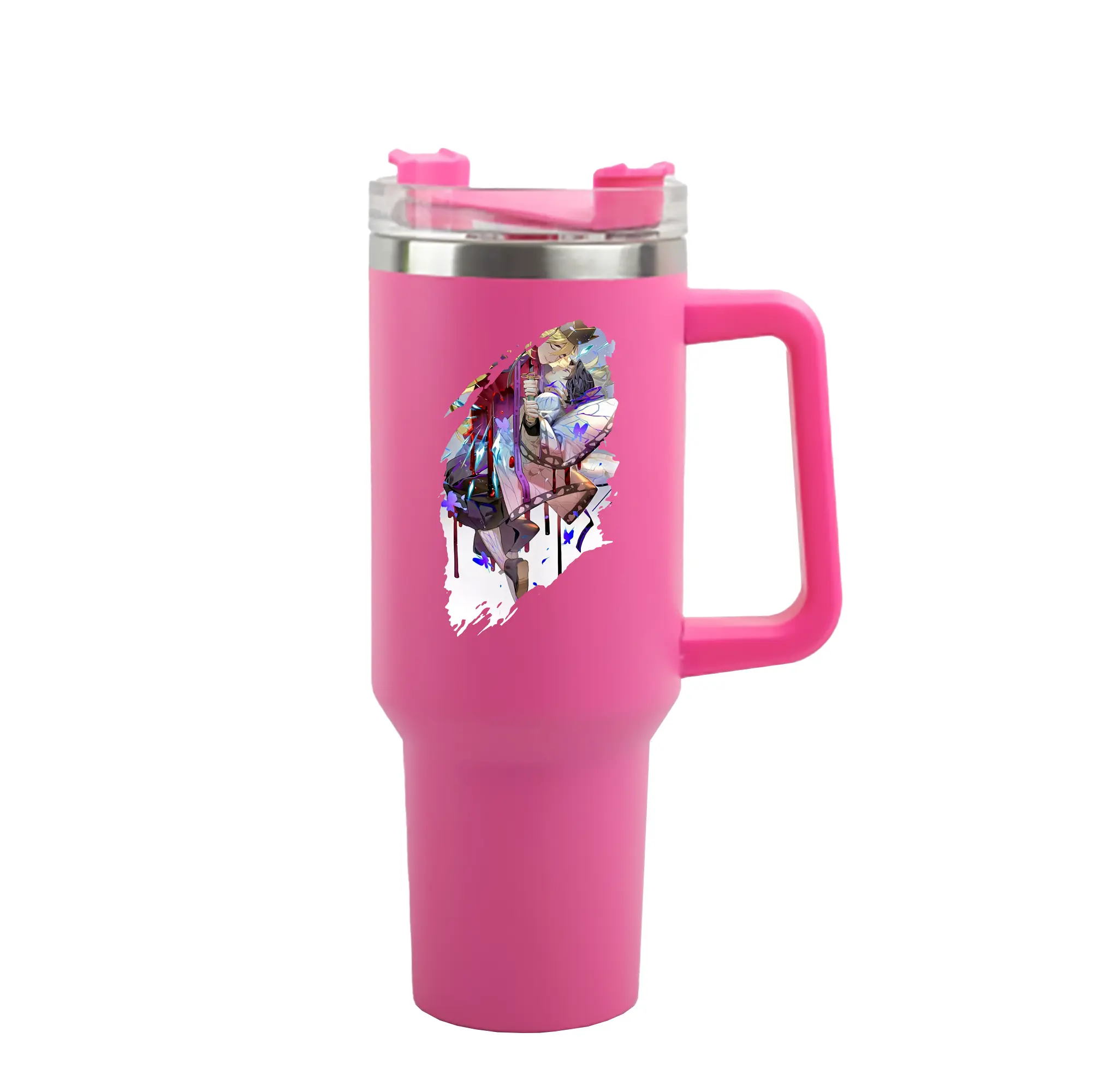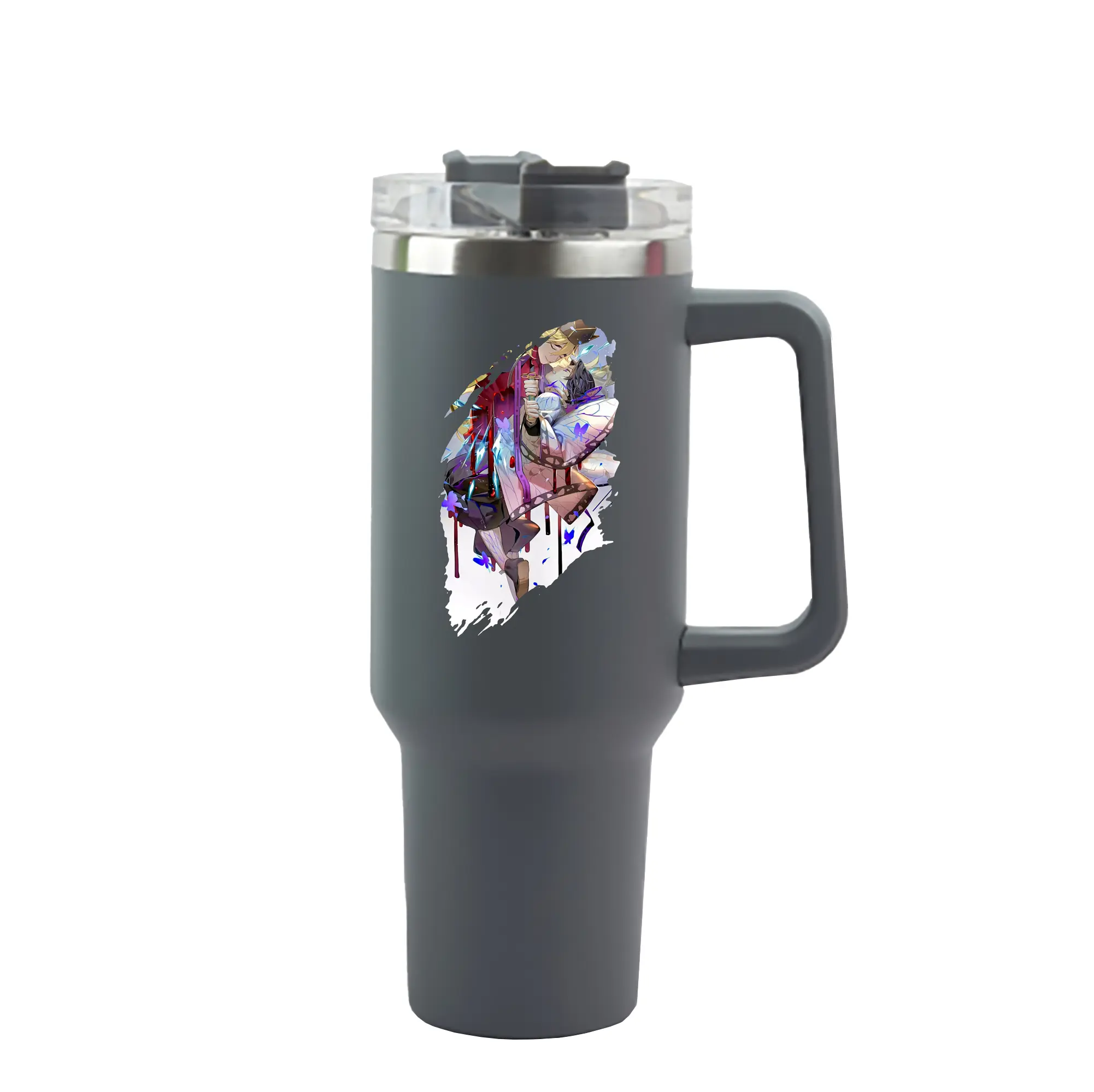1200mL(40オンス)の大容量ハンドル付きカータンブラー。キラキラと輝くクリスタルステッカーデザインが、毎日の使用に華やかさをプラスします。食品グレード304ステンレスの内側と頑丈な201ステンレスの外側を採用し、耐久性・耐腐食性・安全性を兼ね備えています。