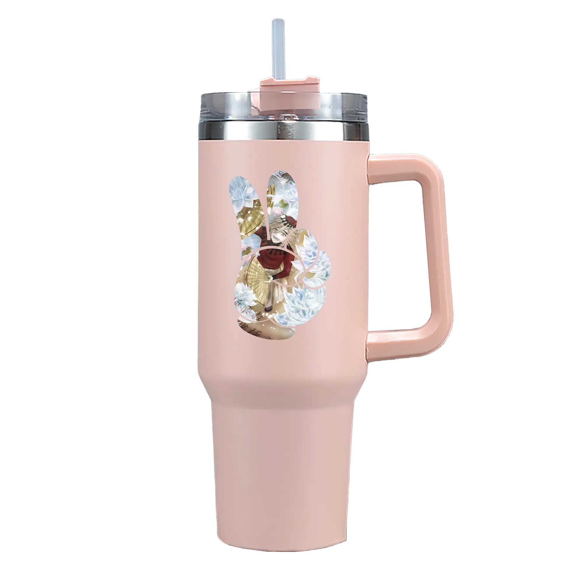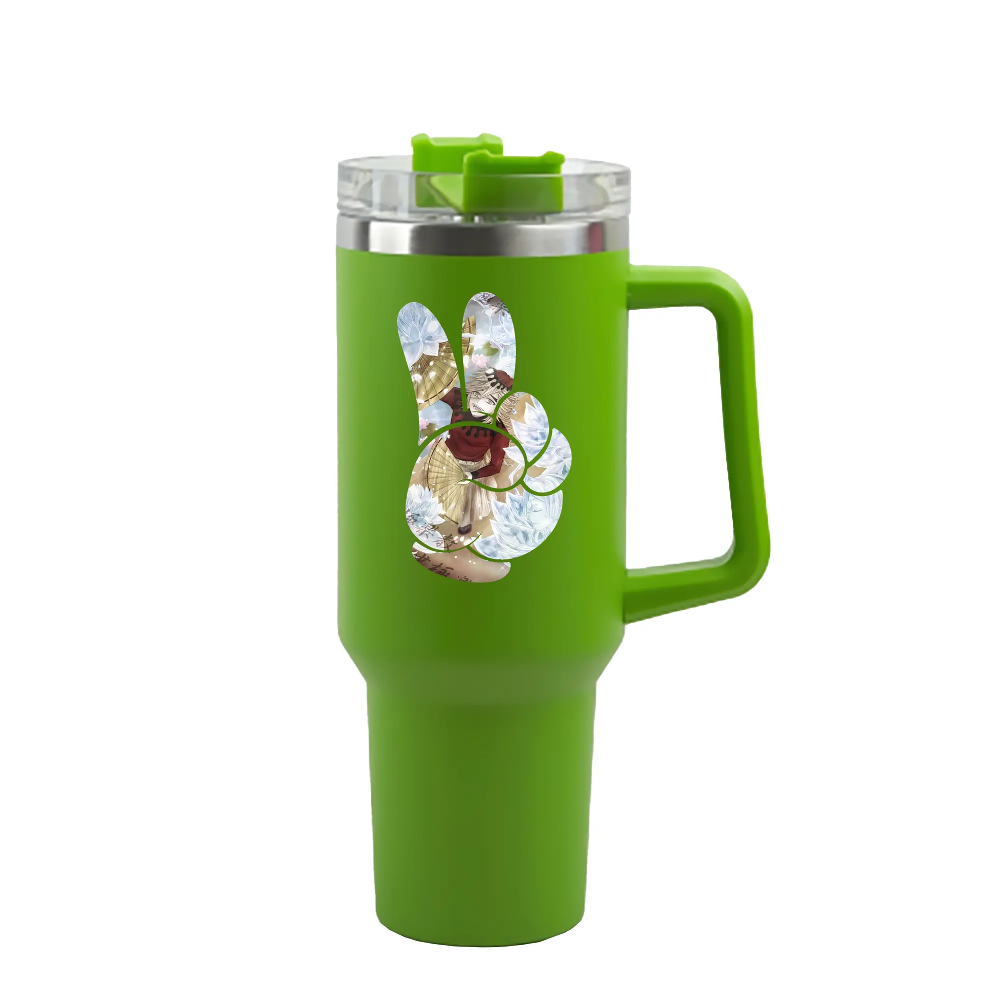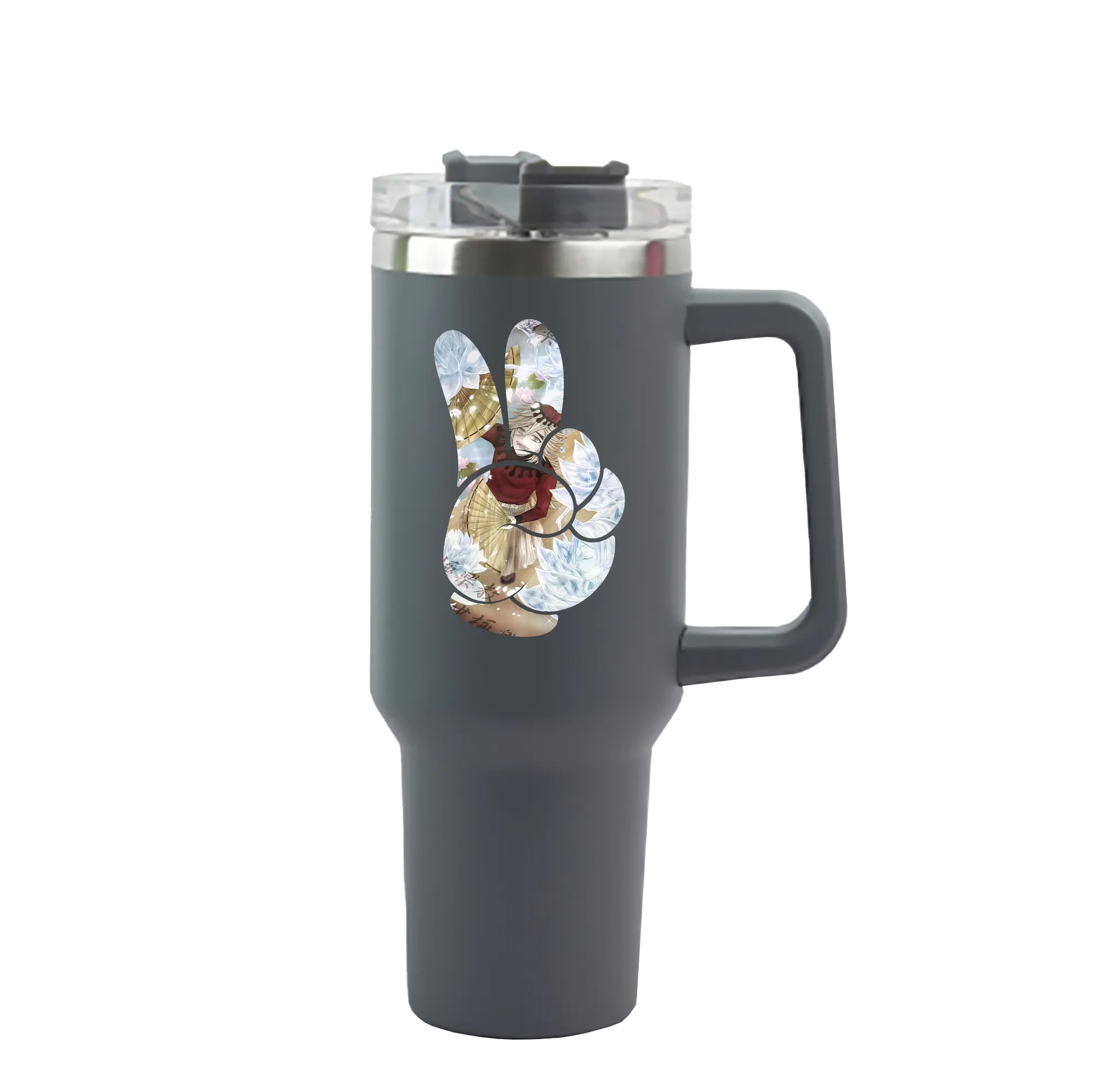 1200mL(40オンス)の大容量ハンドル付きカータンブラー。キラキラと輝くクリスタルステッカーデザインが、毎日の使用に華やかさをプラスします。食品グレード304ステンレスの内側と頑丈な201ステンレスの外側を採用し、耐久性・耐腐食性・安全性を兼ね備えています。