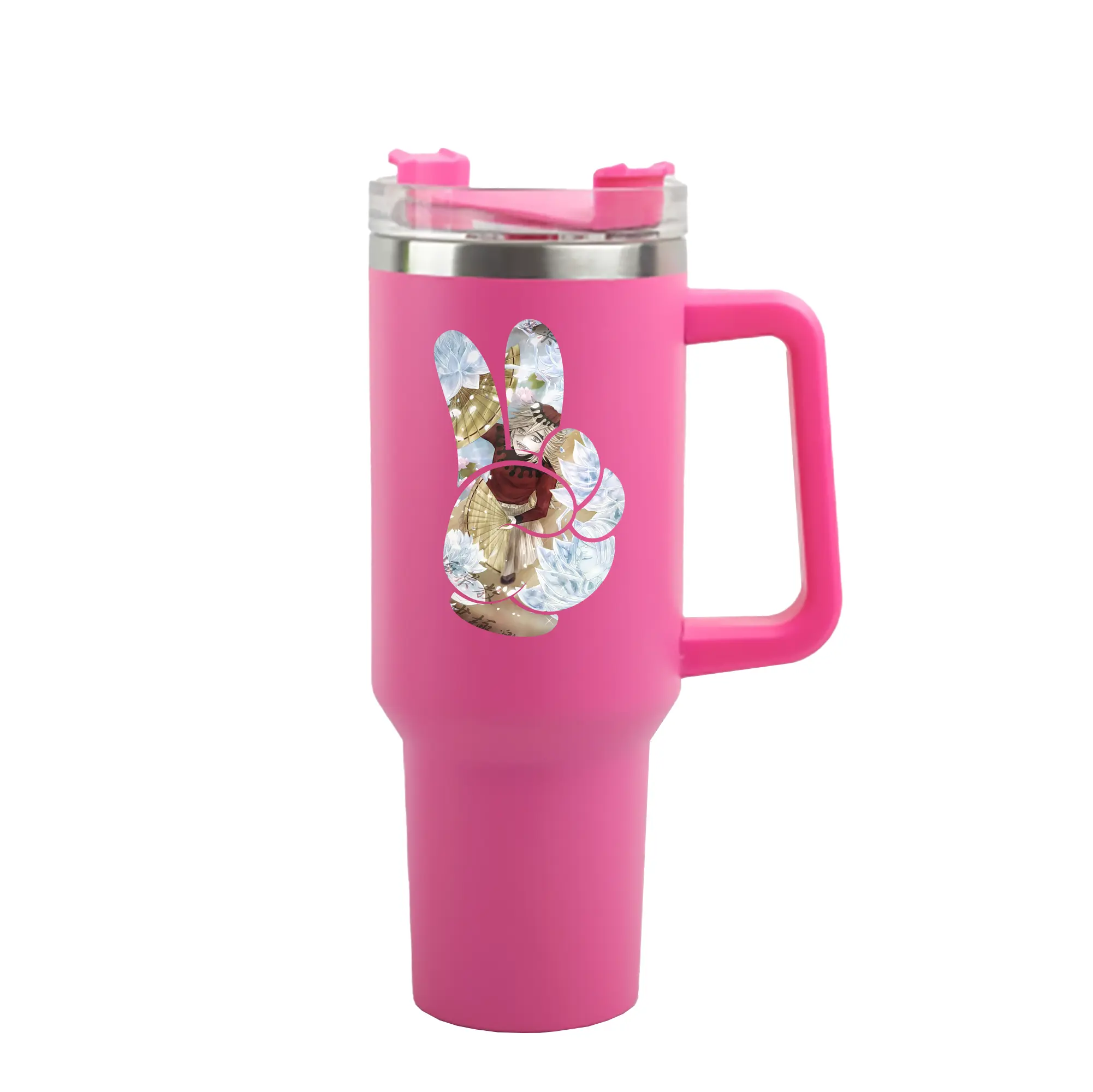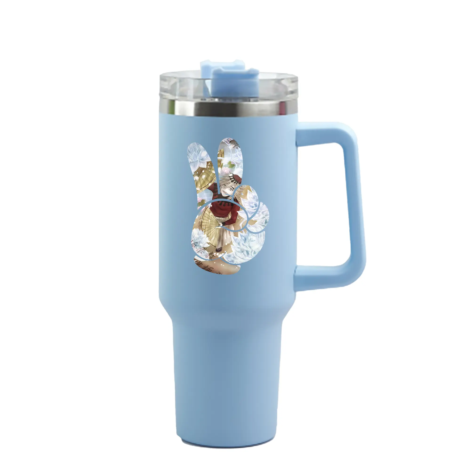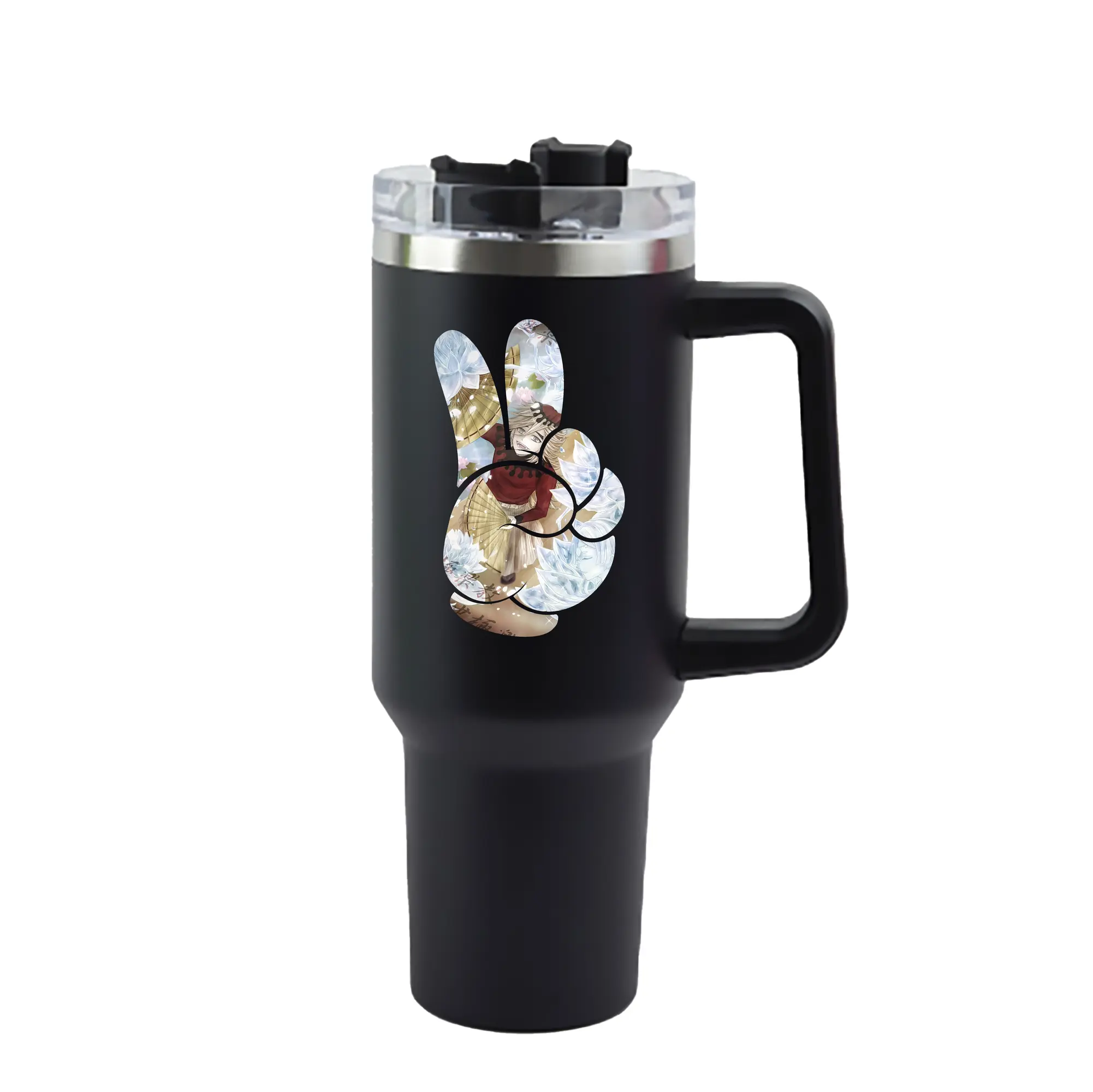 1200mL(40オンス)の大容量ハンドル付きカータンブラー。キラキラと輝くクリスタルステッカーデザインが、毎日の使用に華やかさをプラスします。食品グレード304ステンレスの内側と頑丈な201ステンレスの外側を採用し、耐久性・耐腐食性・安全性を兼ね備えています。