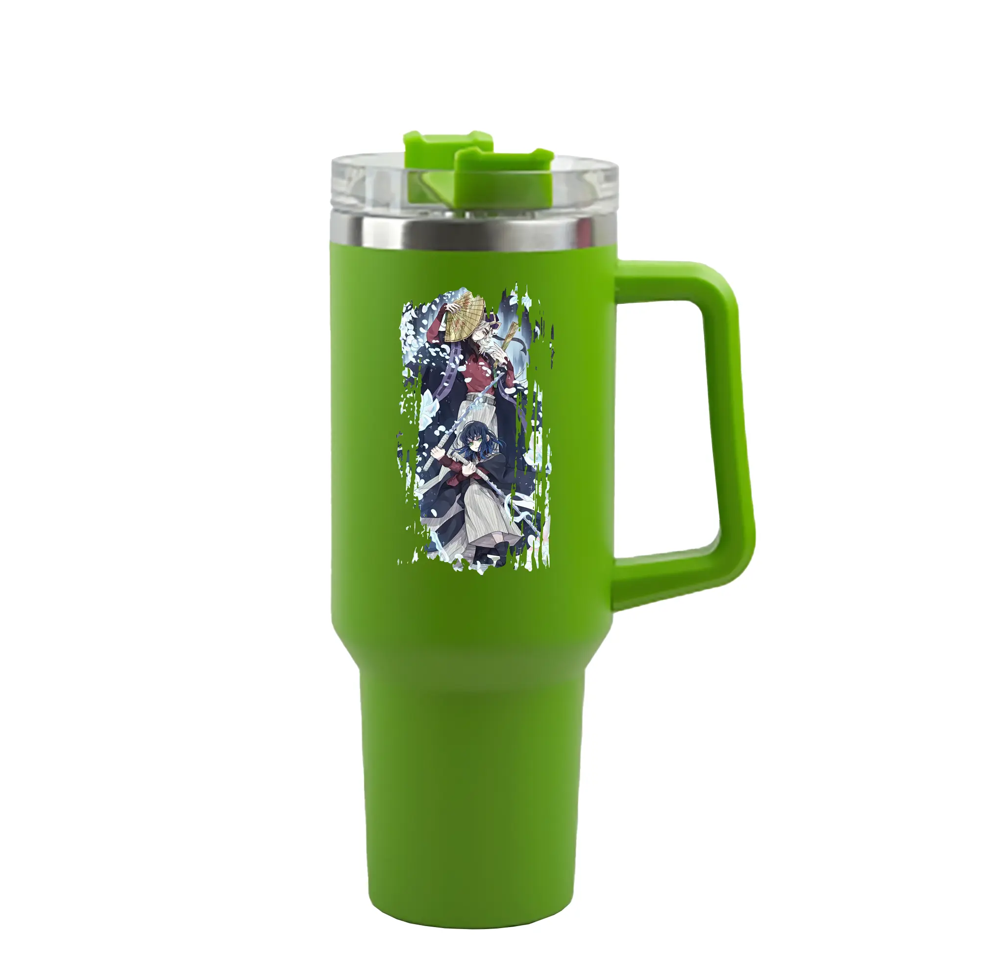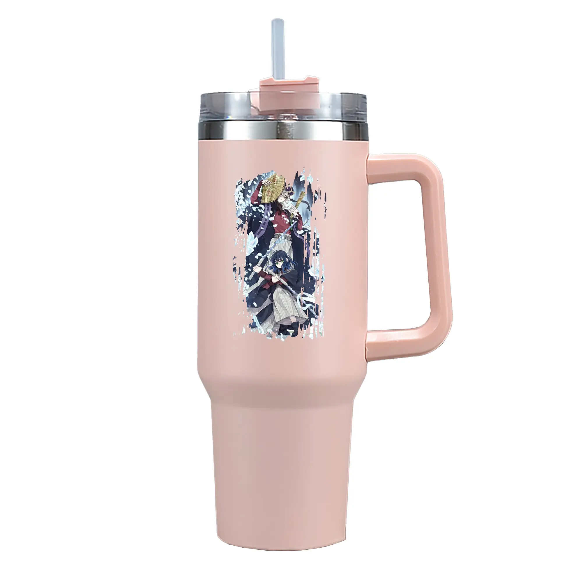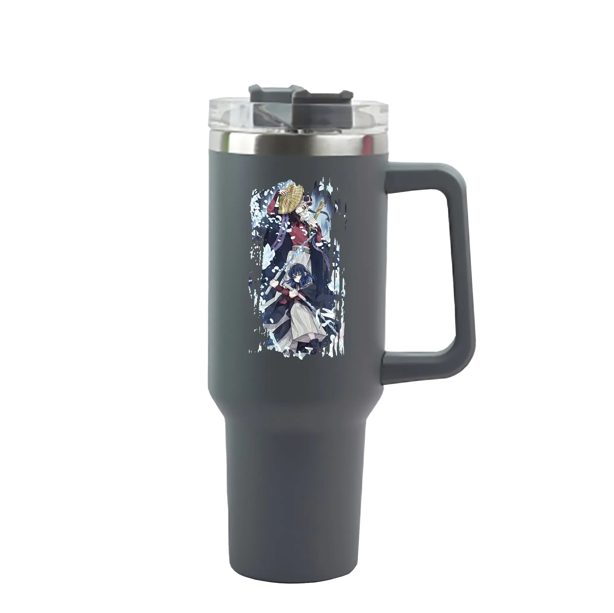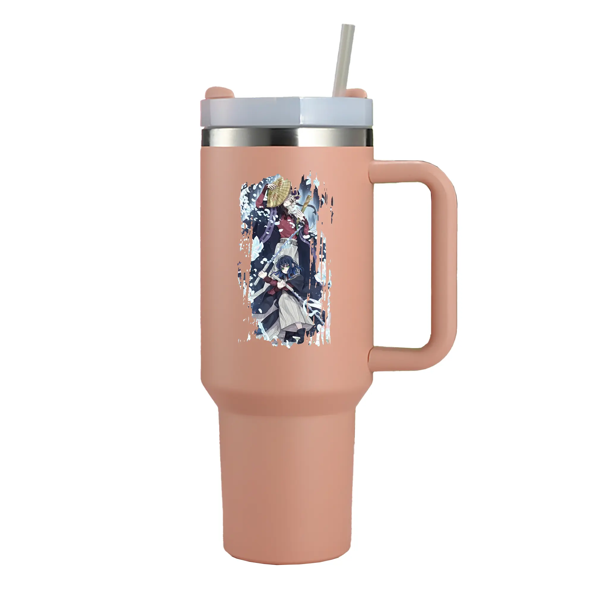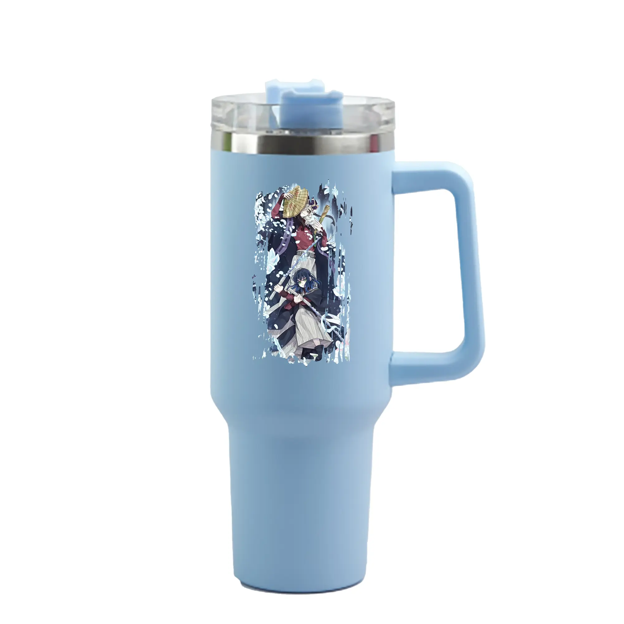 鬼滅の刃 グッズ,童磨 - 1200mL 車用タンブラー ・ クリスタルステッカー ・ 304ステンレス 内側 ・ 201ステンレス 外側 ・ 保温 保冷 ・ ハンドル&ストロー付き ・ 通勤 ドライブ アウトドア用