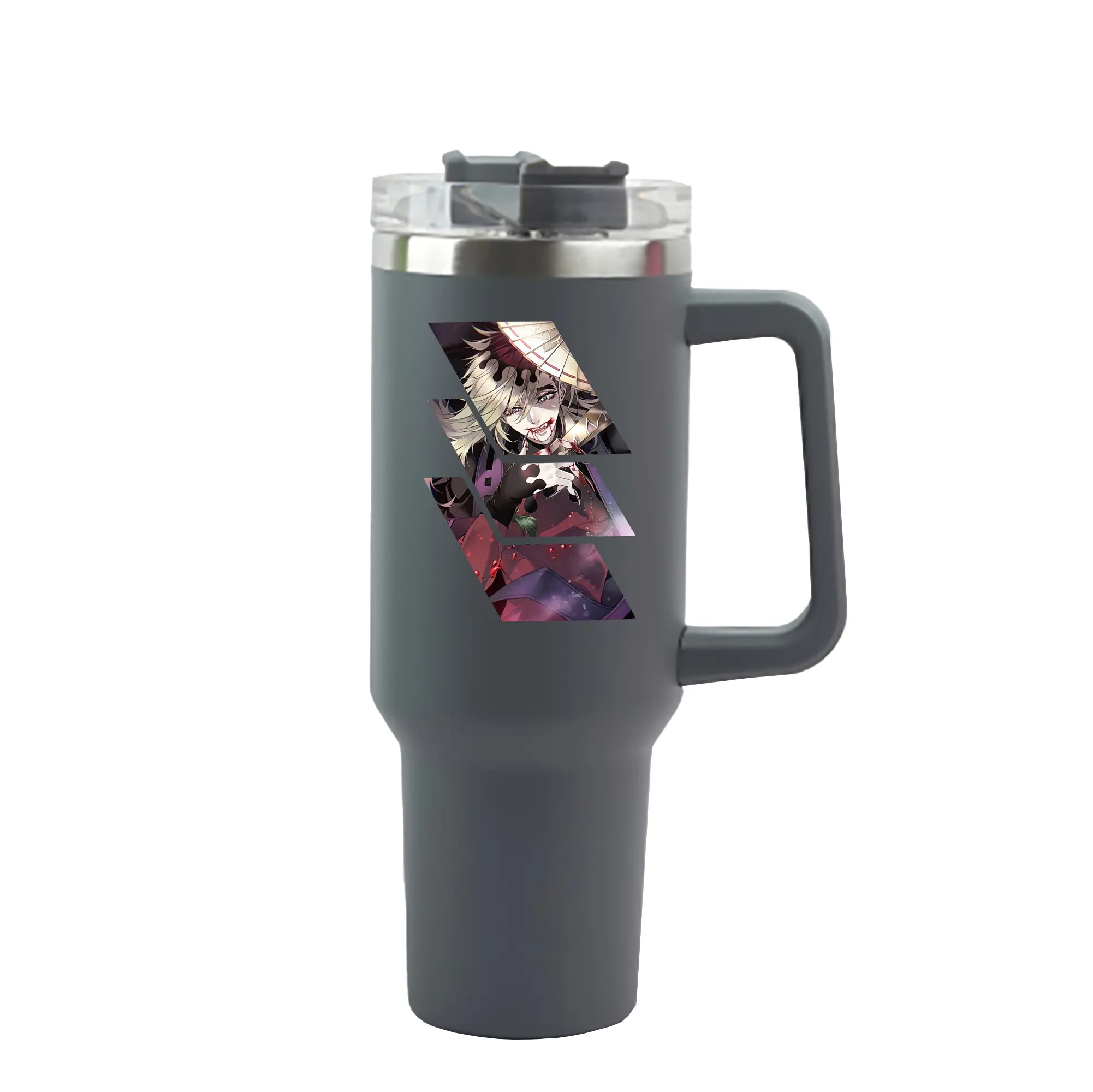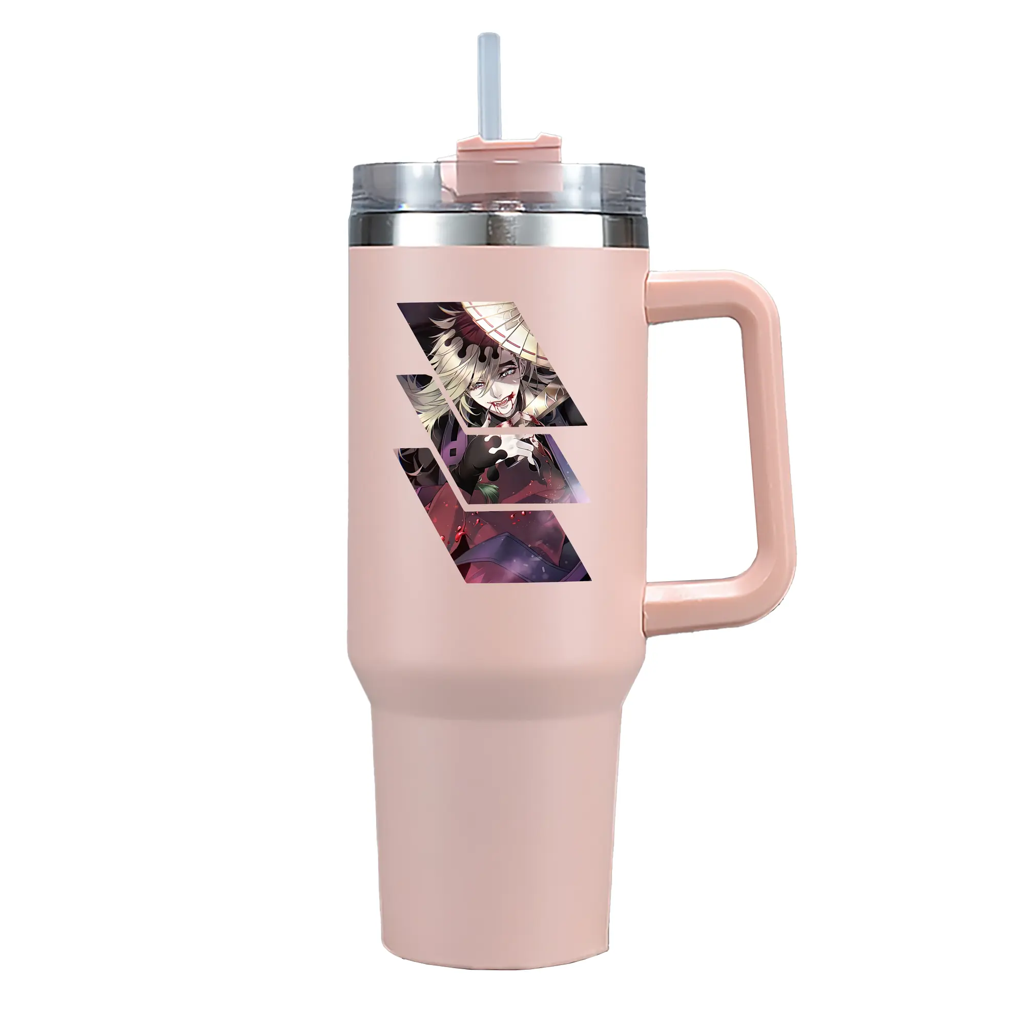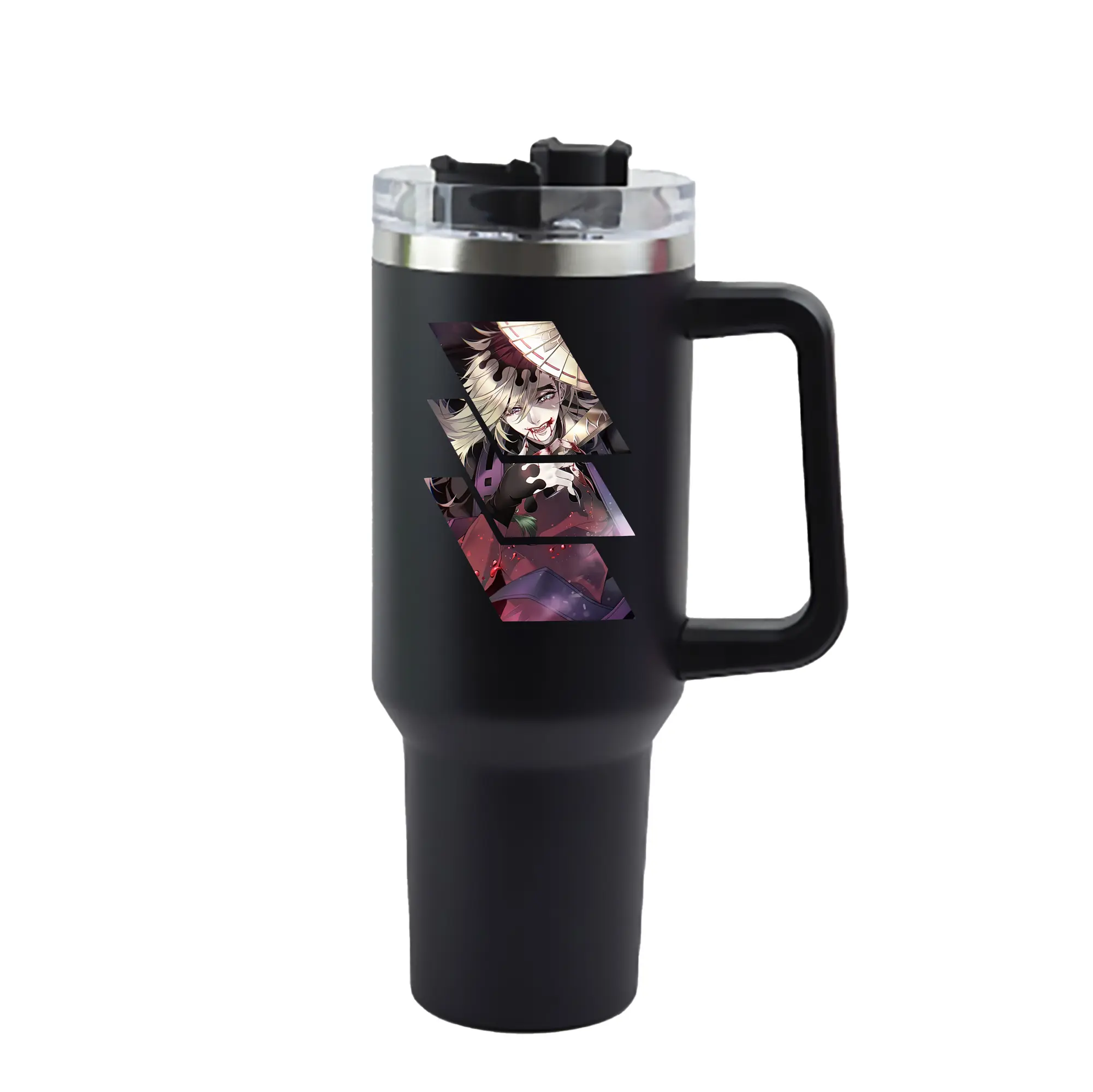 鬼滅の刃 グッズ,童磨 - 1200mL 車用タンブラー ・ クリスタルステッカー ・ 304ステンレス 内側 ・ 201ステンレス 外側 ・ 保温 保冷 ・ ハンドル&ストロー付き ・ 通勤 ドライブ アウトドア用