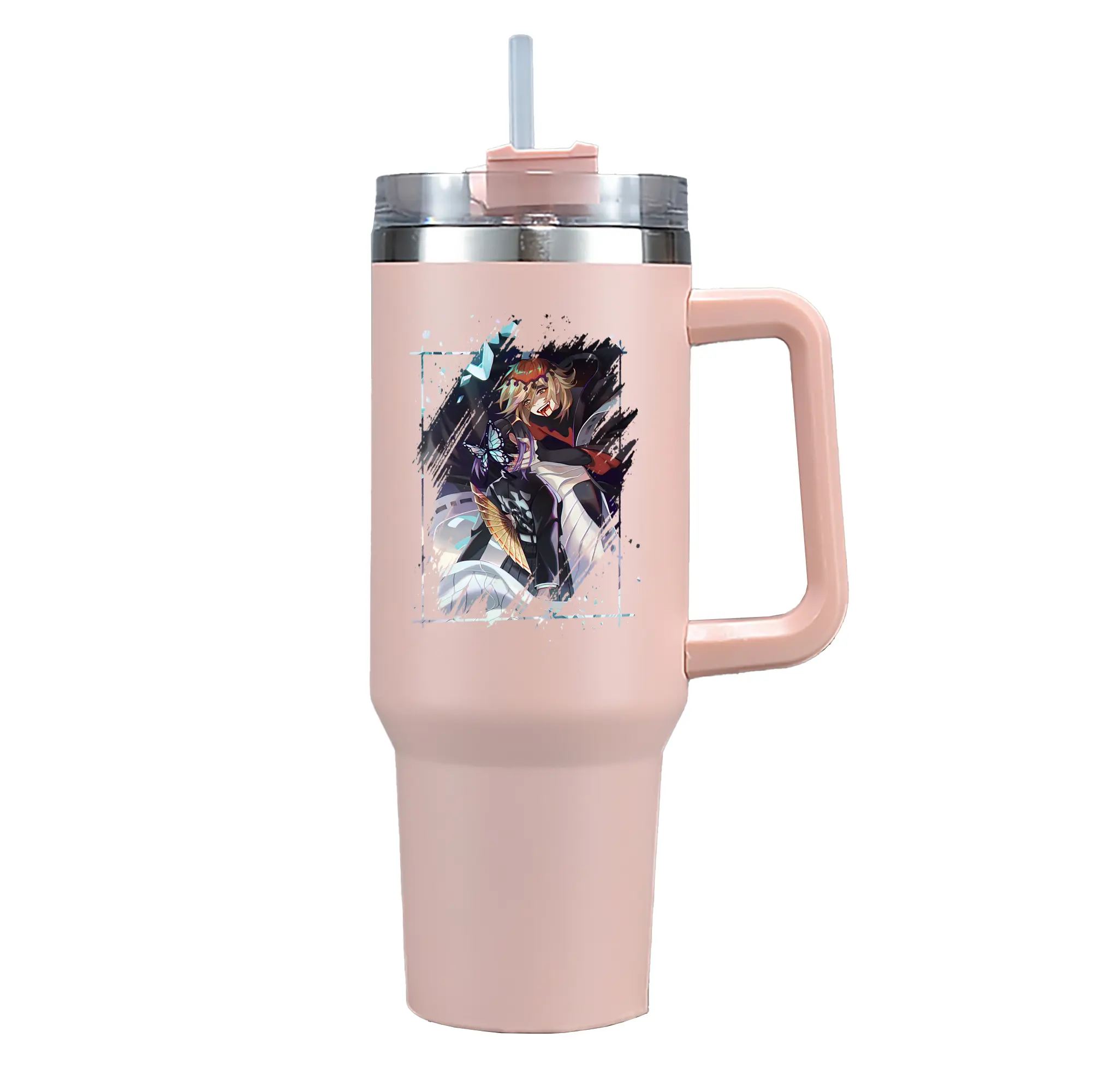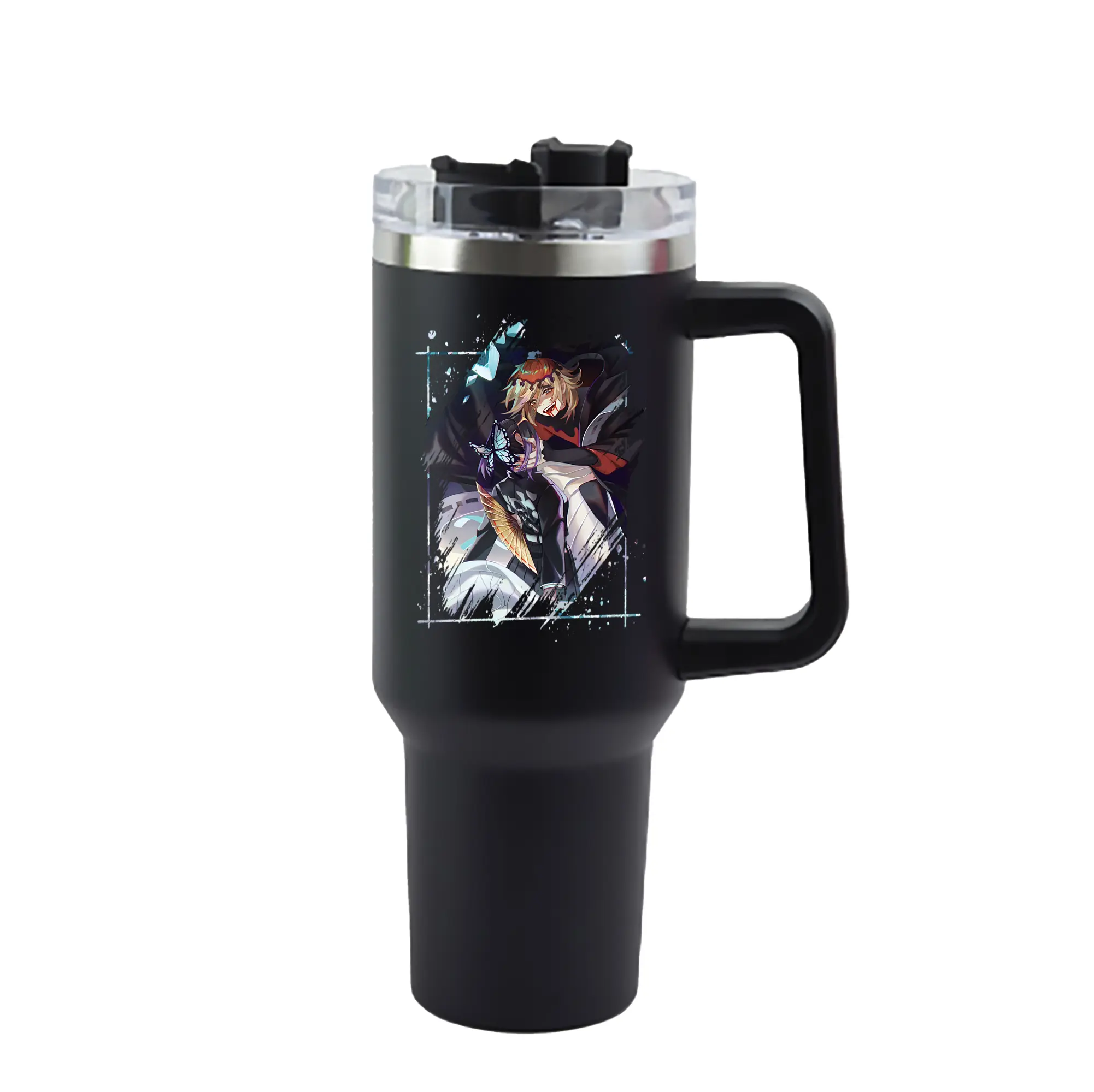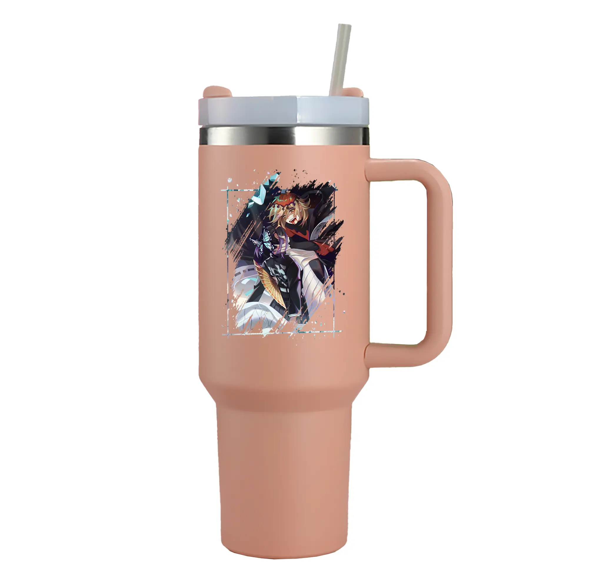鬼滅の刃 グッズ,童磨 - 1200mL 車用タンブラー ・ クリスタルステッカー ・ 304ステンレス 内側 ・ 201ステンレス 外側 ・ 保温 保冷 ・ ハンドル&ストロー付き ・ 通勤 ドライブ アウトドア用