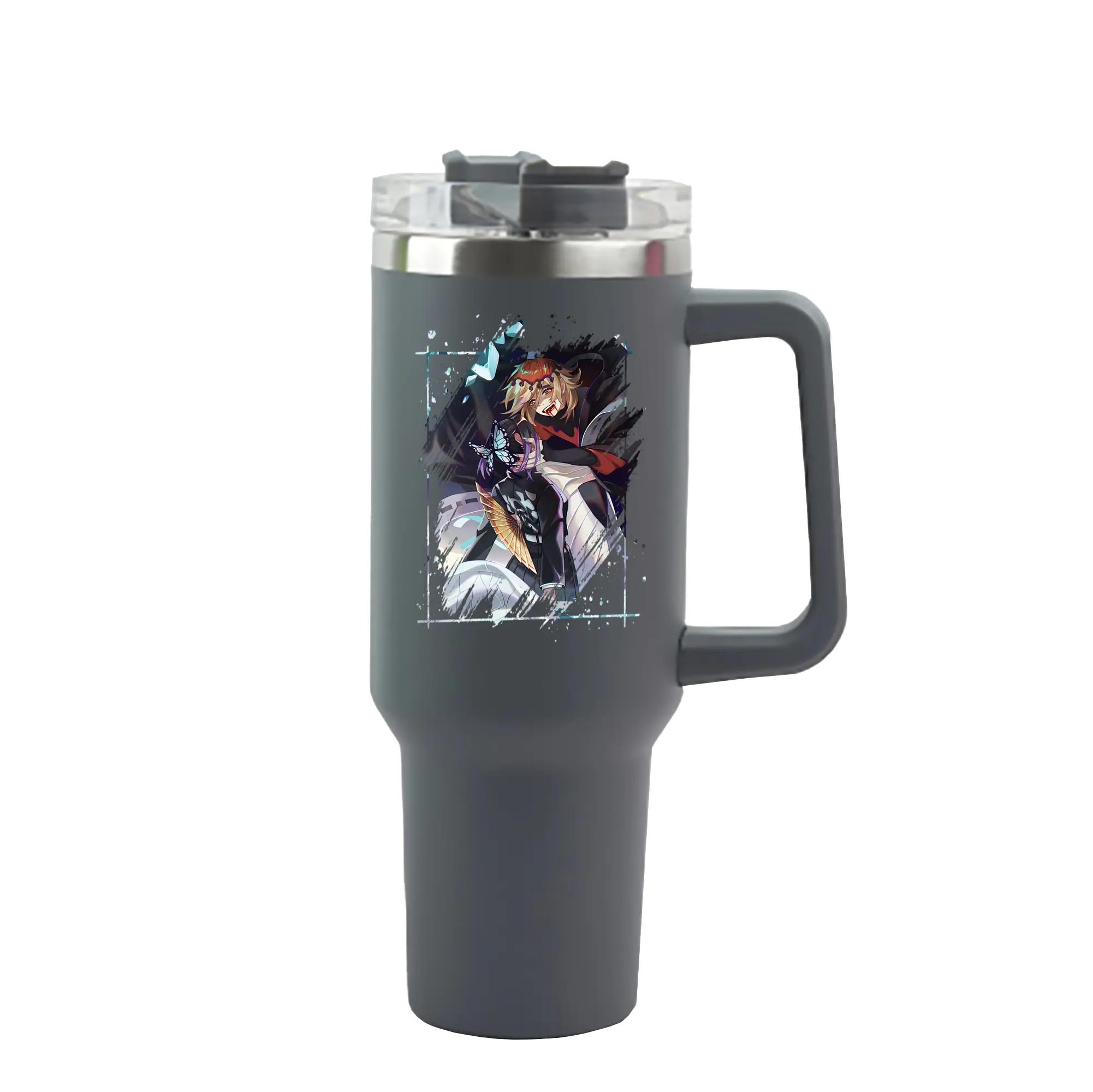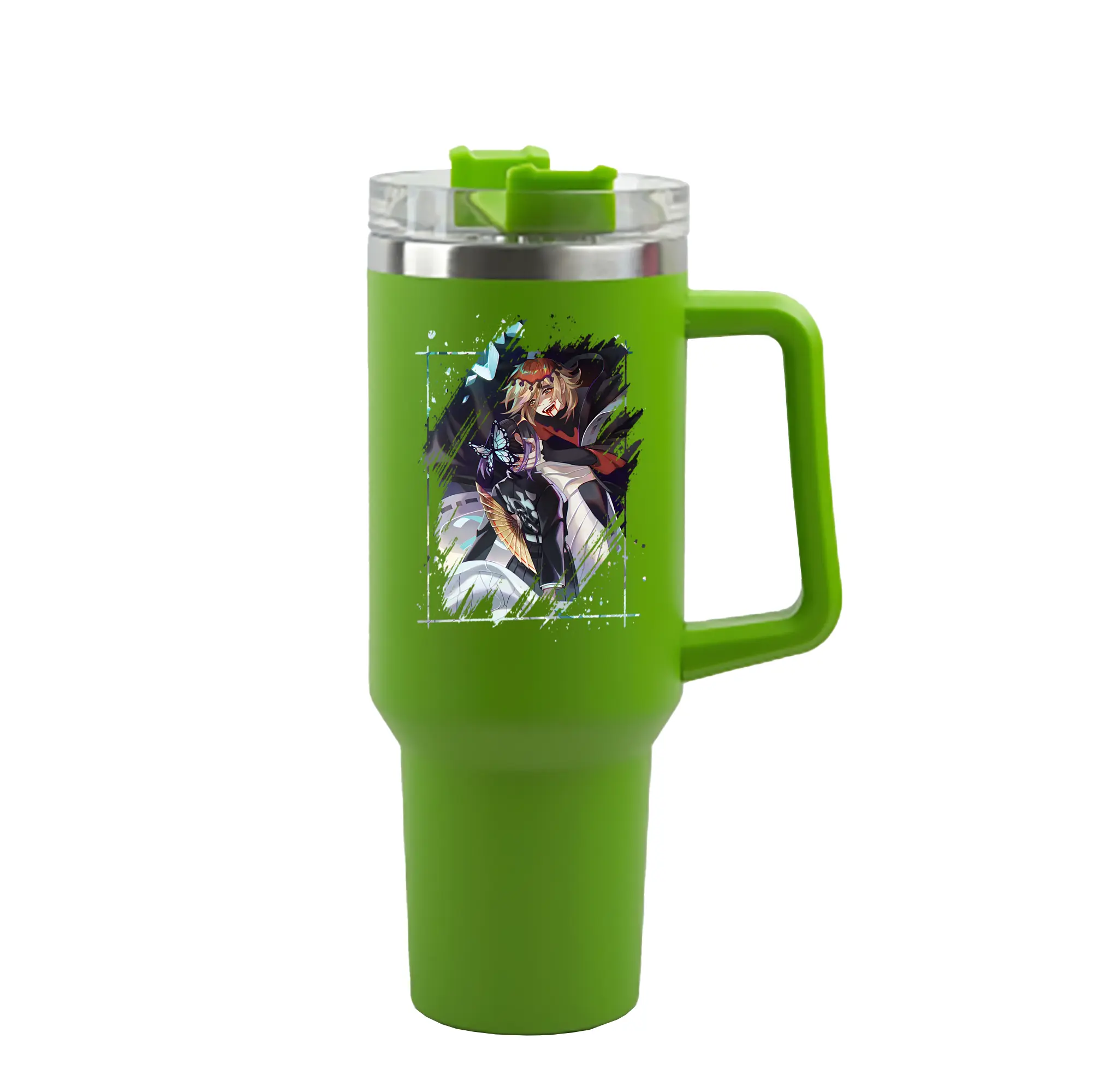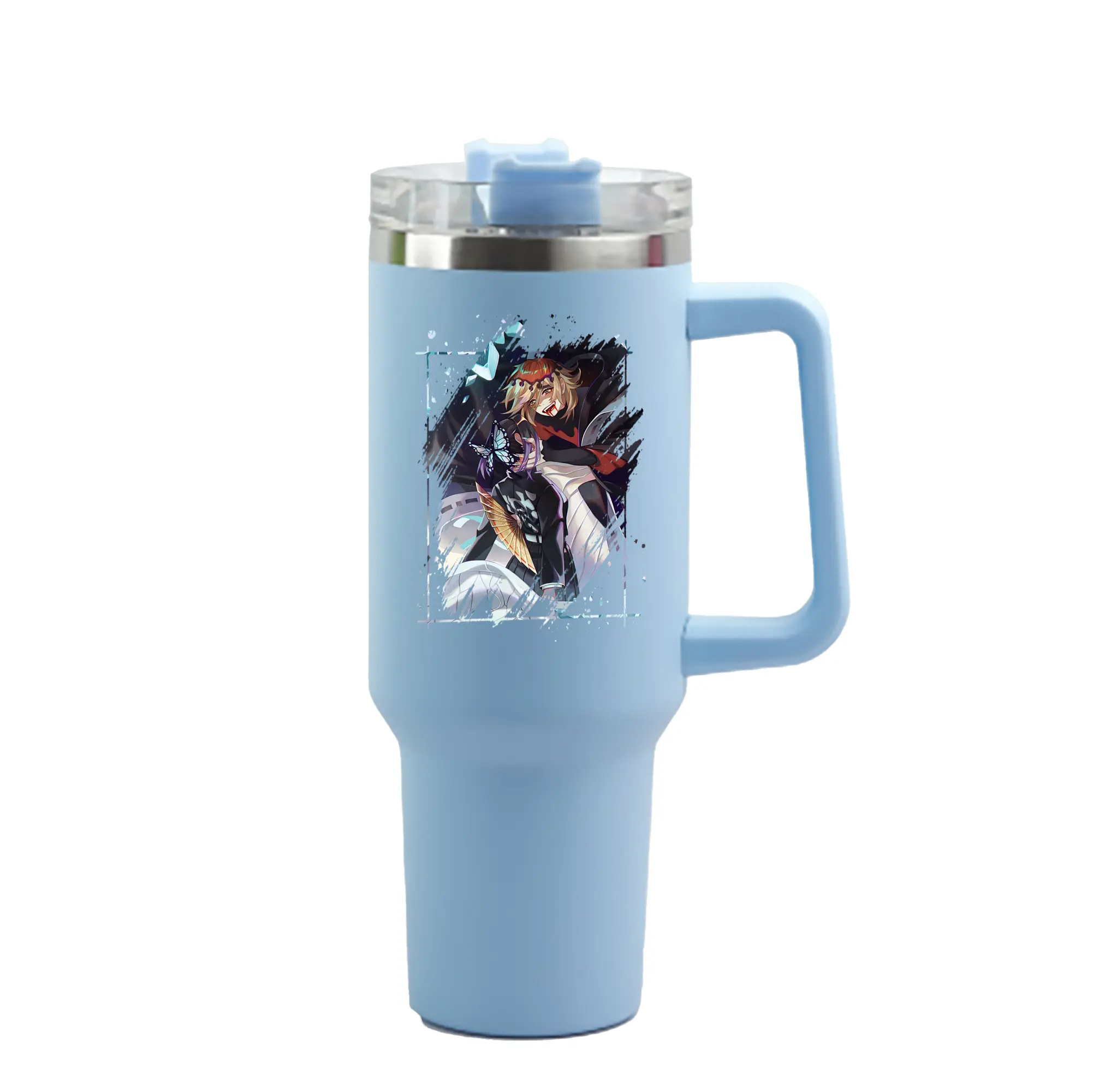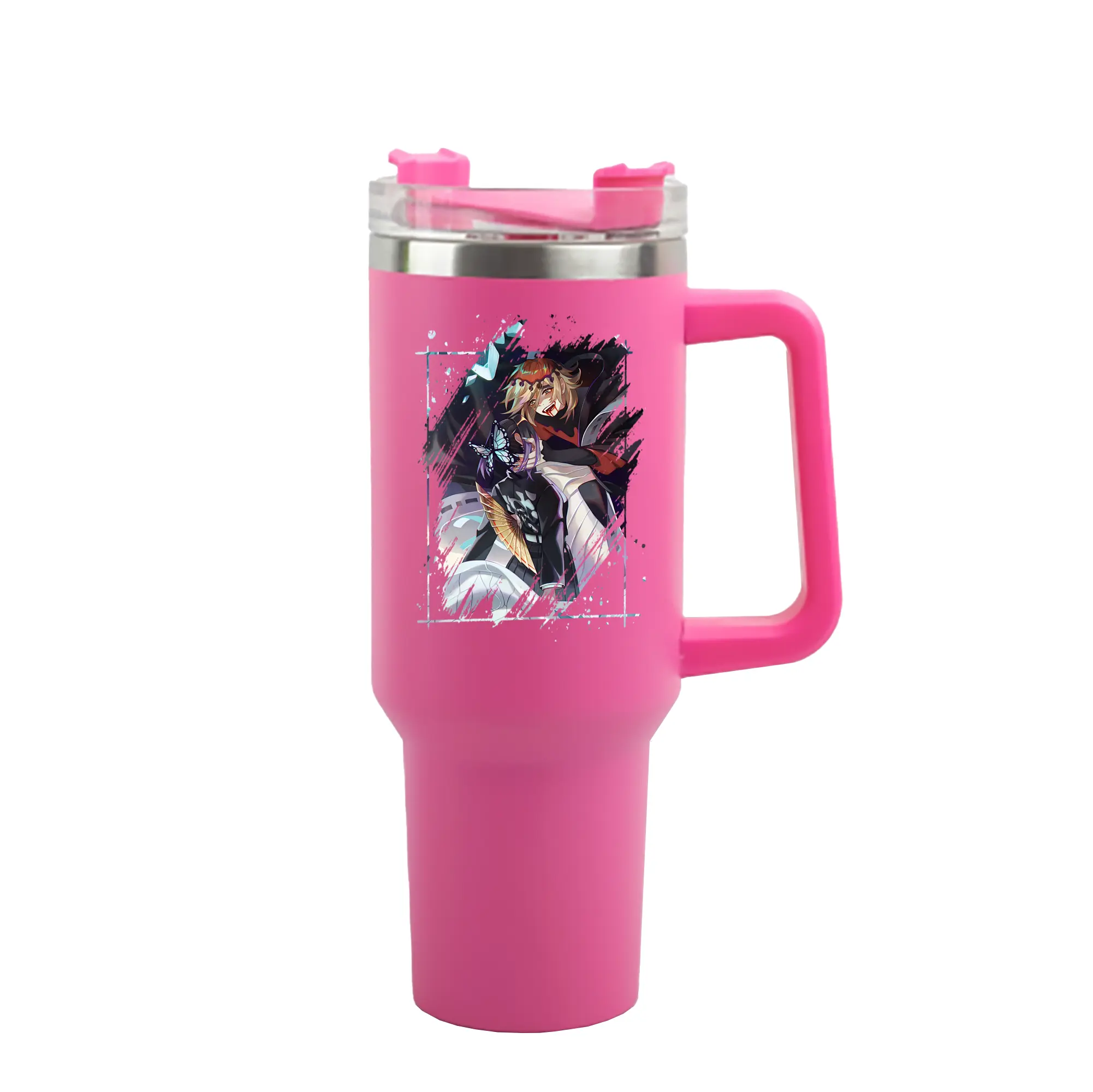 鬼滅の刃 グッズ,童磨 - 1200mL 車用タンブラー ・ クリスタルステッカー ・ 304ステンレス 内側 ・ 201ステンレス 外側 ・ 保温 保冷 ・ ハンドル&ストロー付き ・ 通勤 ドライブ アウトドア用