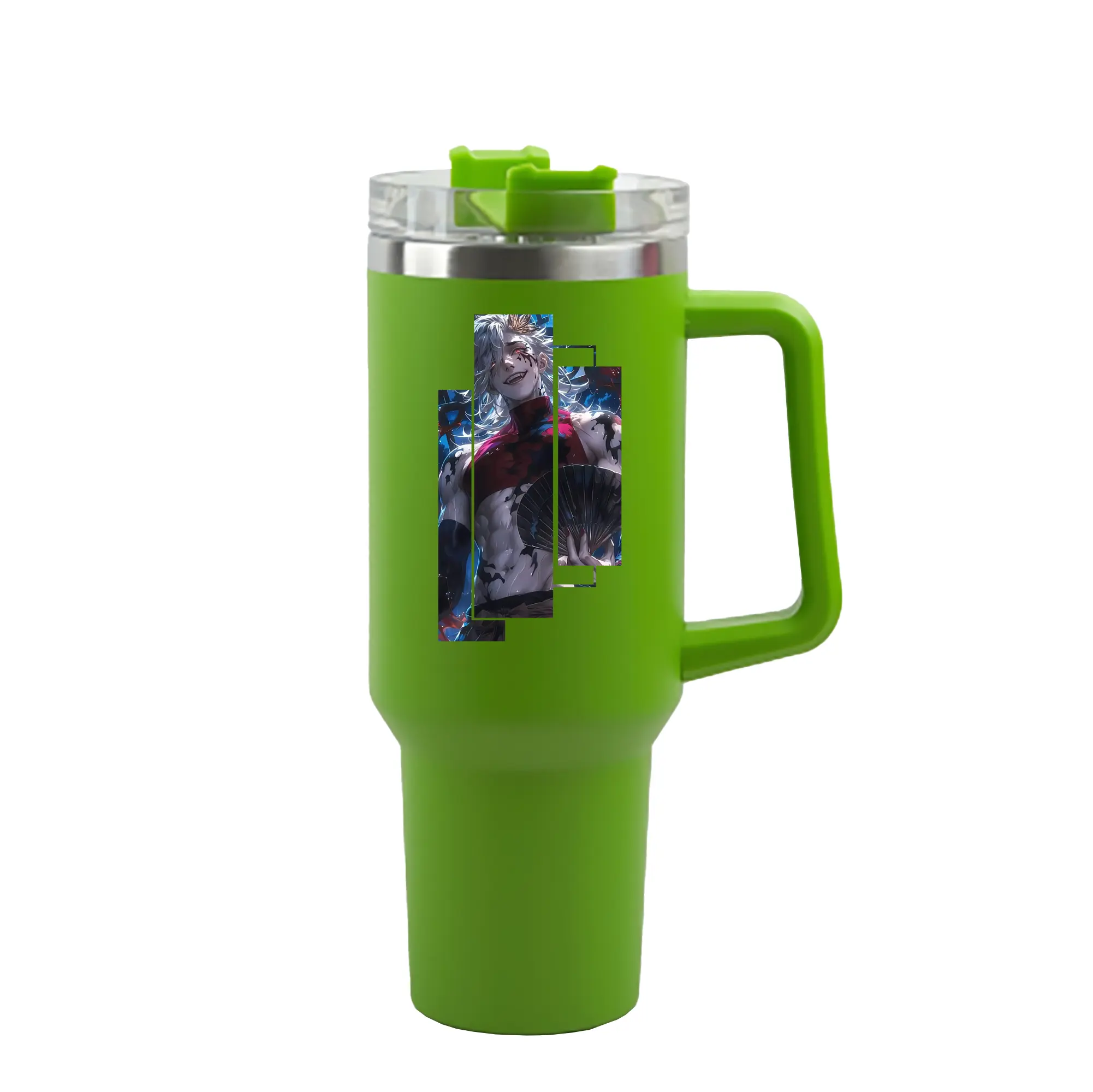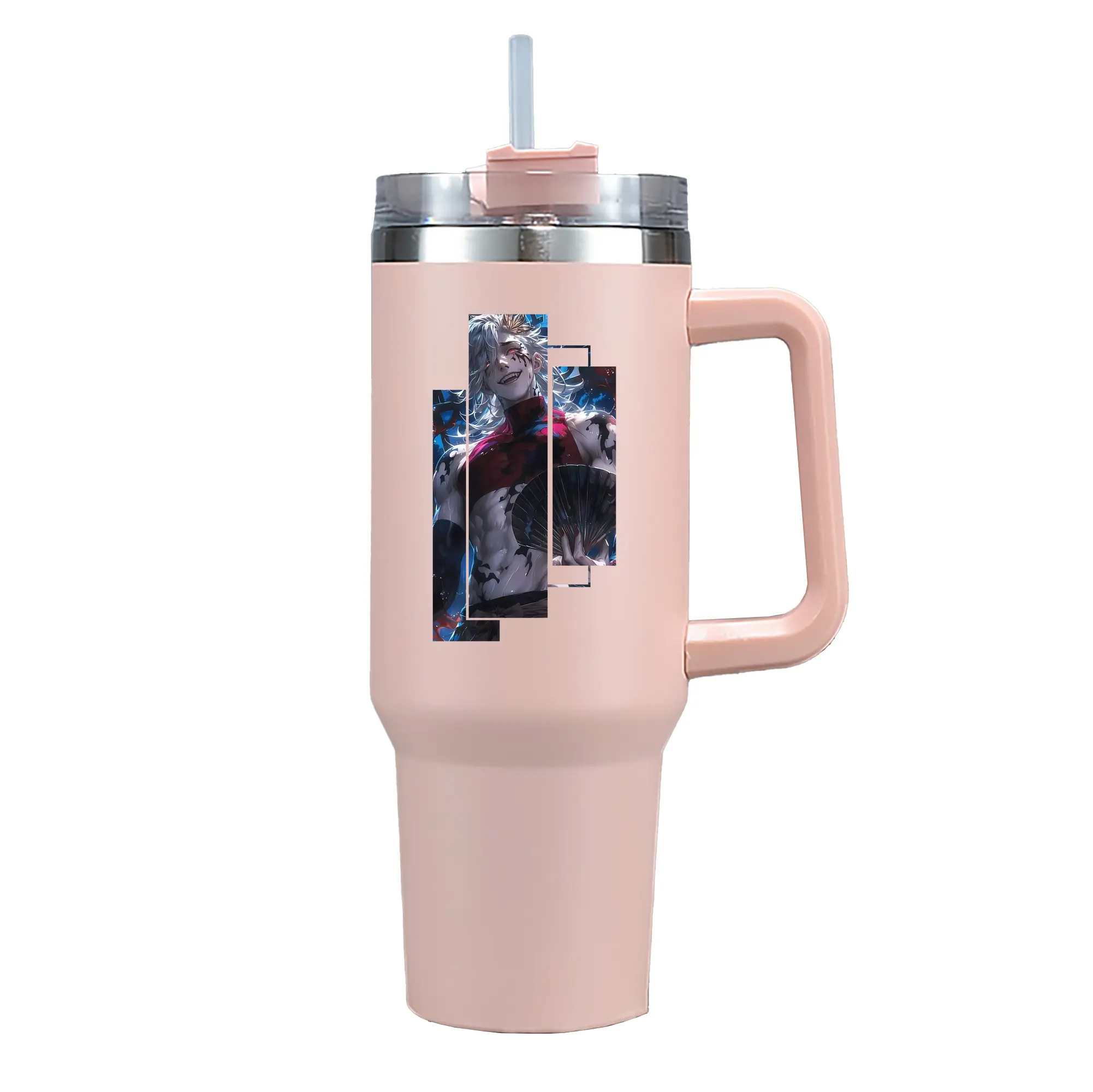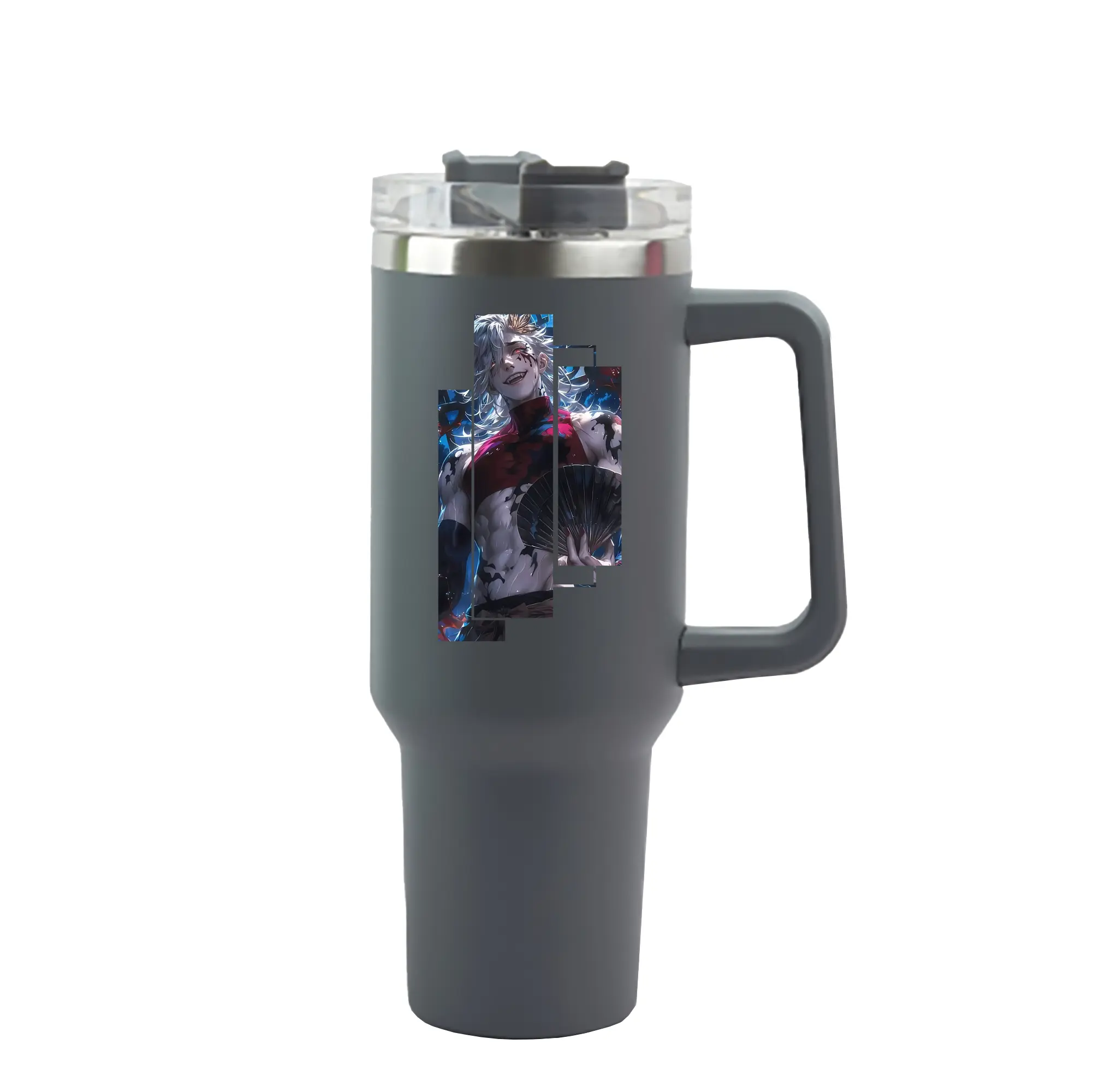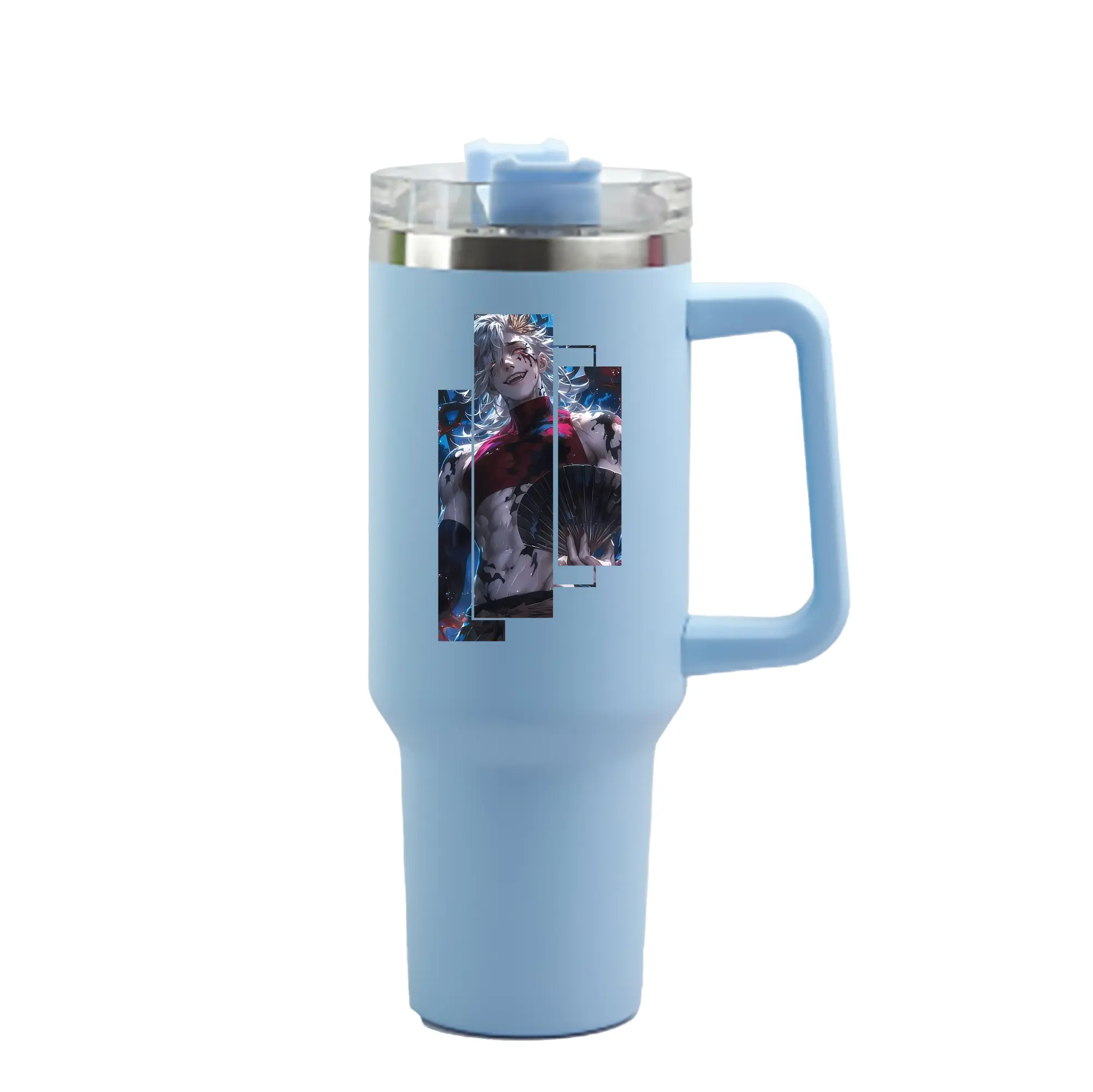 鬼滅の刃 グッズ,童磨 - 1200mL 車用タンブラー ・ クリスタルステッカー ・ 304ステンレス 内側 ・ 201ステンレス 外側 ・ 保温 保冷 ・ ハンドル&ストロー付き ・ 通勤 ドライブ アウトドア用