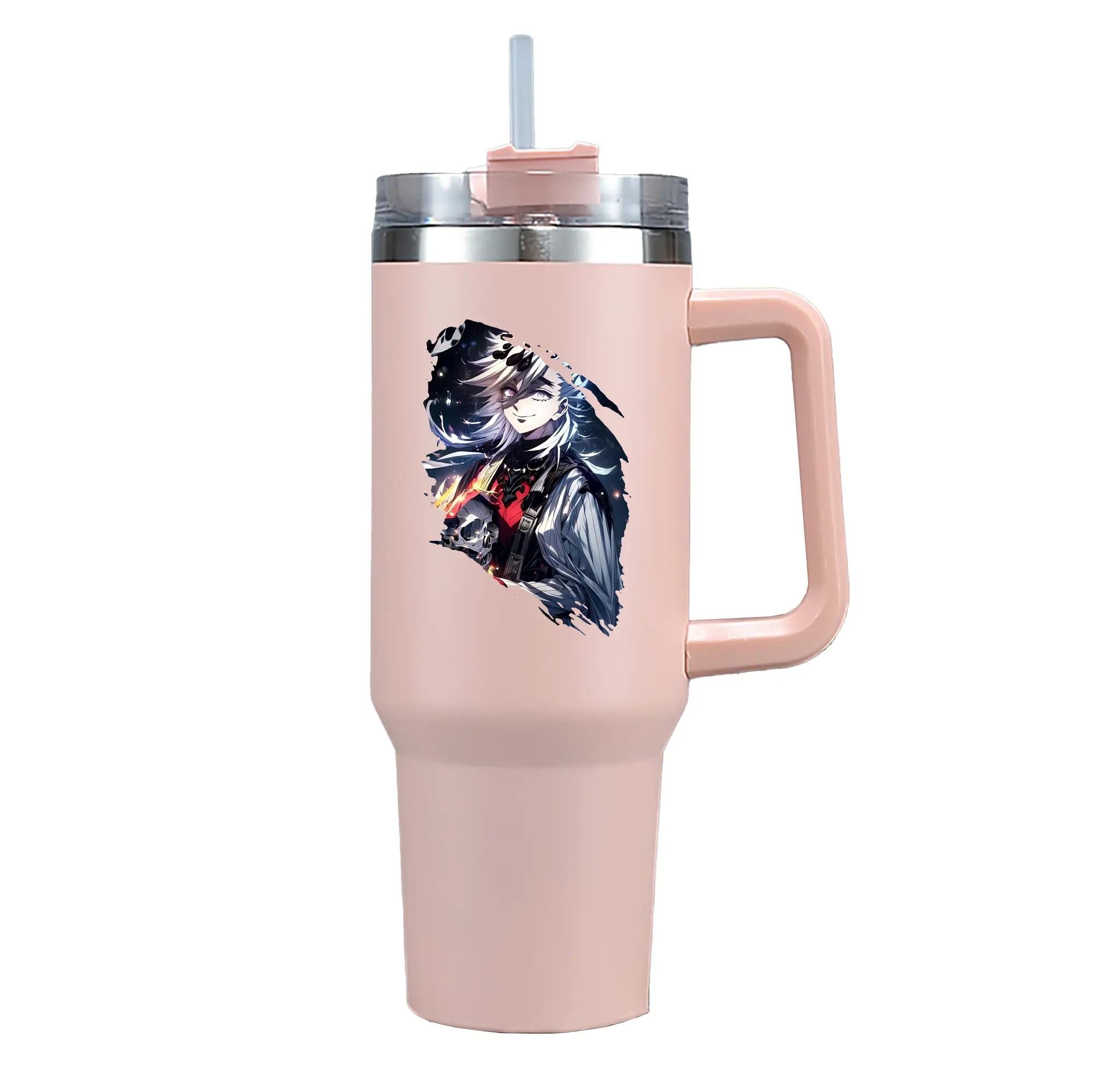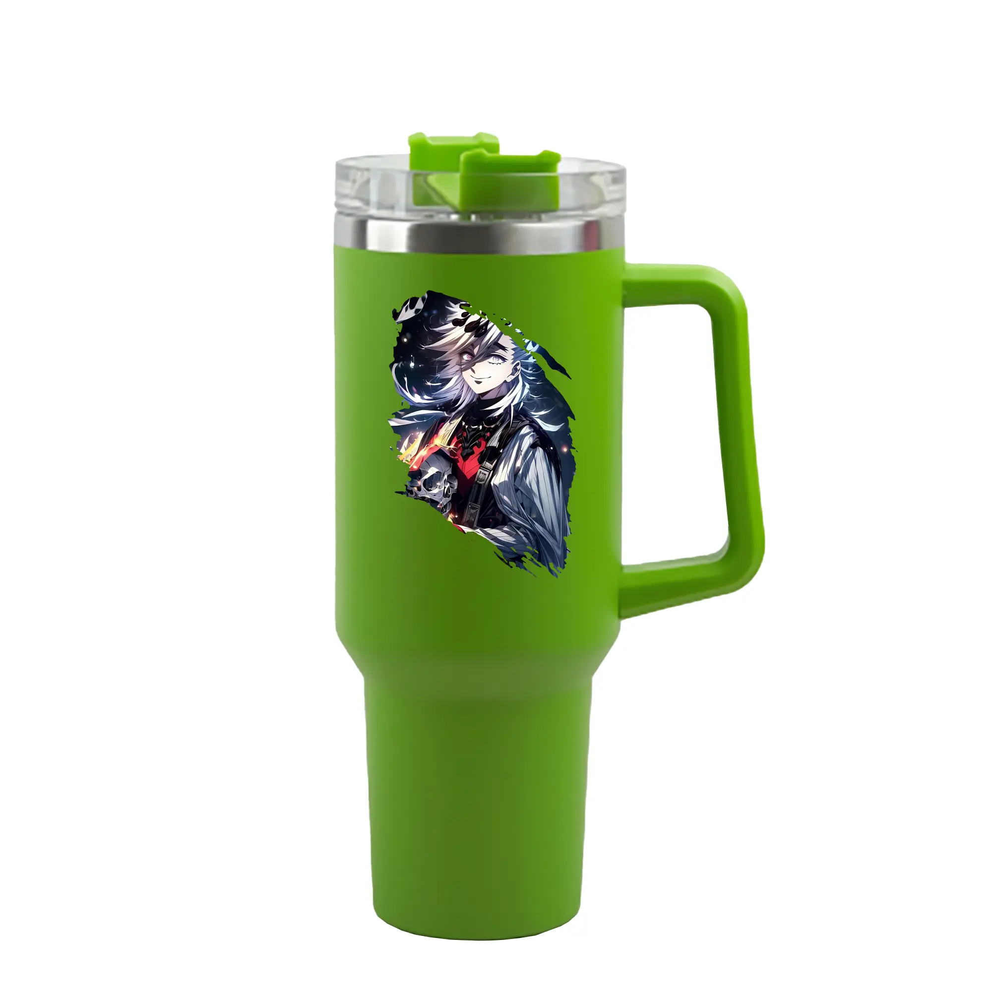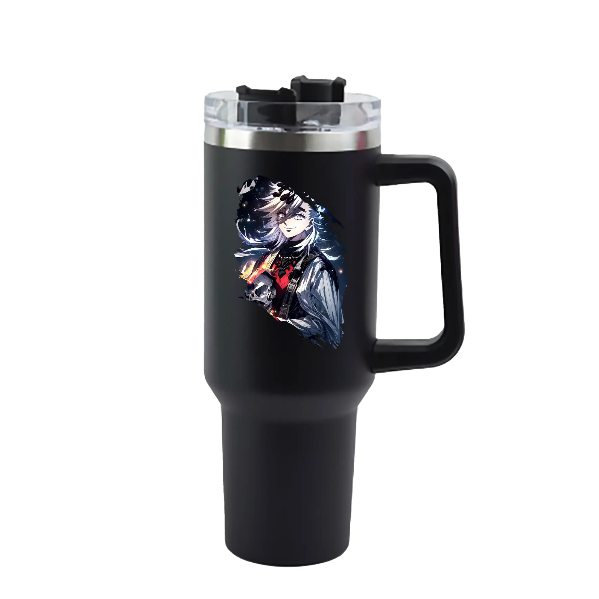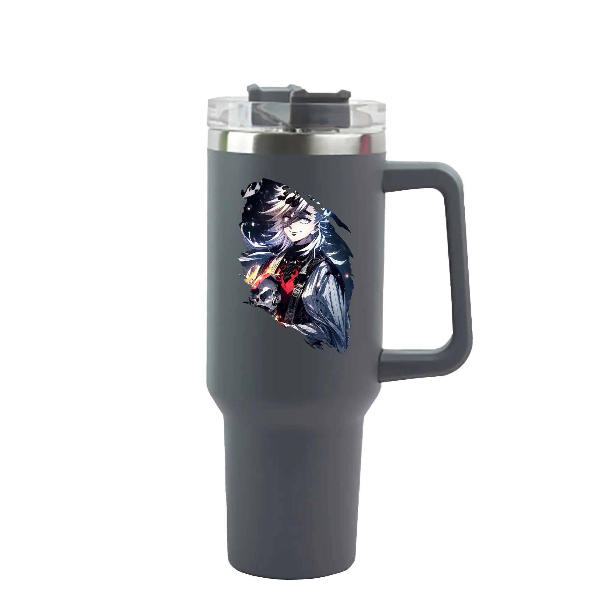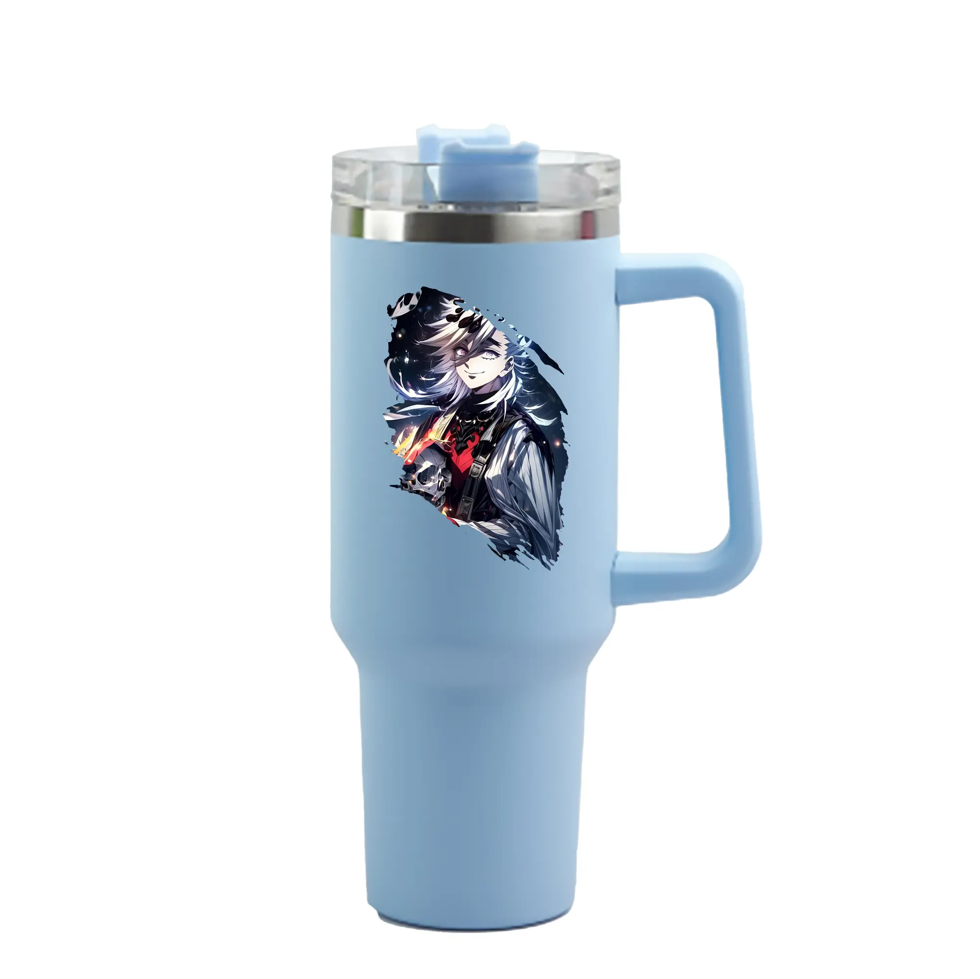 鬼滅の刃 グッズ,童磨 - 1200mL 車用タンブラー ・ クリスタルステッカー ・ 304ステンレス 内側 ・ 201ステンレス 外側 ・ 保温 保冷 ・ ハンドル&ストロー付き ・ 通勤 ドライブ アウトドア用