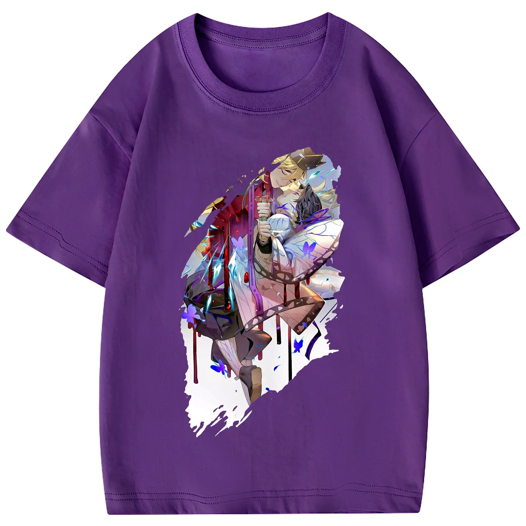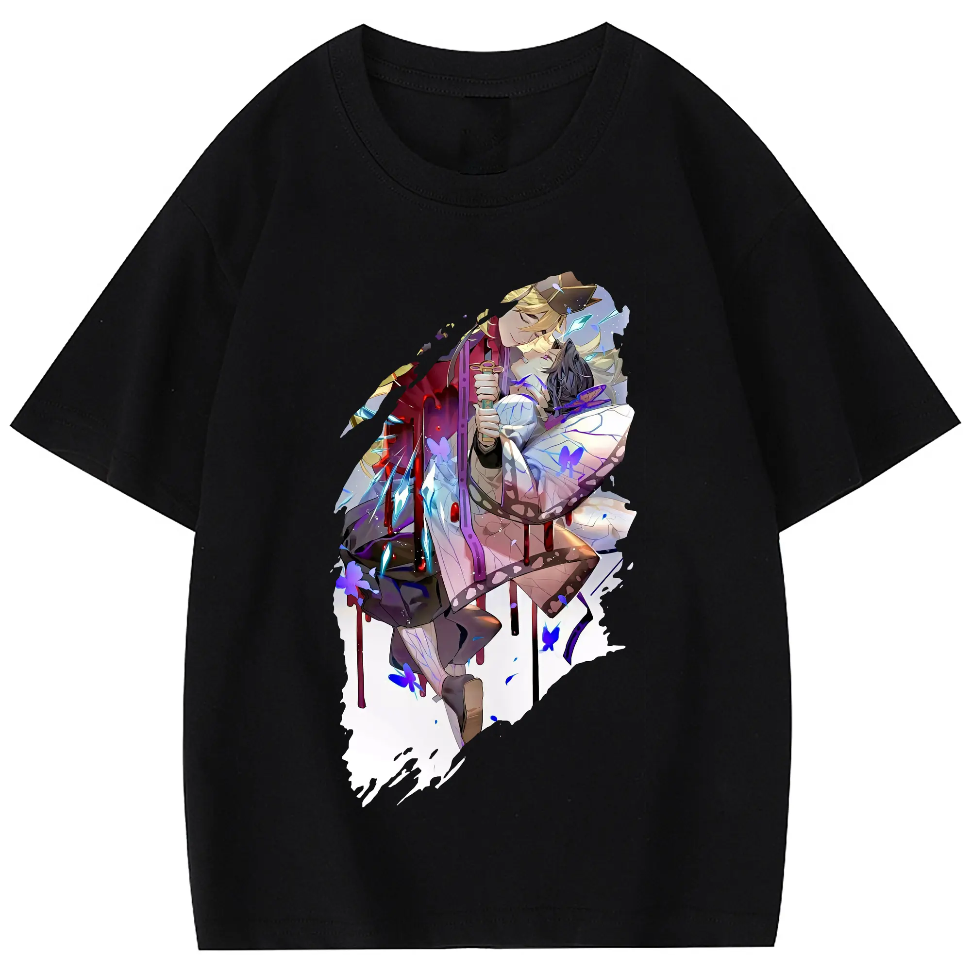 鬼滅の刃 グッズ,童磨 - 綿100% 半袖Tシャツ ・ バックプリント ・ 快適 通気性 ・ 日常使い 散歩 スポーツ用