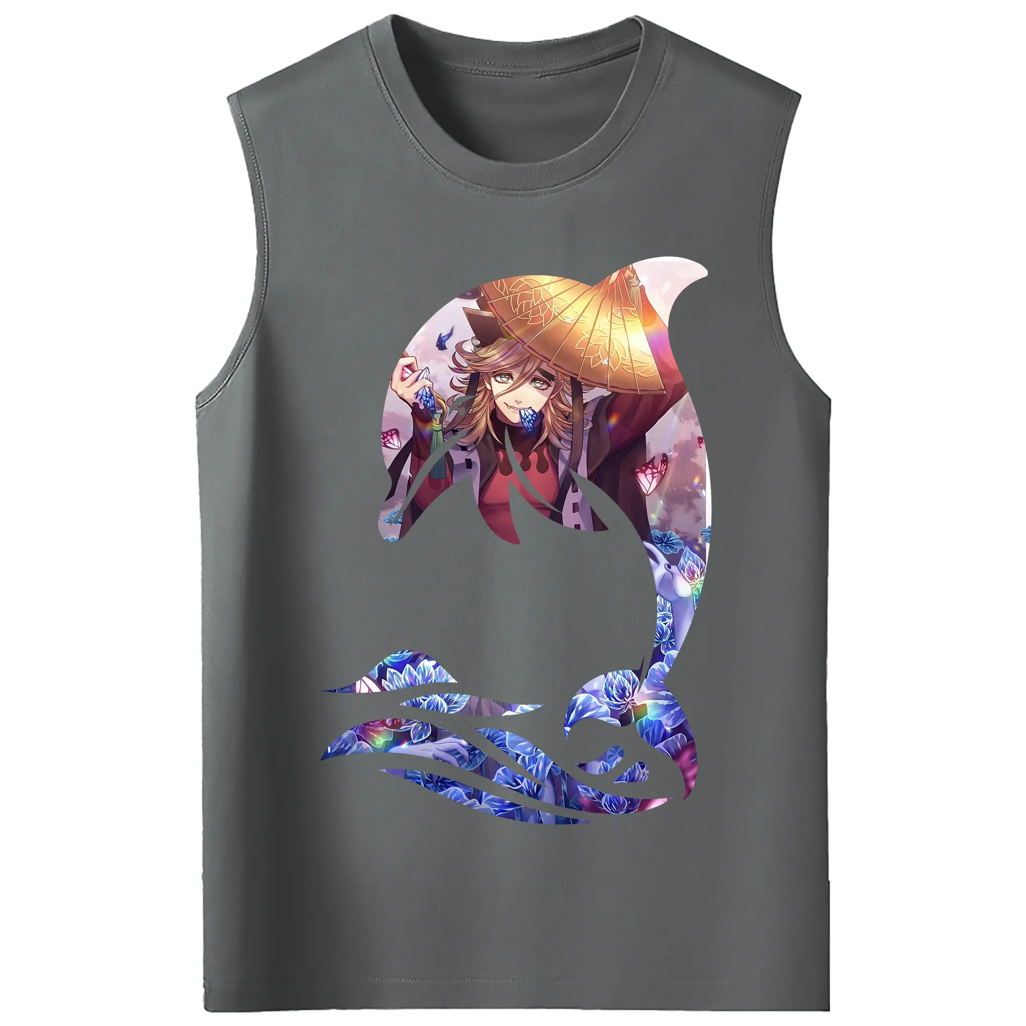 鬼滅の刃 グッズ,童磨 - コットン100% タンクトップ ・ フロントプリント ・ タイトフィット ・ 快適 通気性 ・ スポーツ カジュアル 散歩用