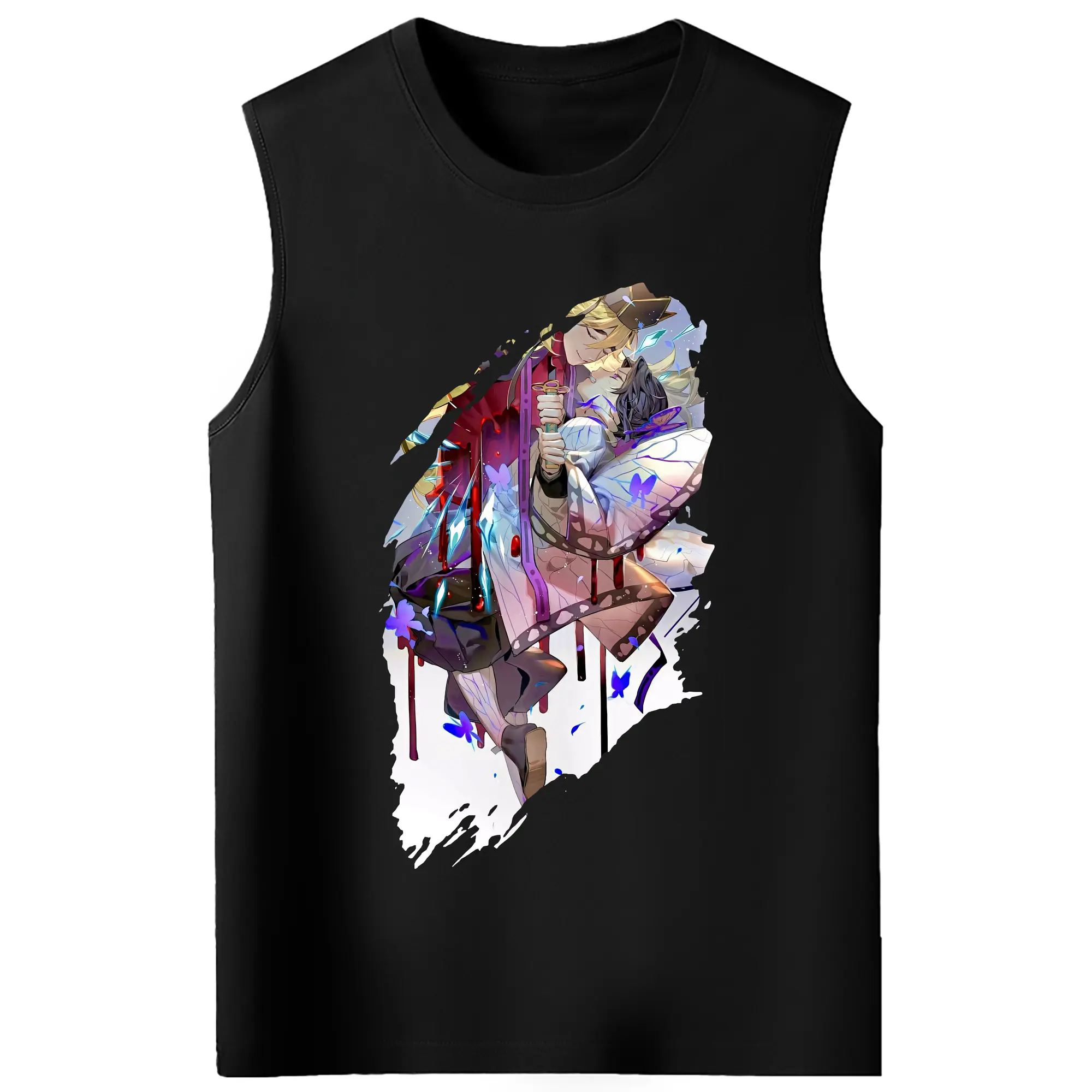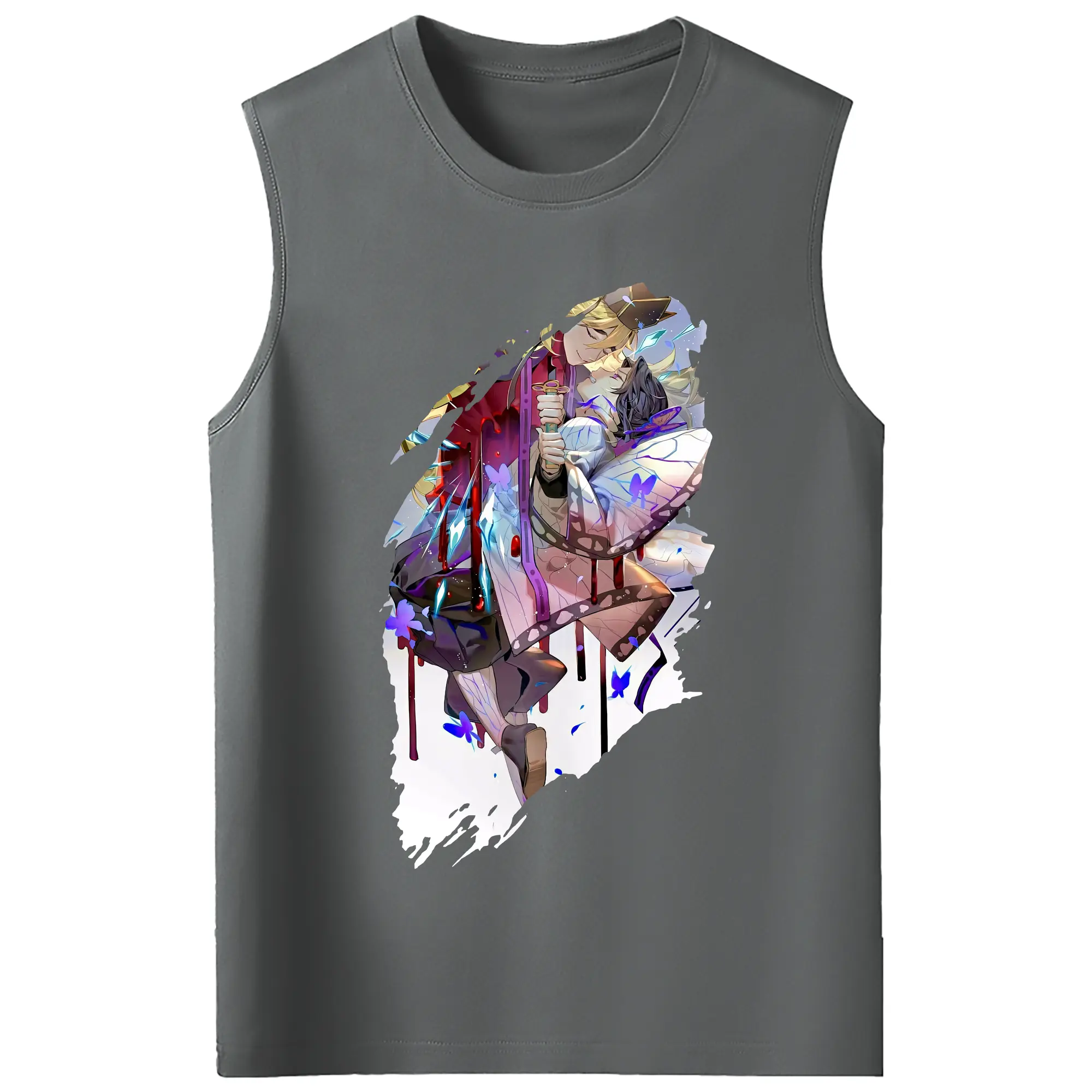 鬼滅の刃 グッズ,童磨 - コットン100% タンクトップ ・ フロントプリント ・ タイトフィット ・ 快適 通気性 ・ スポーツ カジュアル 散歩用