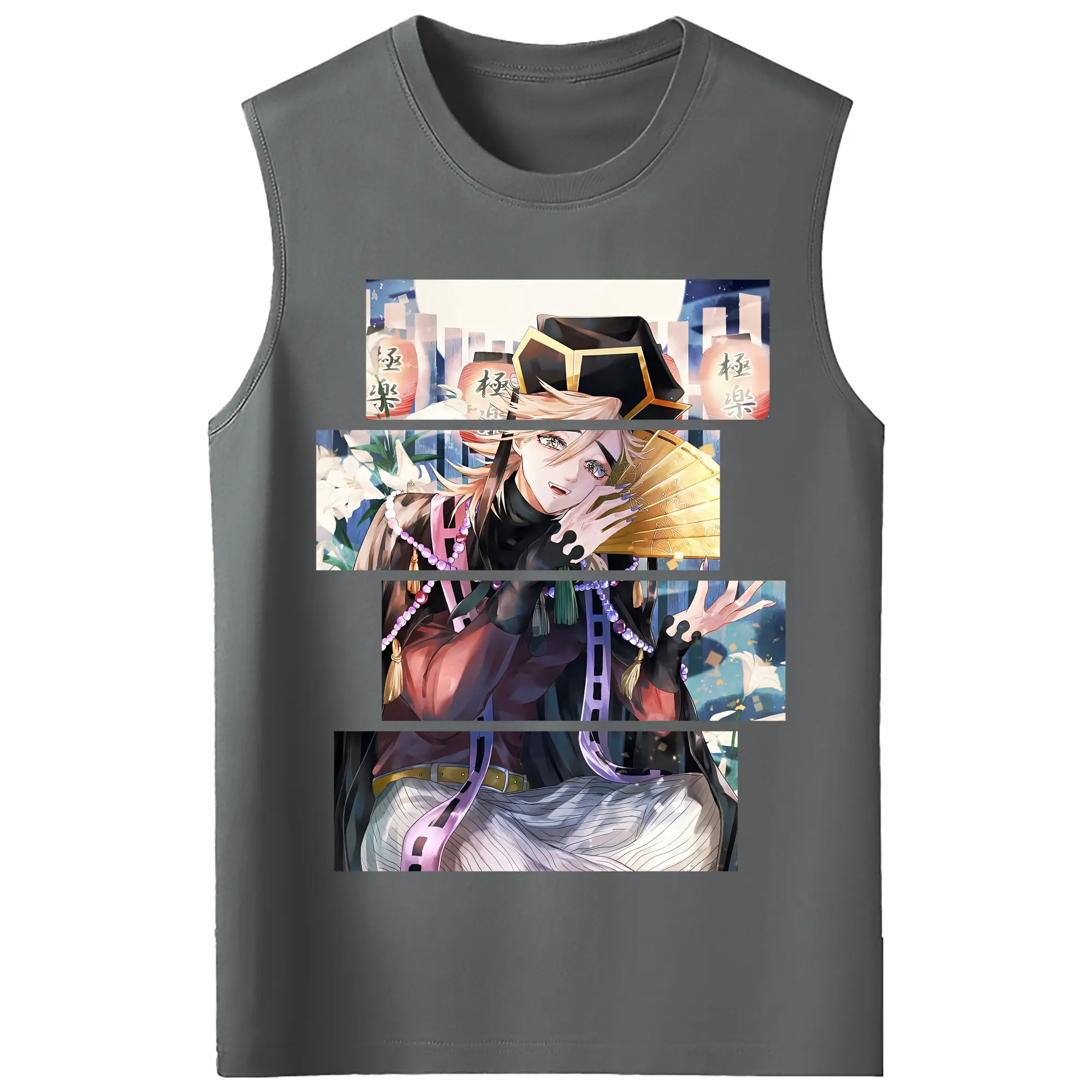 鬼滅の刃 グッズ,童磨 - コットン100% タンクトップ ・ フロントプリント ・ タイトフィット ・ 快適 通気性 ・ スポーツ カジュアル 散歩用