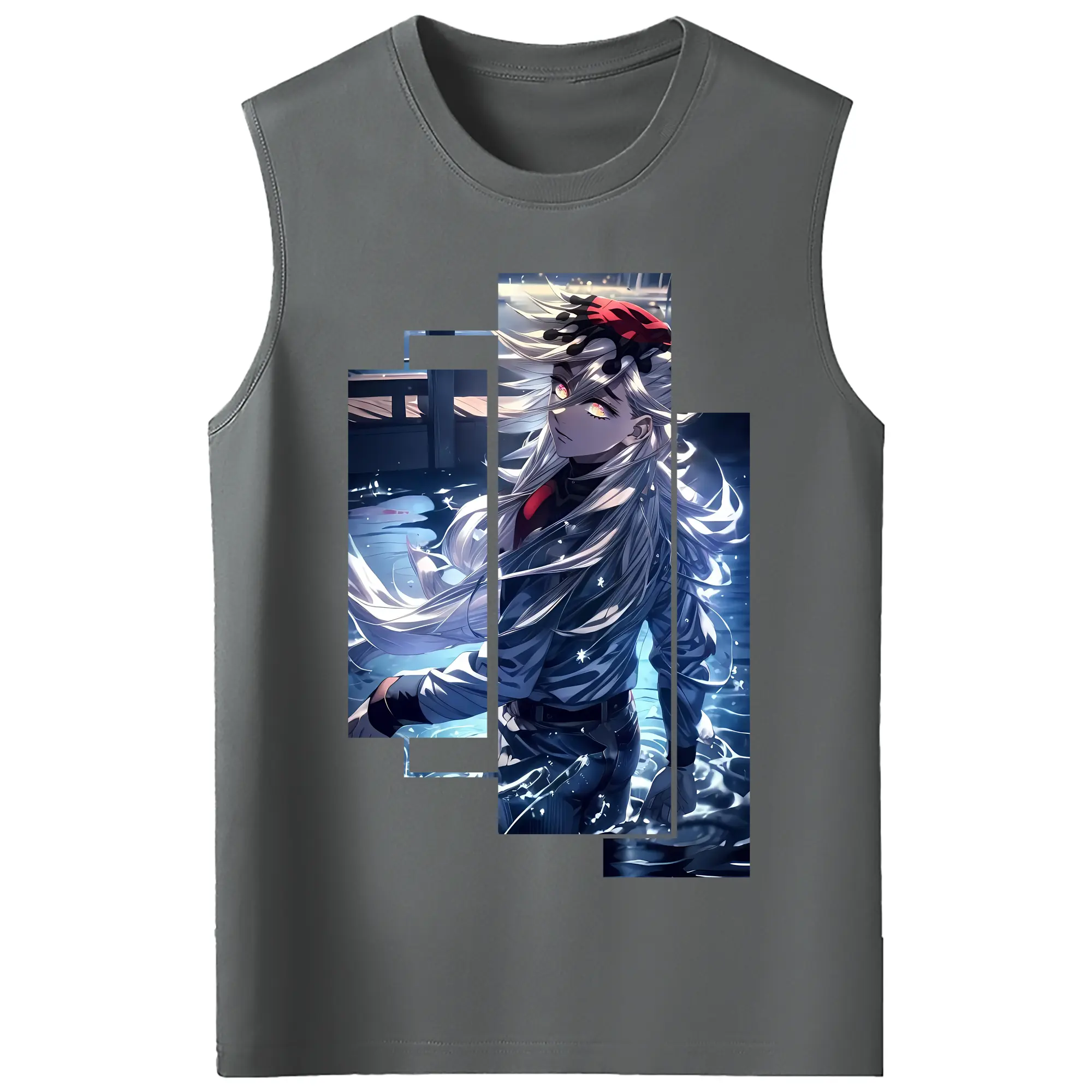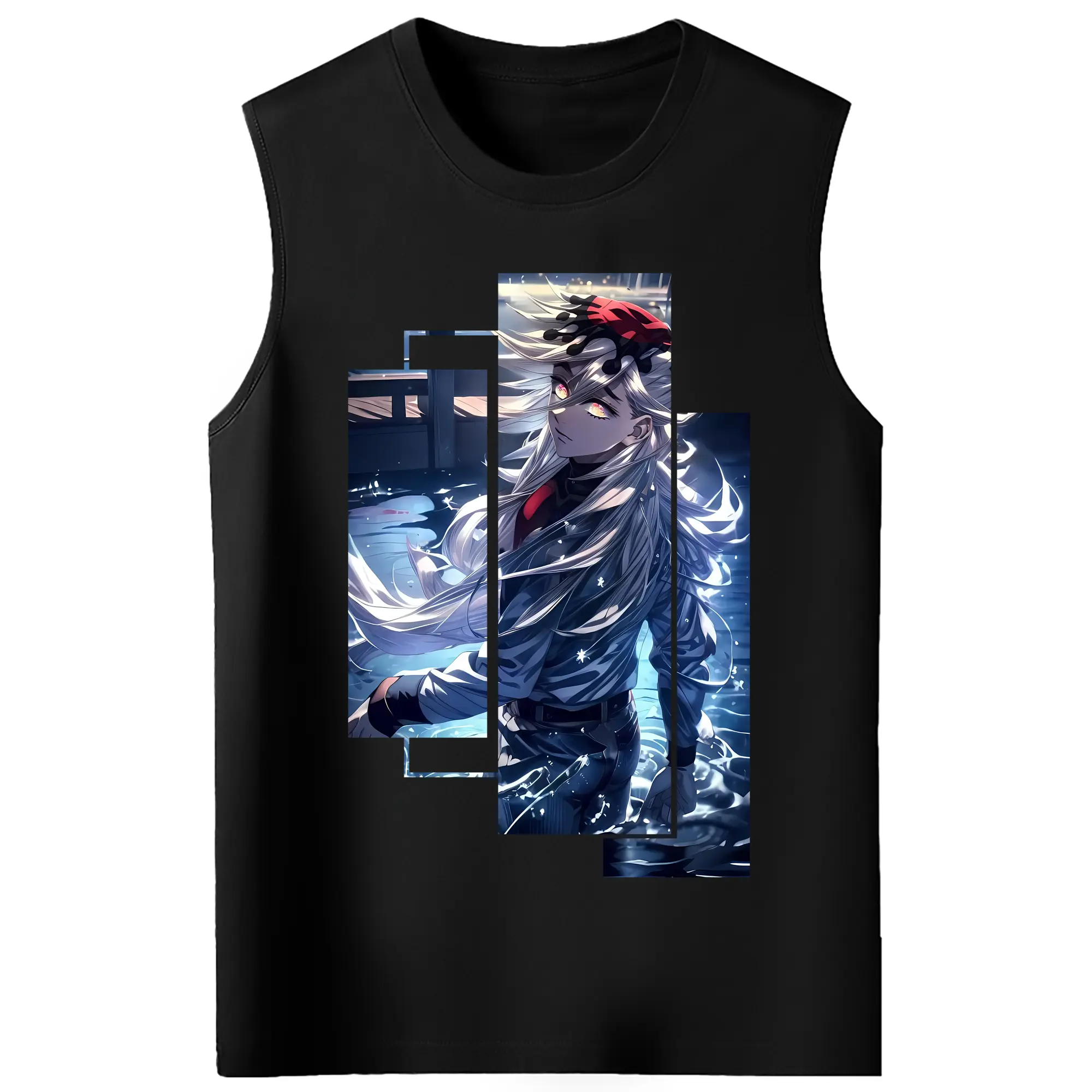 鬼滅の刃 グッズ,童磨 - コットン100% タンクトップ ・ フロントプリント ・ タイトフィット ・ 快適 通気性 ・ スポーツ カジュアル 散歩用