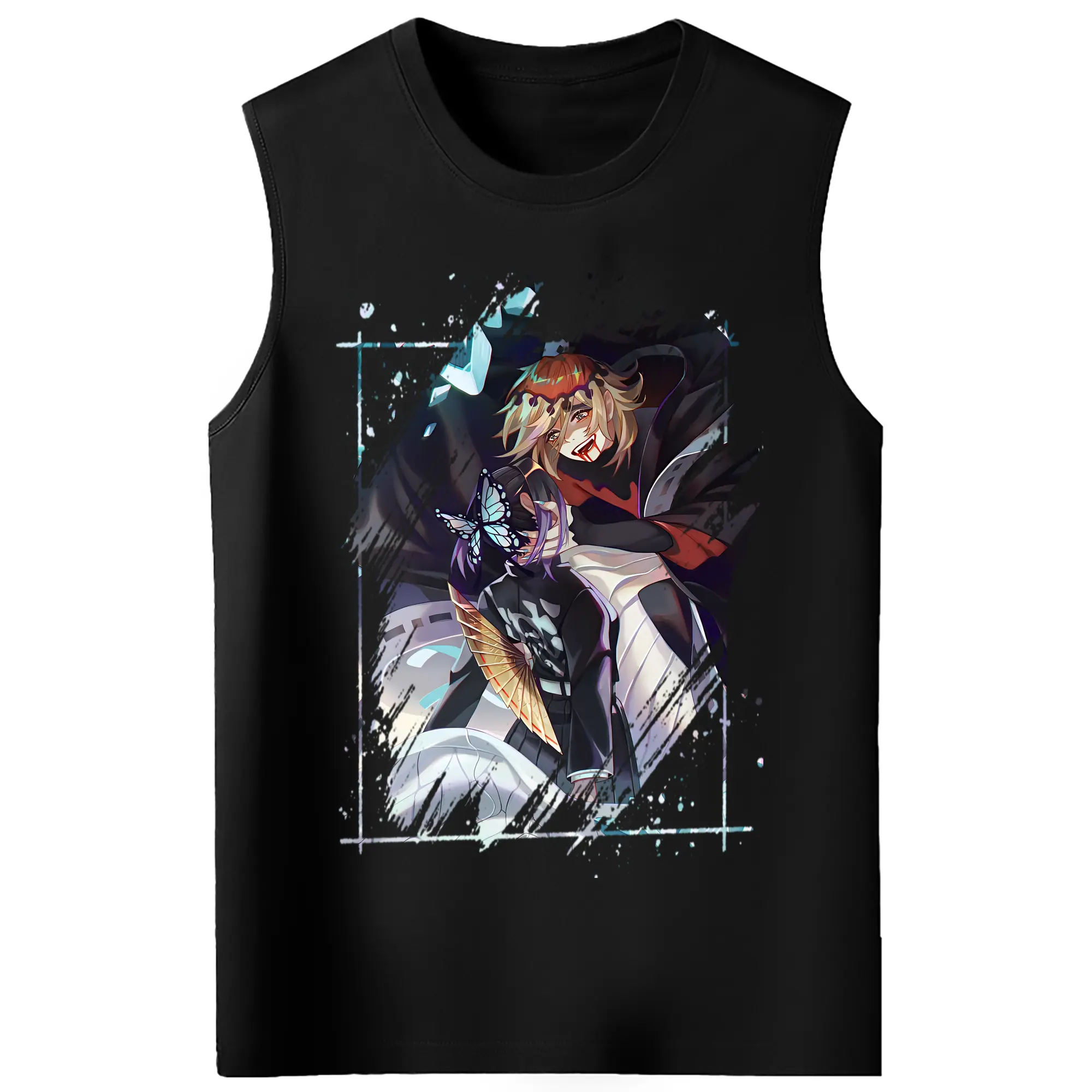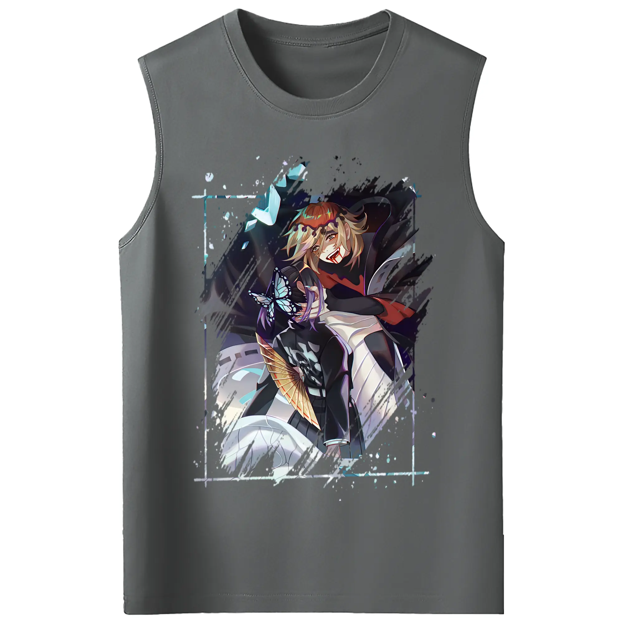 鬼滅の刃 グッズ,童磨 - コットン100% タンクトップ ・ フロントプリント ・ タイトフィット ・ 快適 通気性 ・ スポーツ カジュアル 散歩用