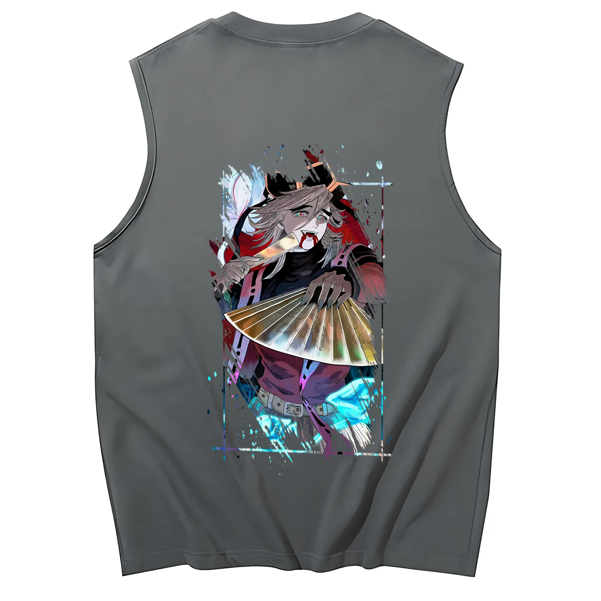 鬼滅の刃 グッズ,童磨 - コットン100% タンクトップ ・ 背面プリント ・ タイトシルエット ・ 快適 通気性 ・ スポーツ カジュアル 散歩用