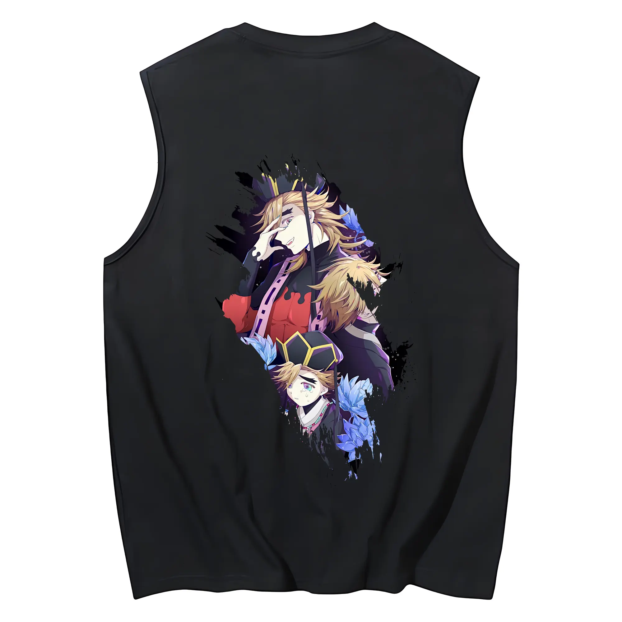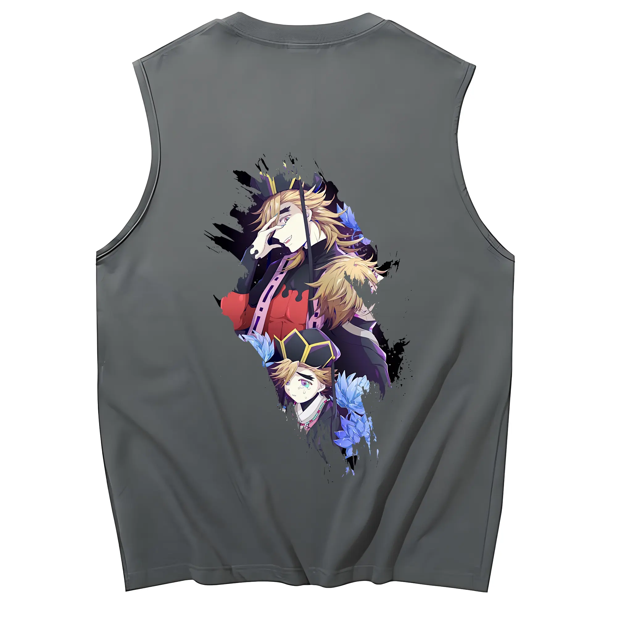 鬼滅の刃 グッズ,童磨 - コットン100% タンクトップ ・ 背面プリント ・ タイトシルエット ・ 快適 通気性 ・ スポーツ カジュアル 散歩用