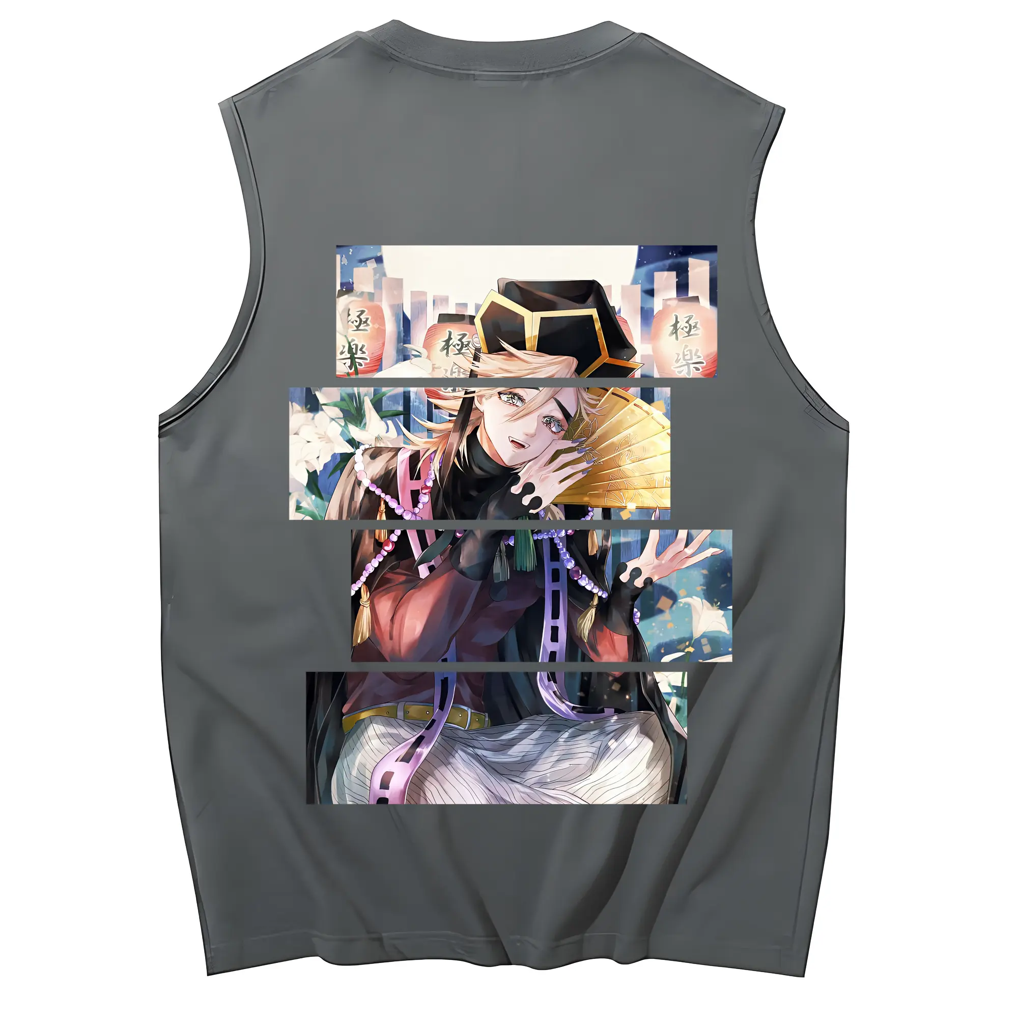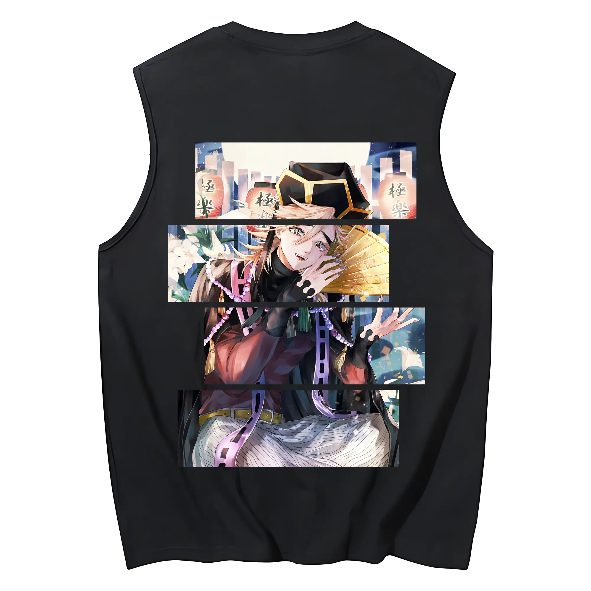 鬼滅の刃 グッズ,童磨 - コットン100% タンクトップ ・ 背面プリント ・ タイトシルエット ・ 快適 通気性 ・ スポーツ カジュアル 散歩用