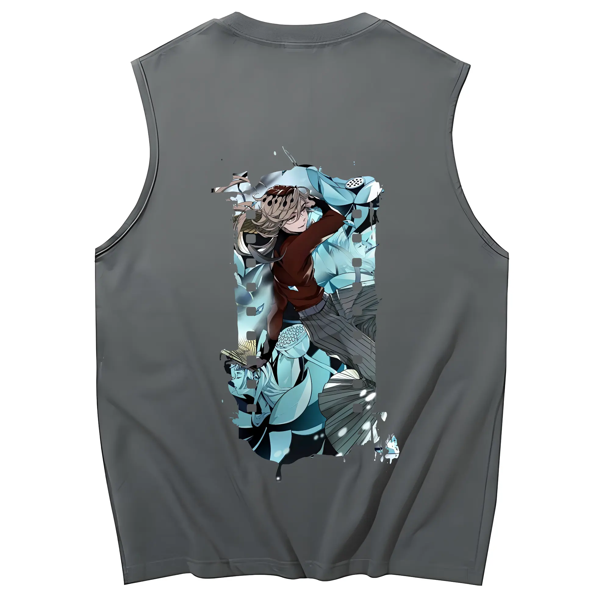 鬼滅の刃 グッズ,童磨 - コットン100% タンクトップ ・ 背面プリント ・ タイトシルエット ・ 快適 通気性 ・ スポーツ カジュアル 散歩用