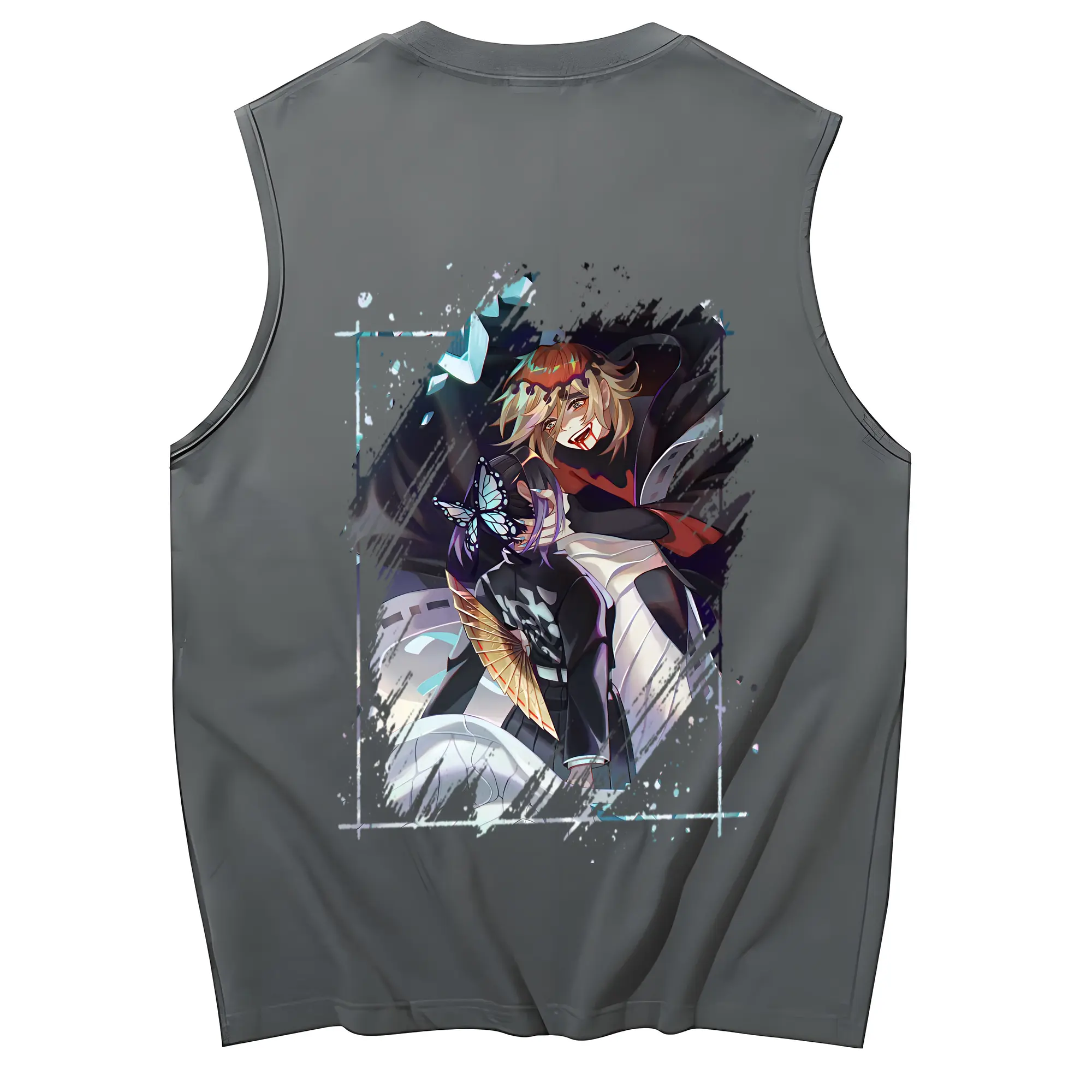 鬼滅の刃 グッズ,童磨 - コットン100% タンクトップ ・ 背面プリント ・ タイトシルエット ・ 快適 通気性 ・ スポーツ カジュアル 散歩用