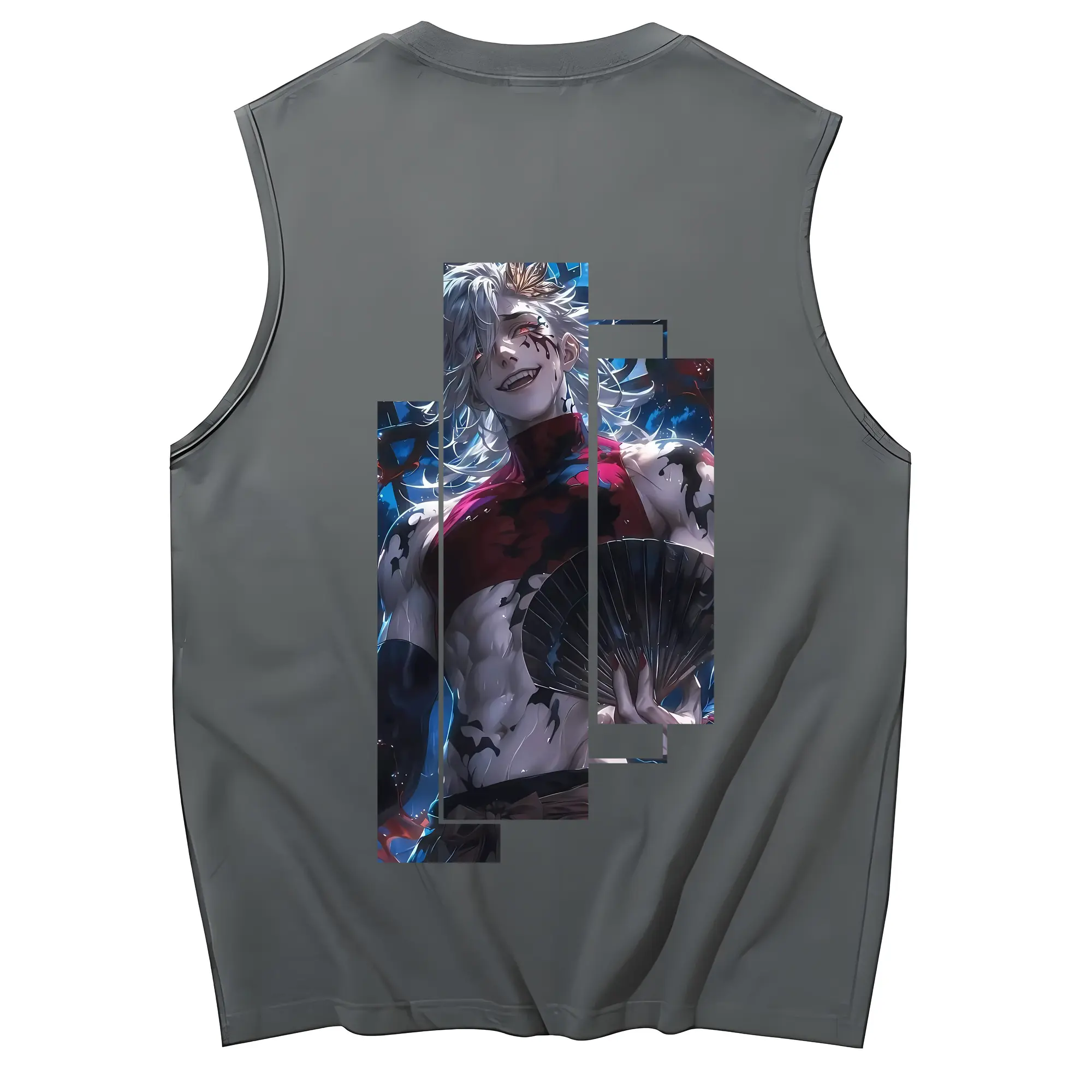 鬼滅の刃 グッズ,童磨 - コットン100% タンクトップ ・ 背面プリント ・ タイトシルエット ・ 快適 通気性 ・ スポーツ カジュアル 散歩用