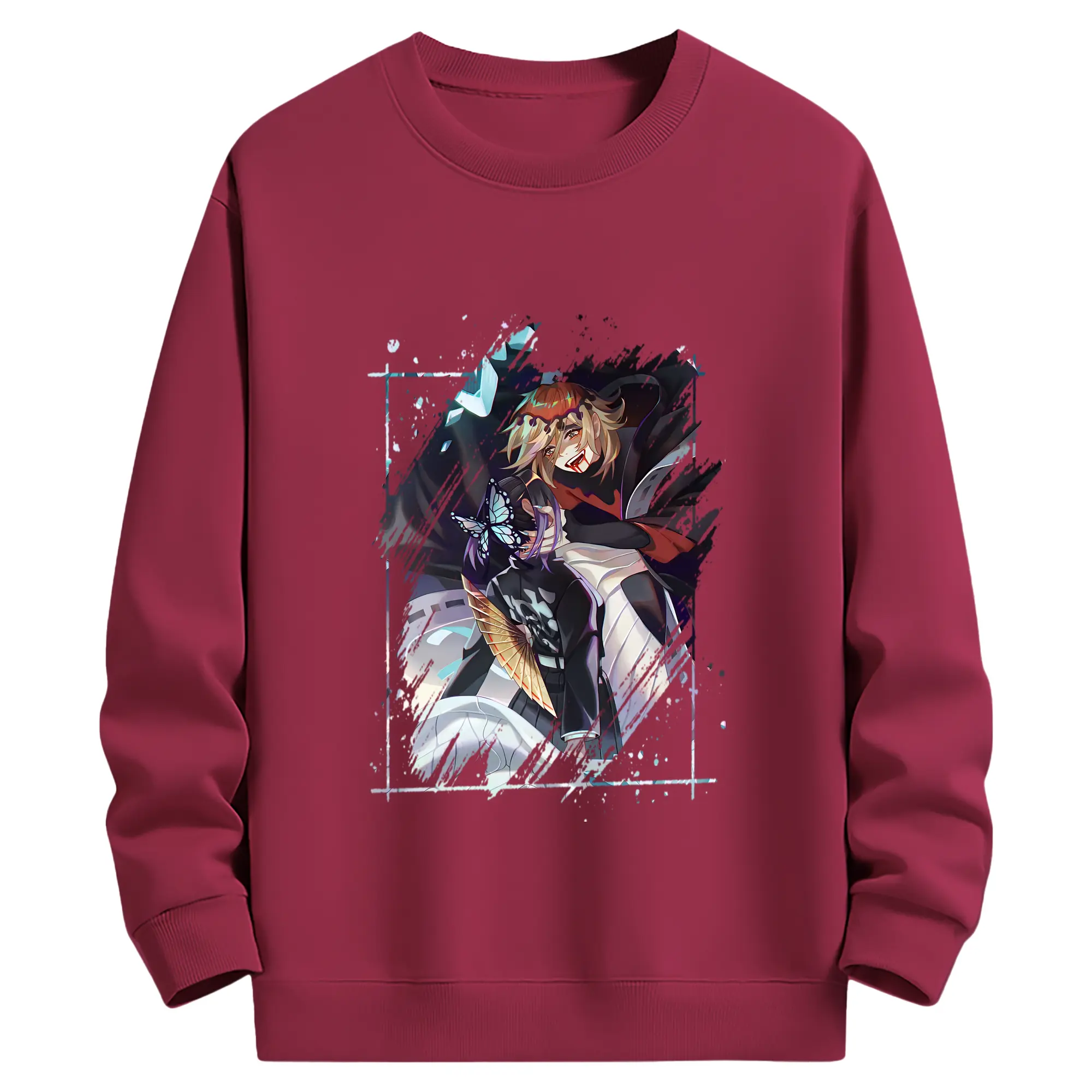 鬼滅の刃 グッズ,童磨 - 高品質 クルーネック スウェット ・ コットン59% ポリエステル41% ・ ユニセックス 長袖 トレーナー ・ カジュアル デイリー スポーツ 散歩用