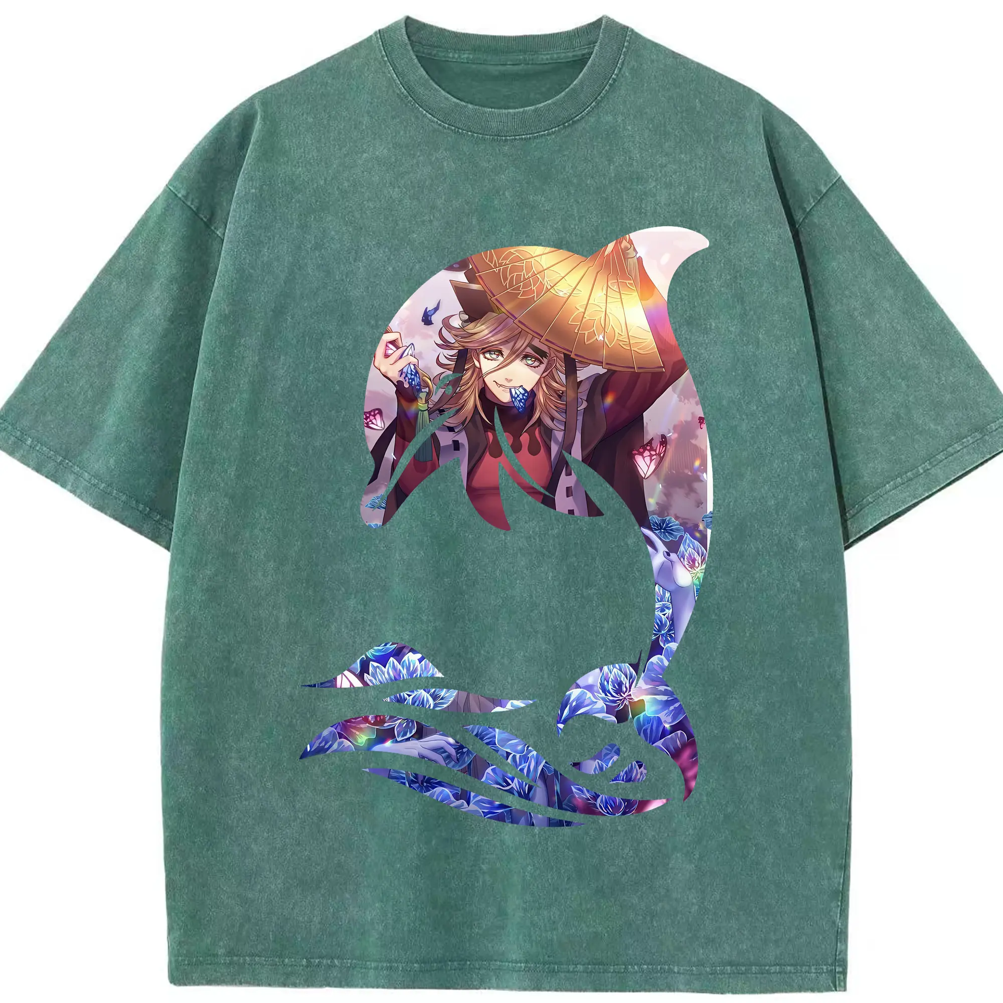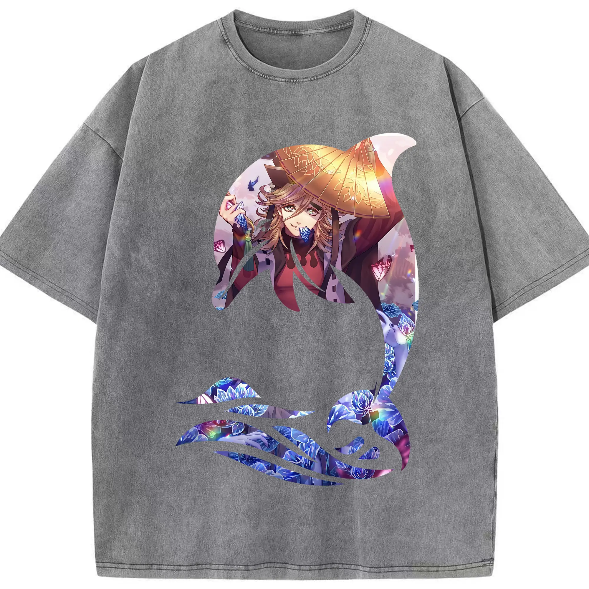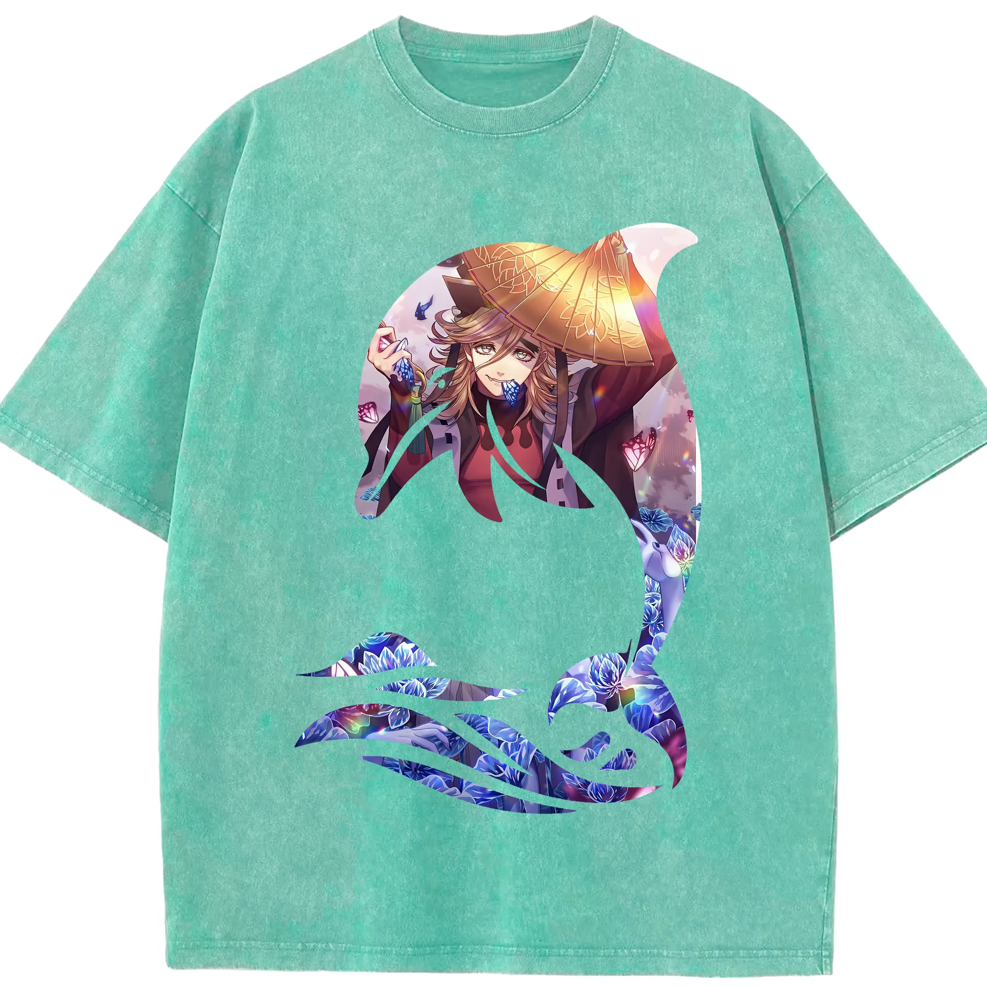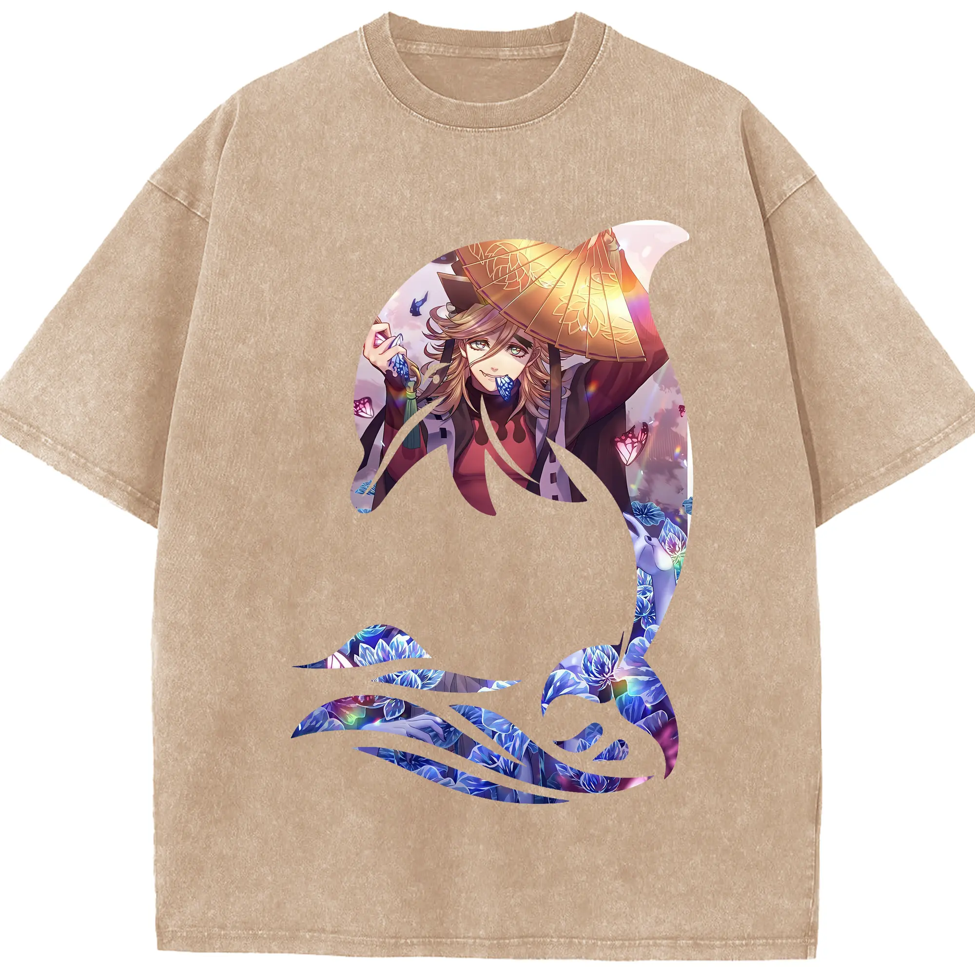 原 神 グッズ 神里綾華 - 綿100% ヴィンテージ風 半袖Tシャツ ・ フロントプリント ・ 柔らか肌触り ・ 通気性 快適 ・ スポーツ カジュアル 外出用