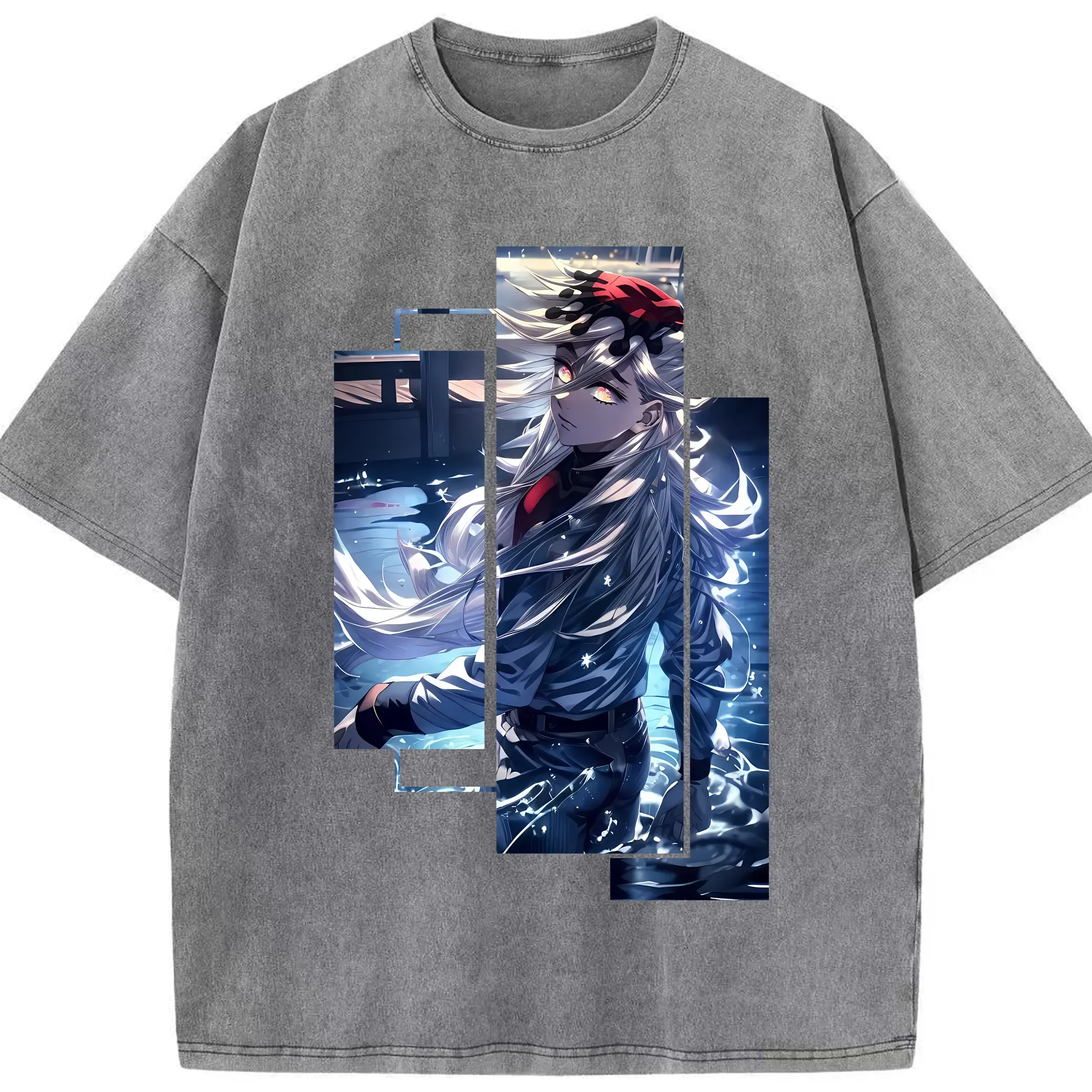 ハンター×ハンター グッズ イルミ=ゾルディック - 綿100% ヴィンテージ風 半袖Tシャツ ・ フロントプリント ・ 柔らか肌触り ・ 通気性 快適 ・ スポーツ カジュアル 外出用
