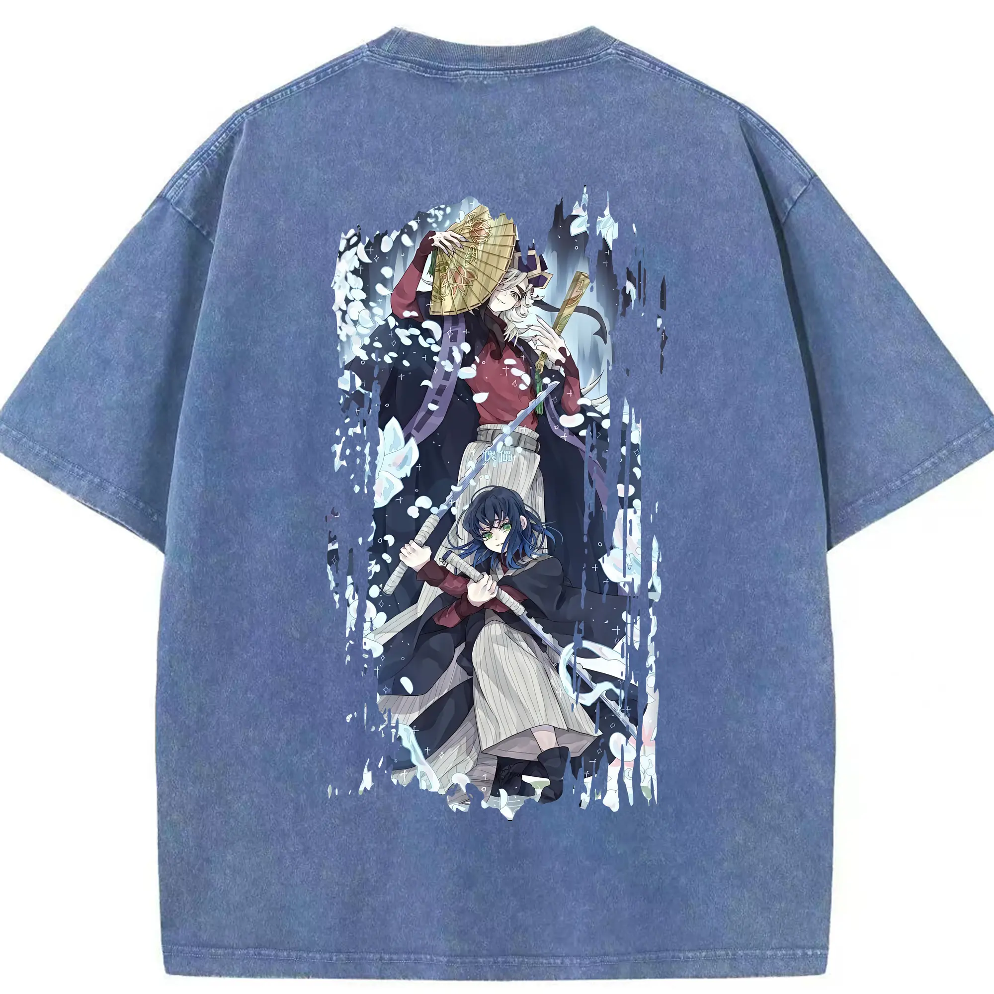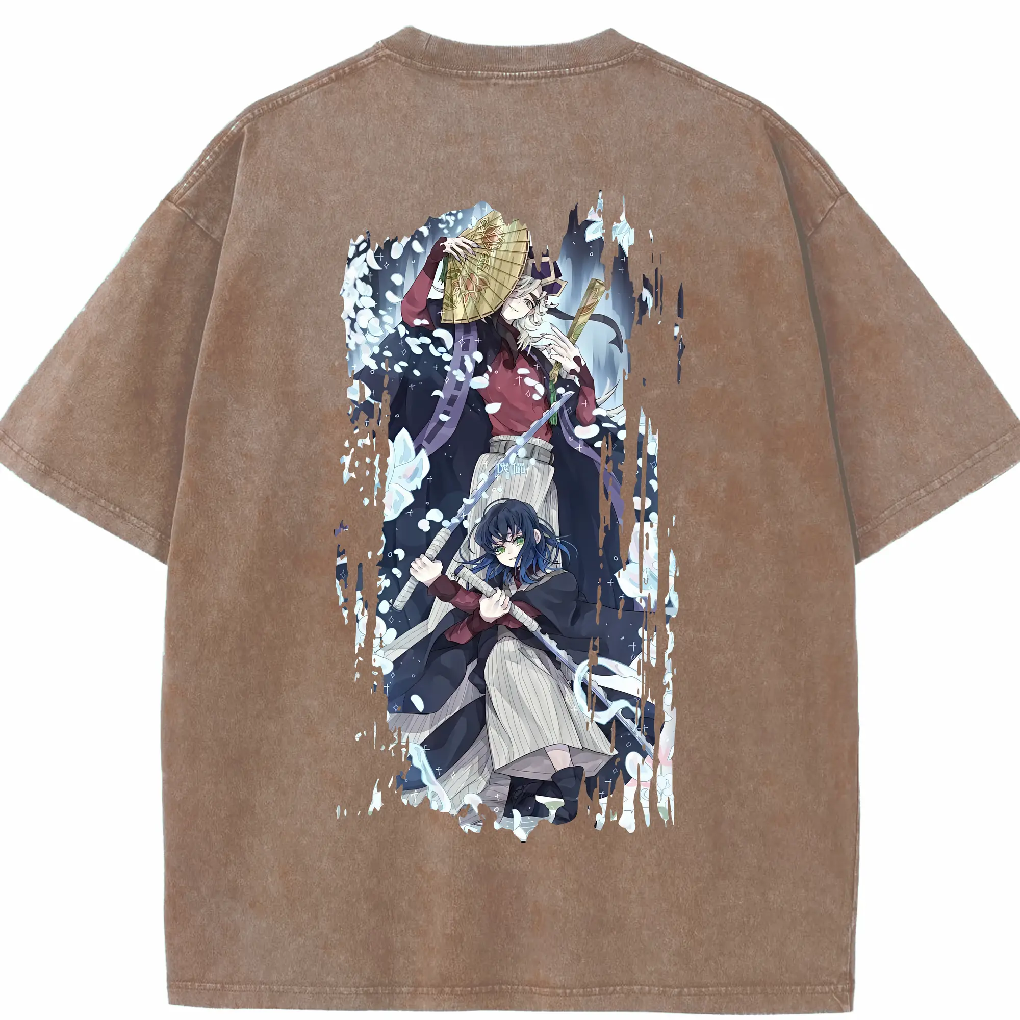 鬼滅の刃 グッズ,竈門 炭治郎 - 綿100% ヴィンテージ風 半袖Tシャツ ・ 背面プリント ・ 柔らか肌触り ・ 通気性 快適 ・ スポーツ カジュアル 外出用