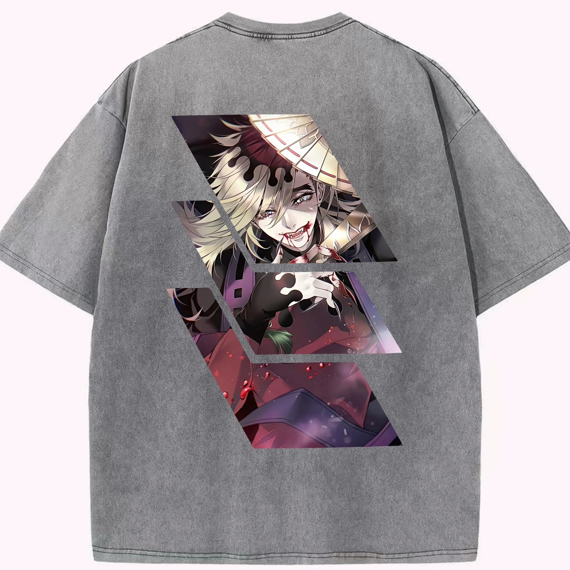 鬼滅の刃 グッズ,童磨 - 綿100% 半袖Tシャツ ・ バックプリント ・ 快適 通気性 ・ 日常使い 散歩 スポーツ用