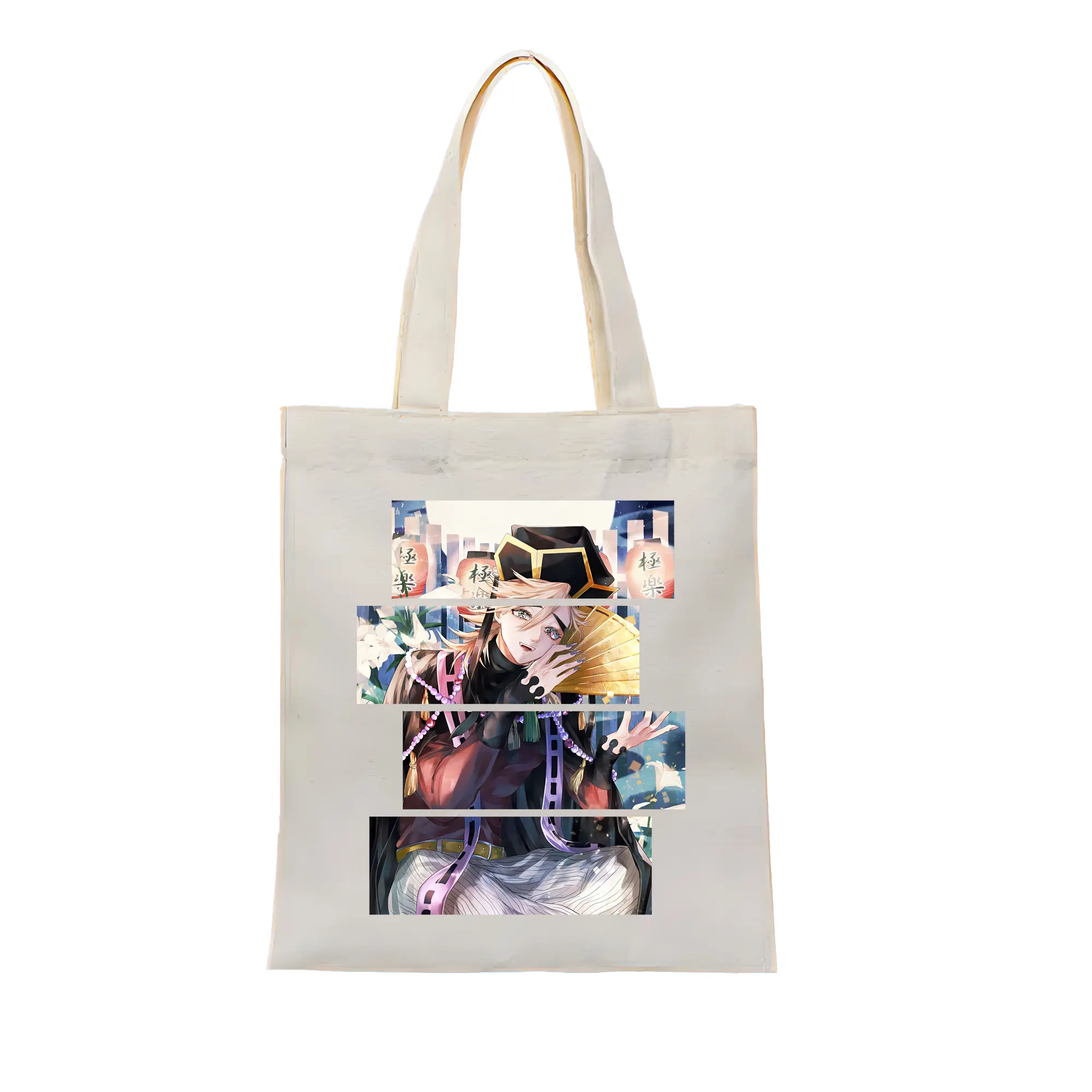 鬼滅の刃 グッズ,童磨 - 縦型キャンバス手提げバッグ(トートバッグ) ・ キャンバス素材 ・ ショッピング用 ・ 軽量 丈夫 お手入れ簡単