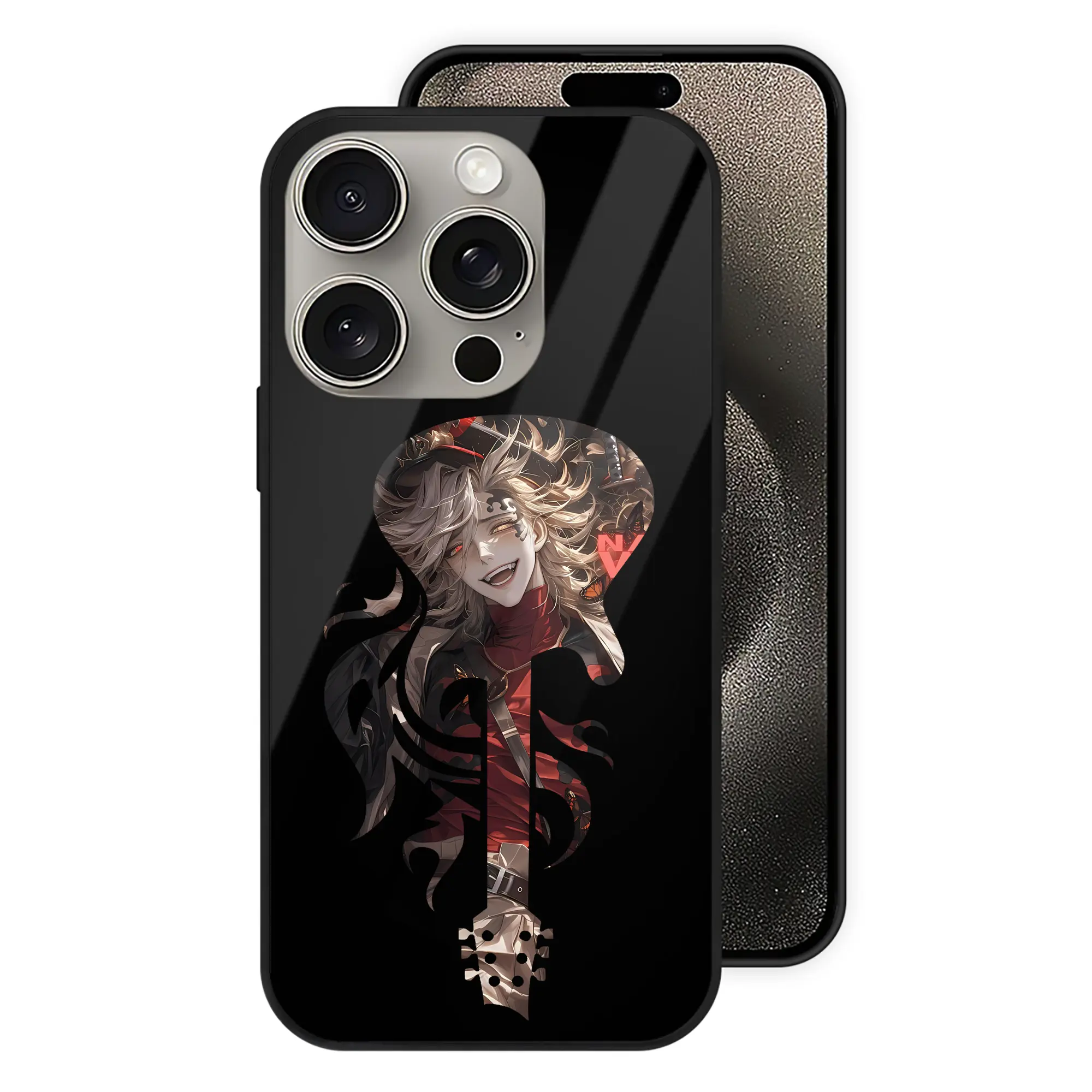 鬼滅の刃 グッズ,童磨 - IPhone15Pro対応 ・ スマホケース ・ 背面ガラス ・ TPU+強化ガラス ・ 耐衝撃 ・ 黄変防止 ・ ワイヤレス充電対応 ・ 3D立体ボタン