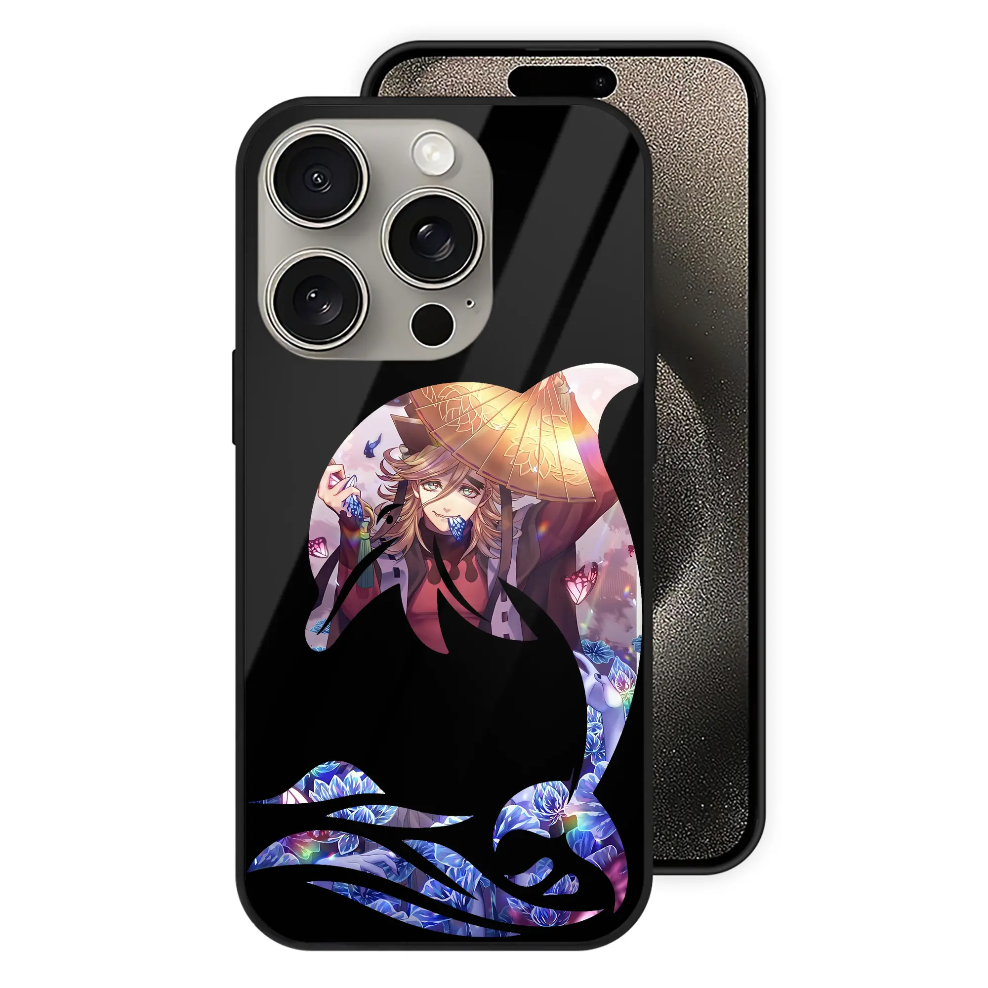 鬼滅の刃 グッズ,童磨 - IPhone15Pro対応 ・ スマホケース ・ 背面ガラス ・ TPU+強化ガラス ・ 耐衝撃 ・ 黄変防止 ・ ワイヤレス充電対応 ・ 3D立体ボタン