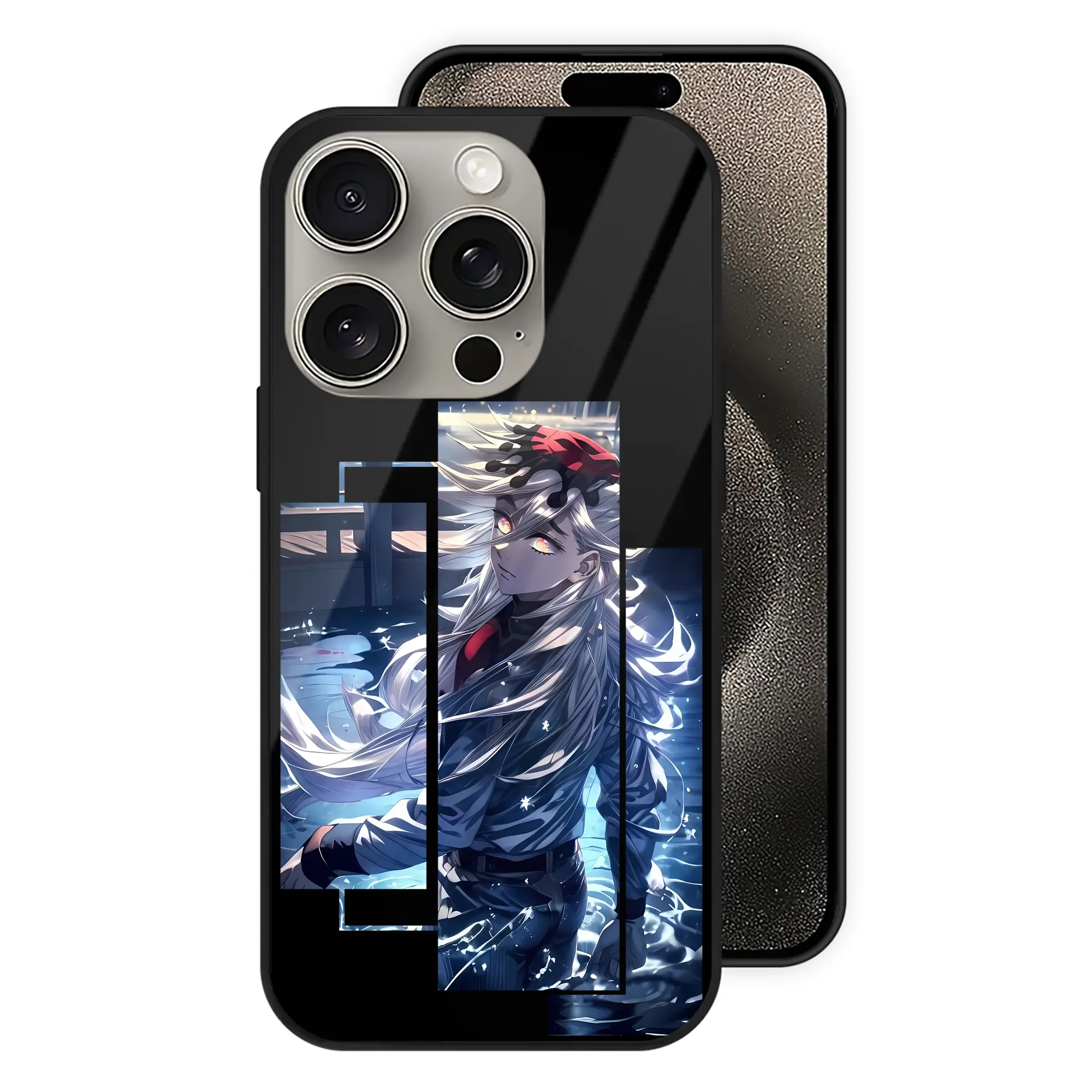 鬼滅の刃 グッズ,童磨 - IPhone15Pro対応 ・ スマホケース ・ 背面ガラス ・ TPU+強化ガラス ・ 耐衝撃 ・ 黄変防止 ・ ワイヤレス充電対応 ・ 3D立体ボタン