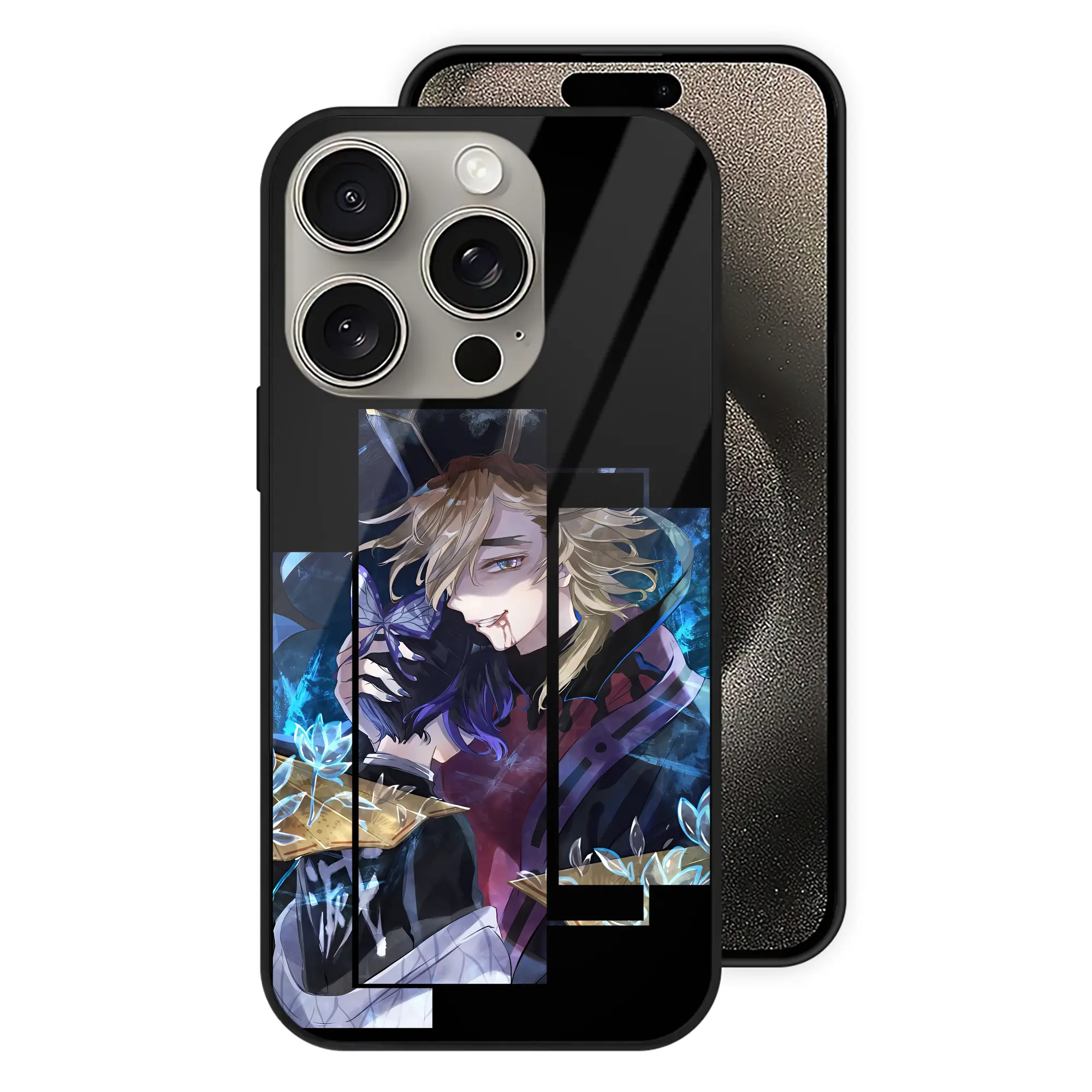 鬼滅の刃 グッズ,童磨 - IPhone15Pro対応 ・ スマホケース ・ 背面ガラス ・ TPU+強化ガラス ・ 耐衝撃 ・ 黄変防止 ・ ワイヤレス充電対応 ・ 3D立体ボタン