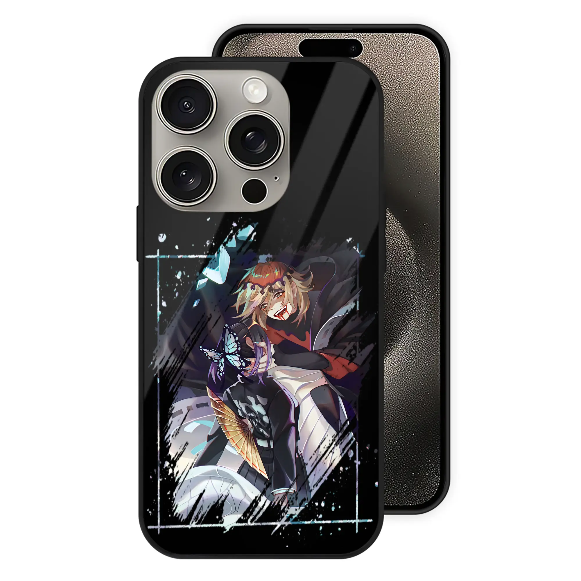 鬼滅の刃 グッズ,童磨 - IPhone15Pro対応 ・ スマホケース ・ 背面ガラス ・ TPU+強化ガラス ・ 耐衝撃 ・ 黄変防止 ・ ワイヤレス充電対応 ・ 3D立体ボタン